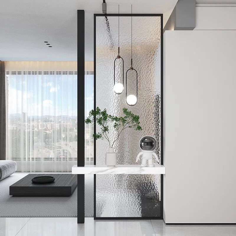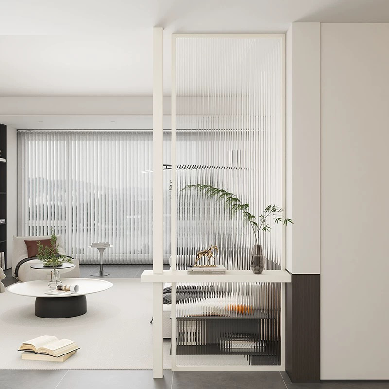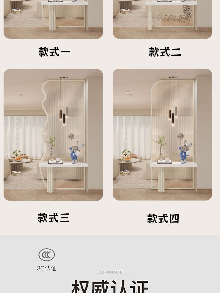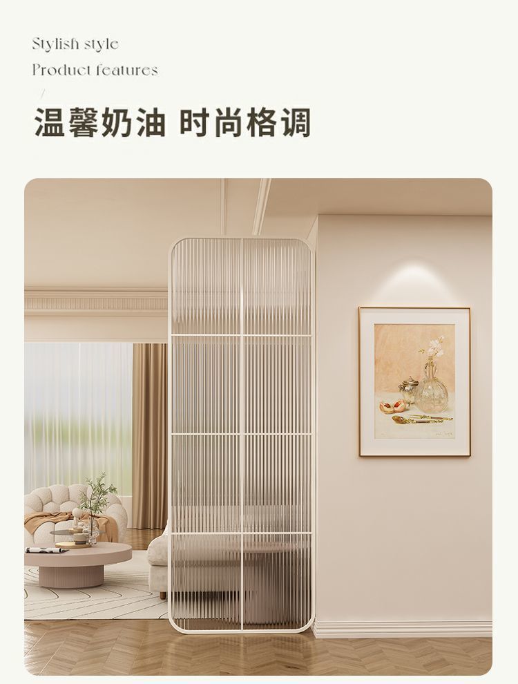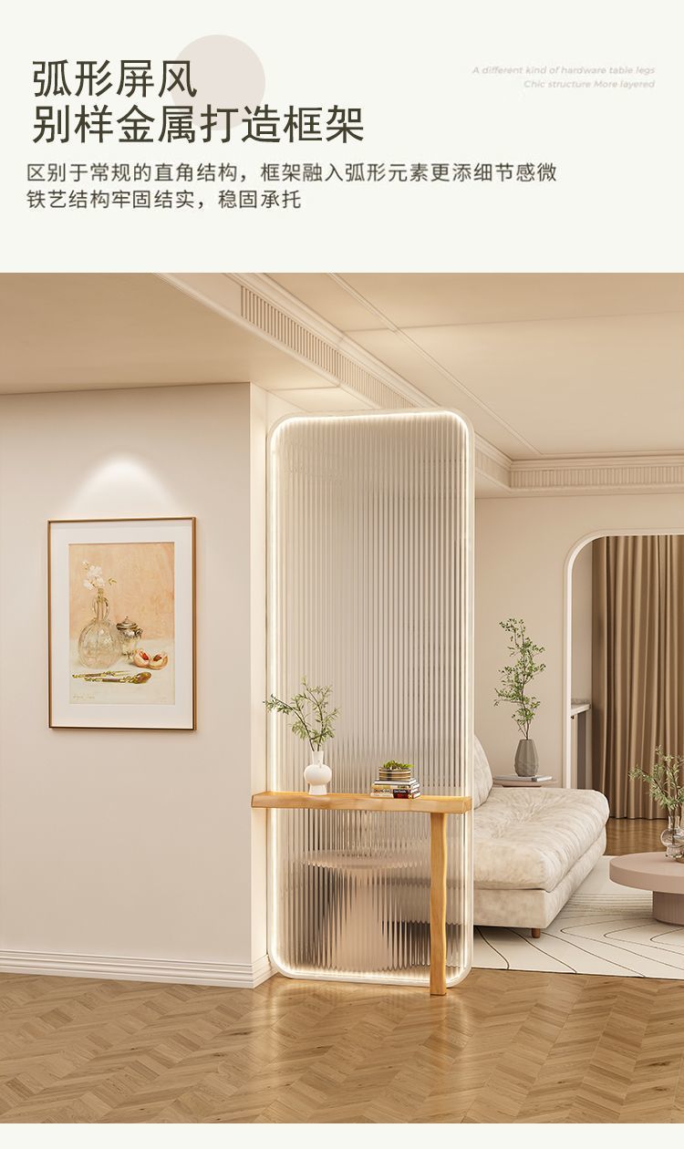 창의적인 크림 스타일의 물결 모양의 스크린 파티션, 현관에 직면한 거실, 현관 보관함을 가리키는 세면대스토어 가기