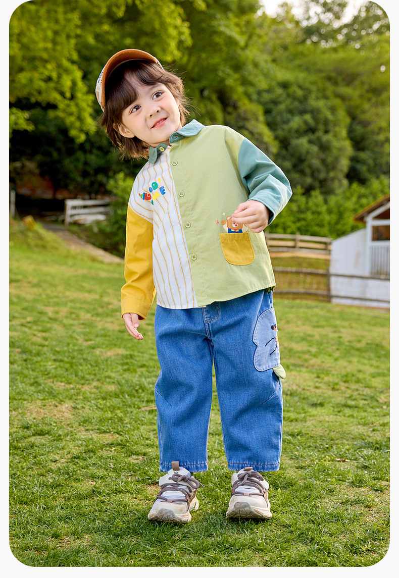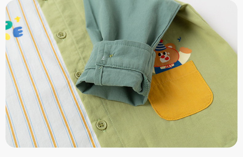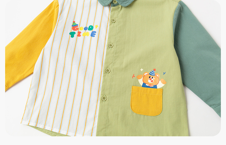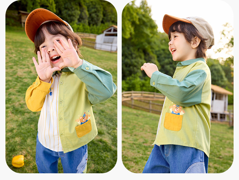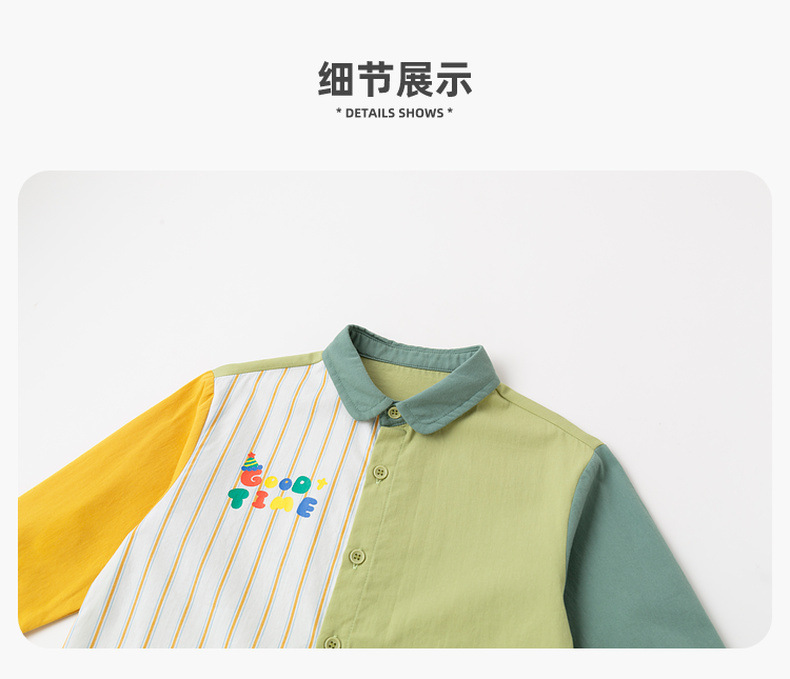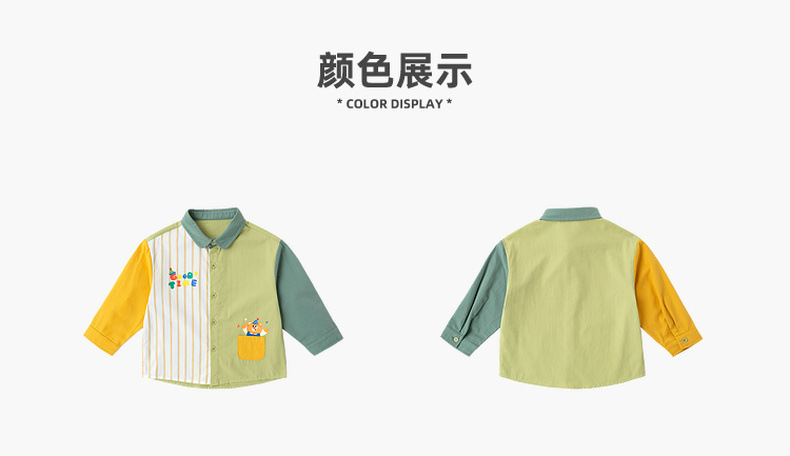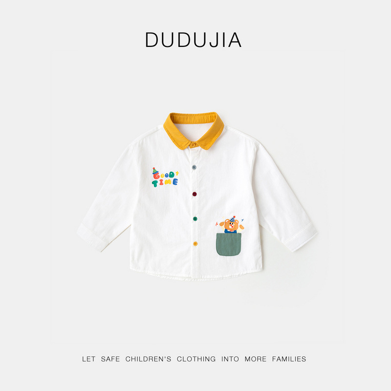 Dudu 아동 셔츠 봄, 가을 소년 컬러 블록 셔츠 아기 만화 긴팔 탑 소녀 순수 면화 의류 유행스토어 가기