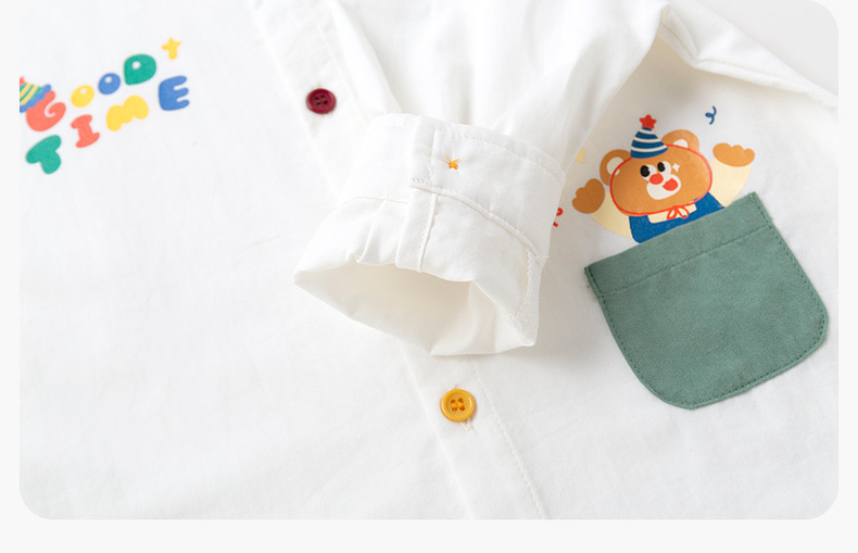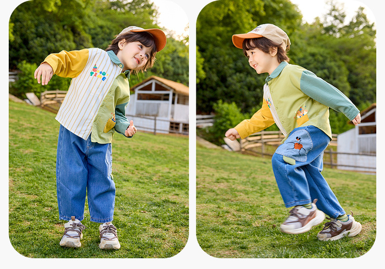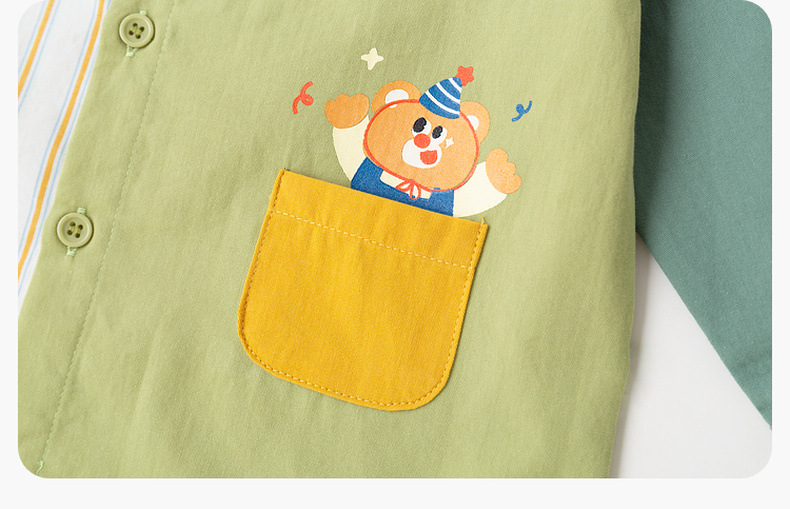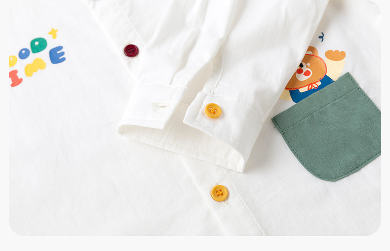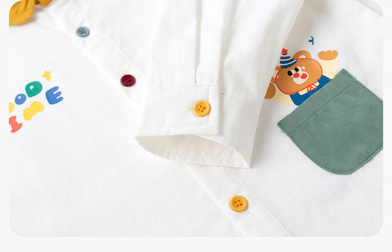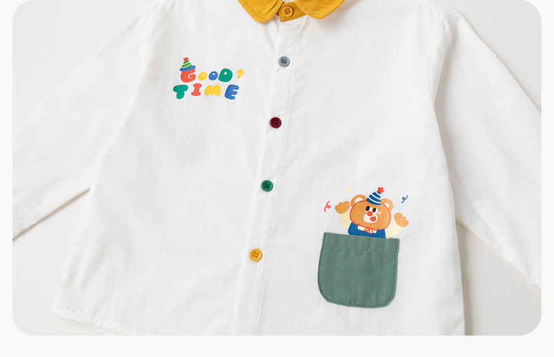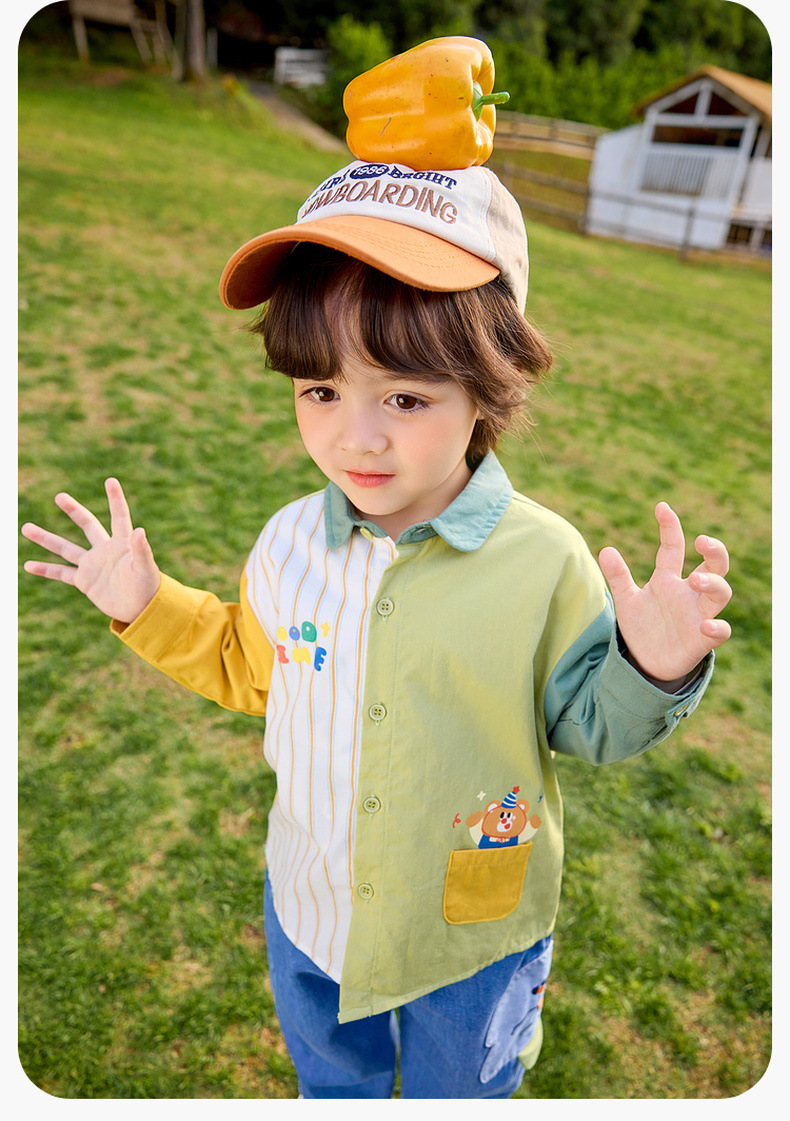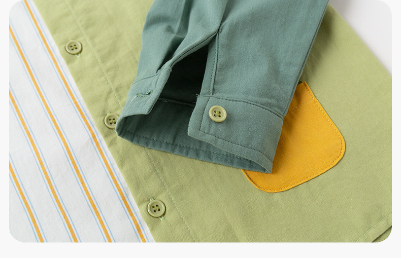 Dudu 아동 셔츠 봄, 가을 소년 컬러 블록 셔츠 아기 만화 긴팔 탑 소녀 순수 면화 의류 유행스토어 가기