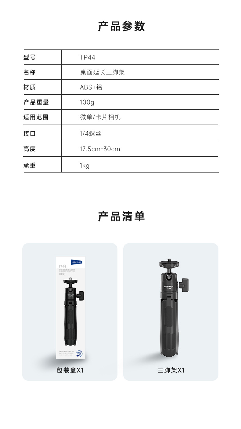 • [표준 구성 - 검정색] TP44 연장 로드 삼각대