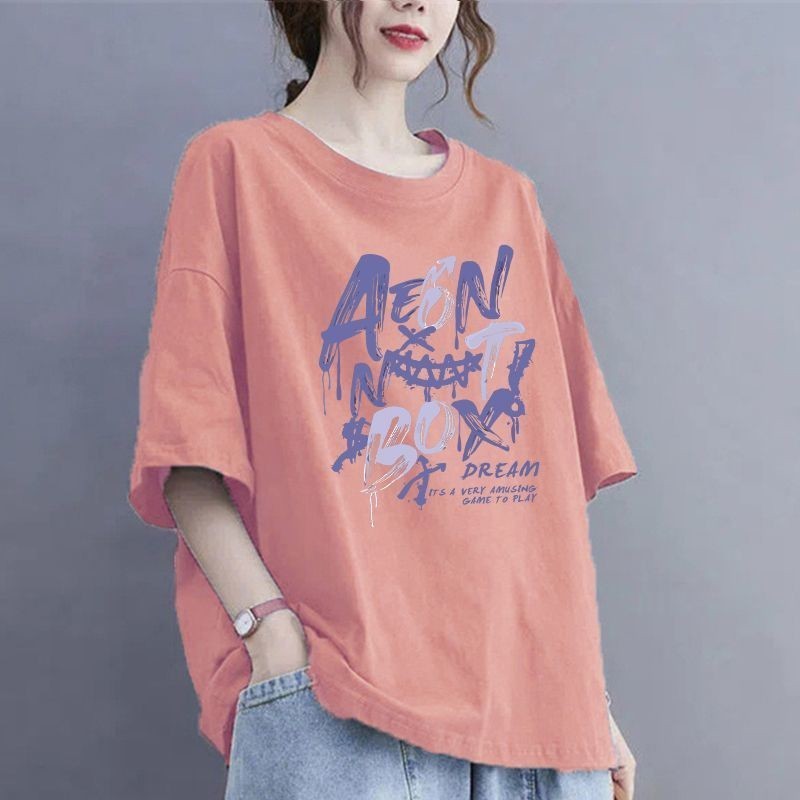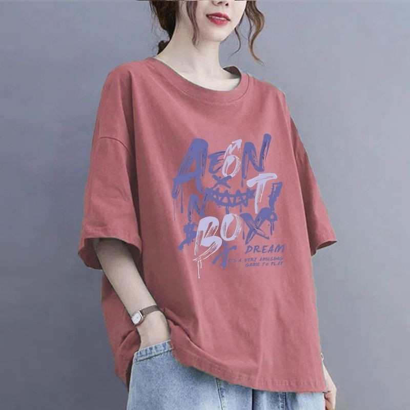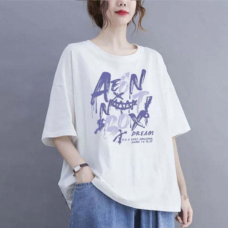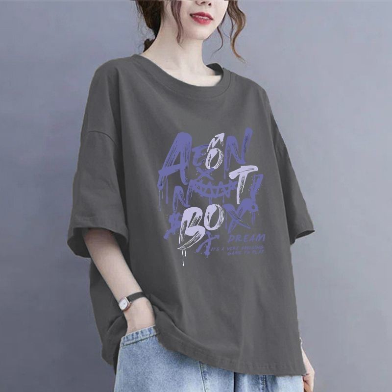 여름 100kg 플러스 사이즈 순면 티셔츠, 반팔, 루즈한 배 커버 티셔츠, 슬리밍 및 살 커버, 여성용 라운드 넥 탑스토어 가기