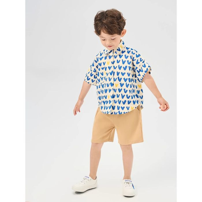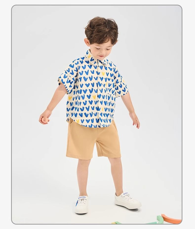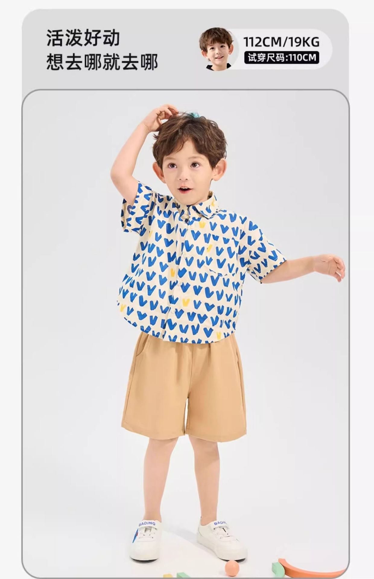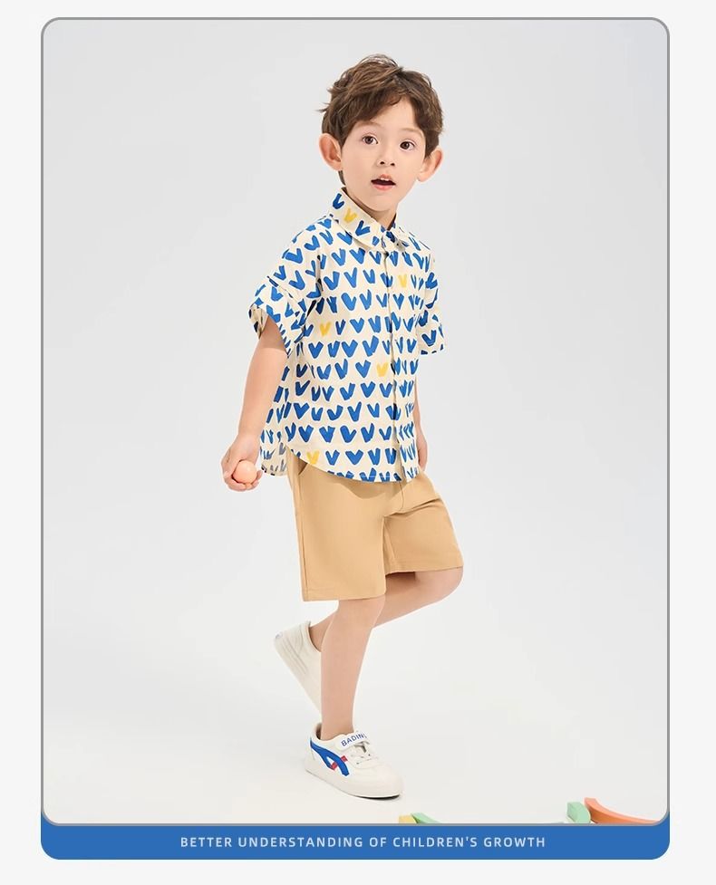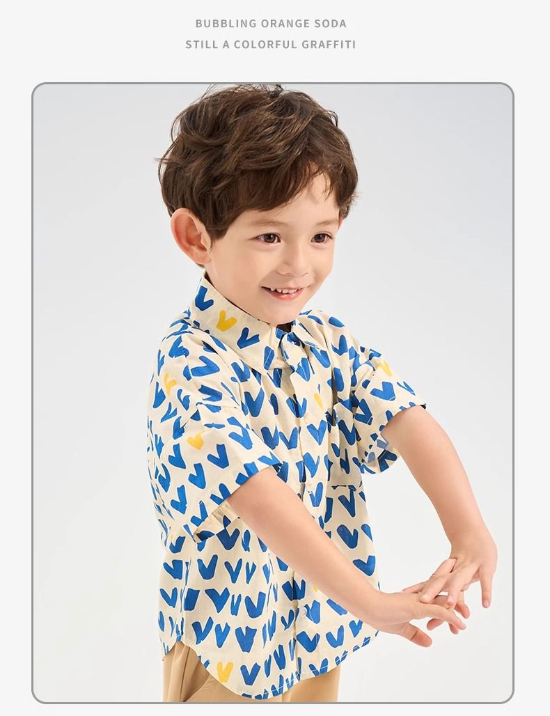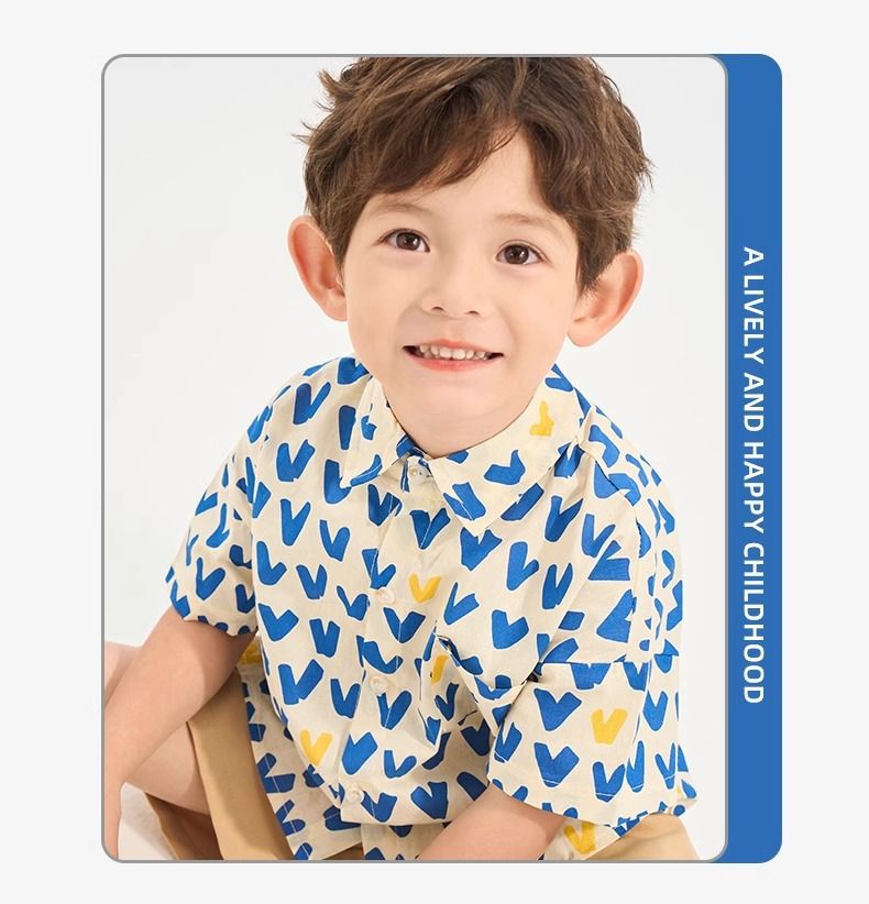 2025 새로운 여름 어린이 사랑 반팔 셔츠 한국 캐주얼 어린이 셔츠 세련되고 귀여운 탑 트렌드스토어 가기