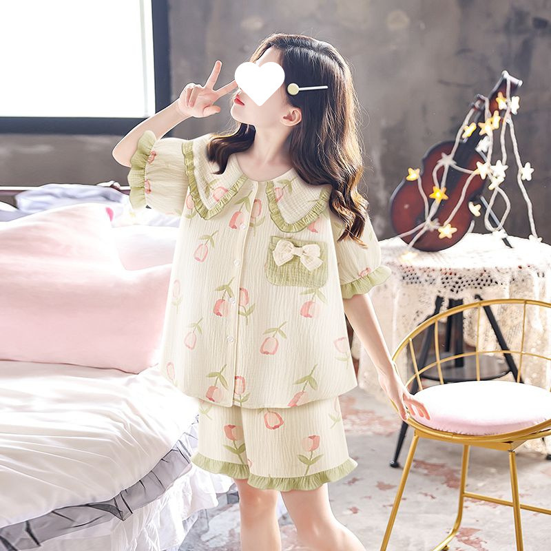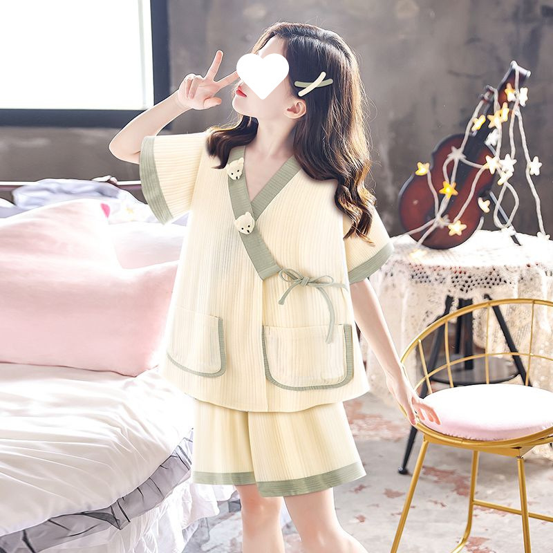 소녀 기모노 공주 스타일 여름 어린이 잠옷 세트 소녀 가정 의류 순수 코튼 어린이 반팔 아기 에어컨스토어 가기
