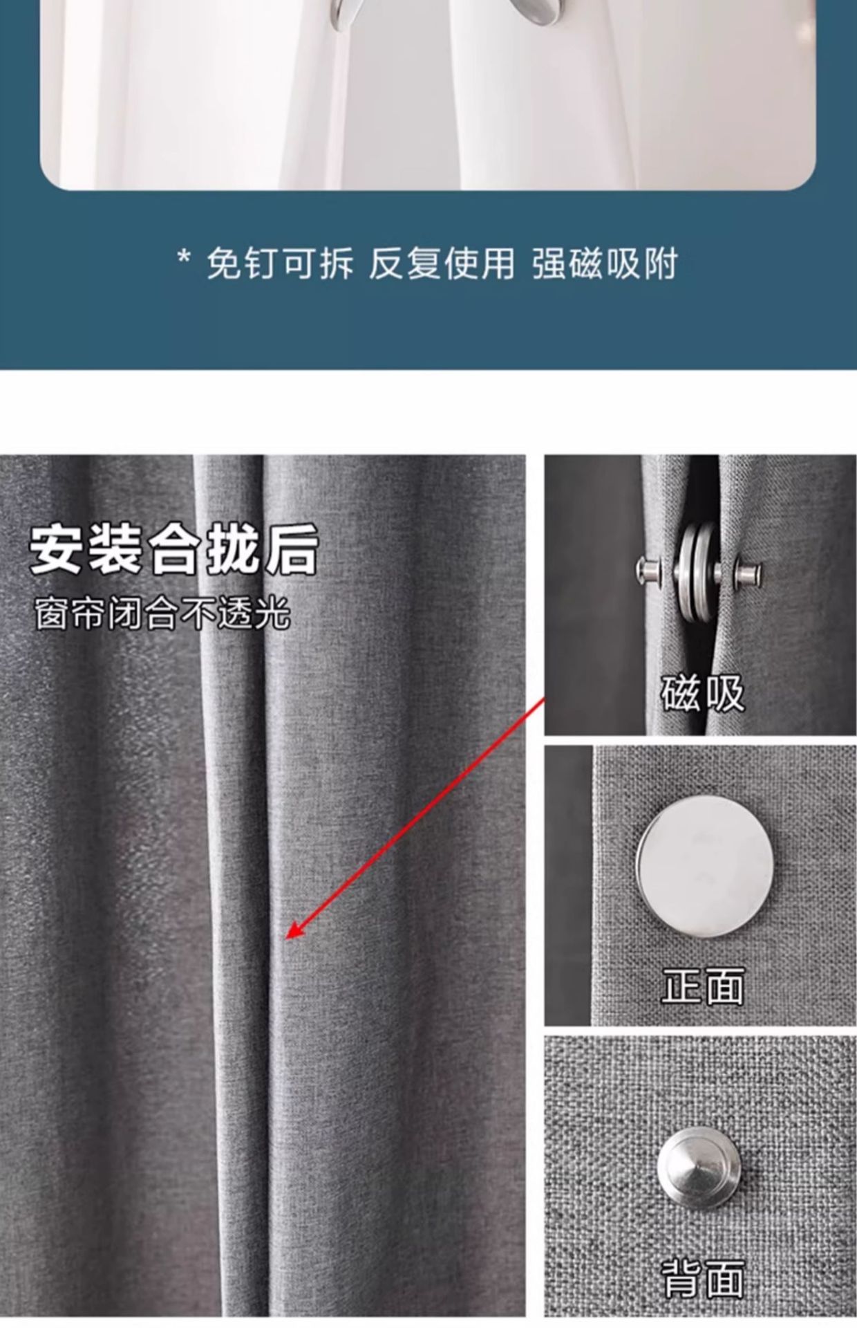 커튼 자석 잠금 버클, 못이 없는 스트랩, 도어 커튼, 빛 차단 침대 커튼 버클, 클립, 자석 고정 장치