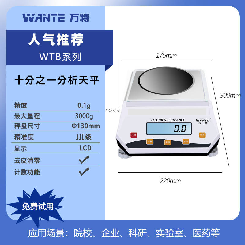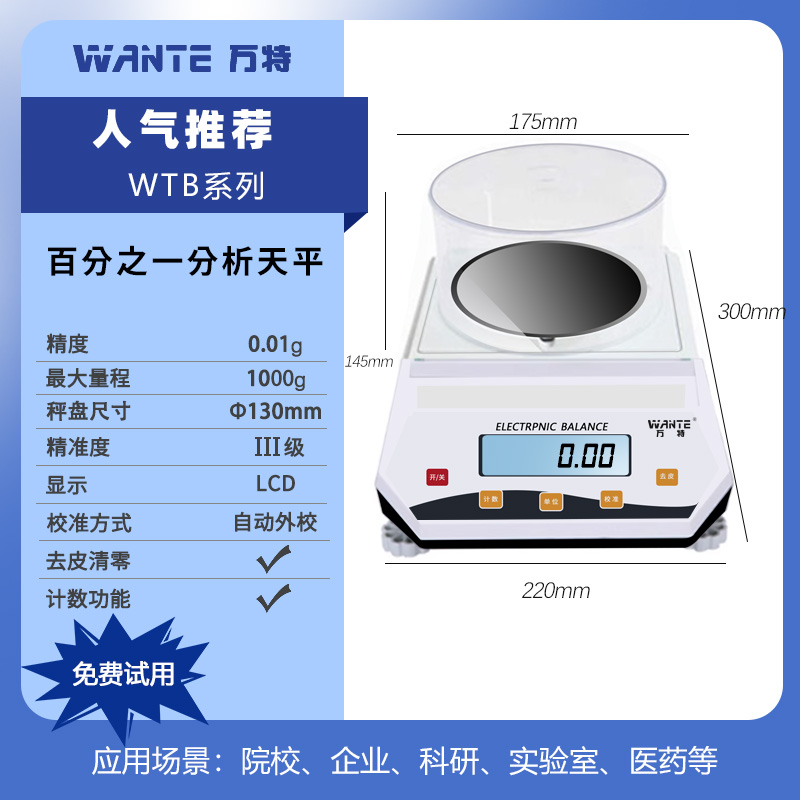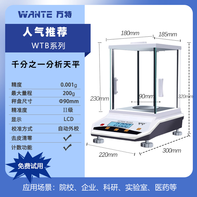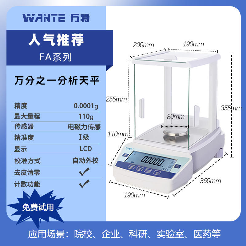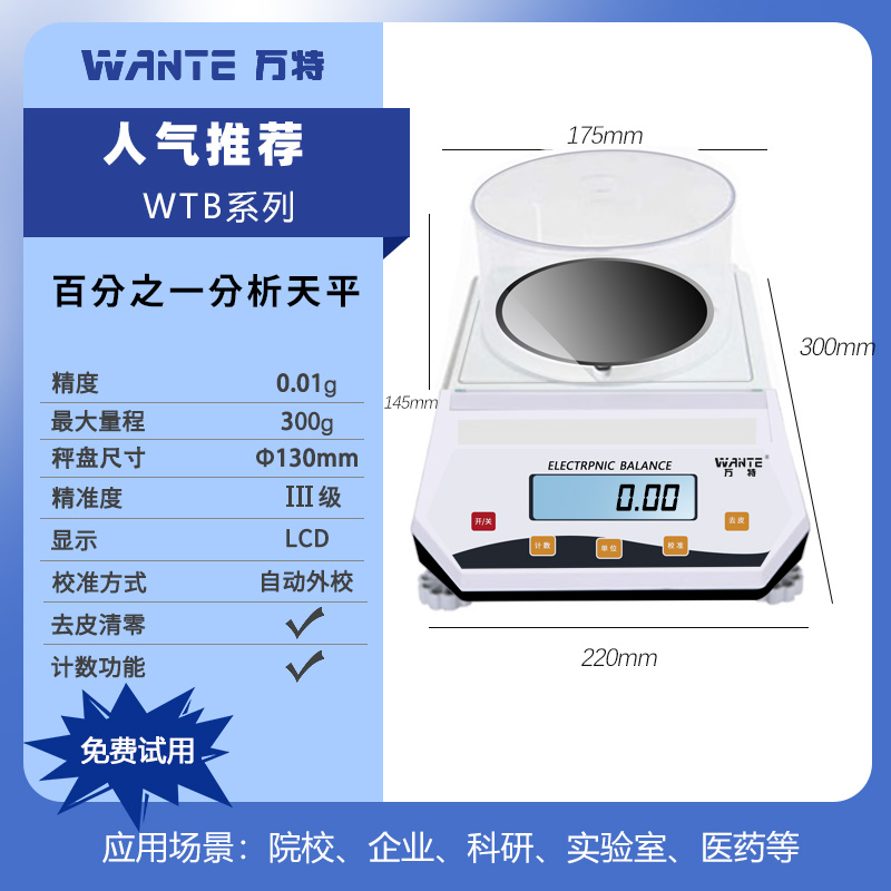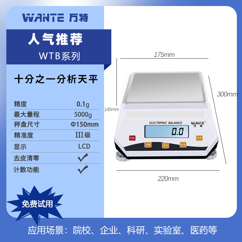 Wante 고정밀 실험실 전자 분석 저울 10,000mg 스케일 밀리그램 스케일