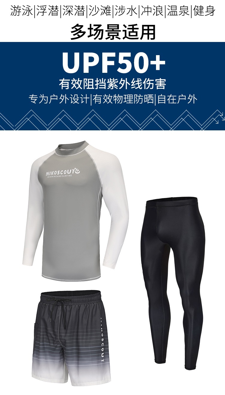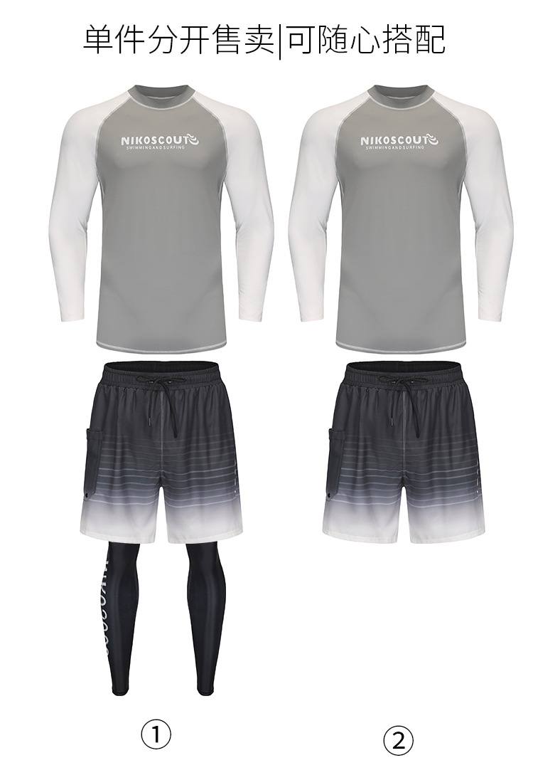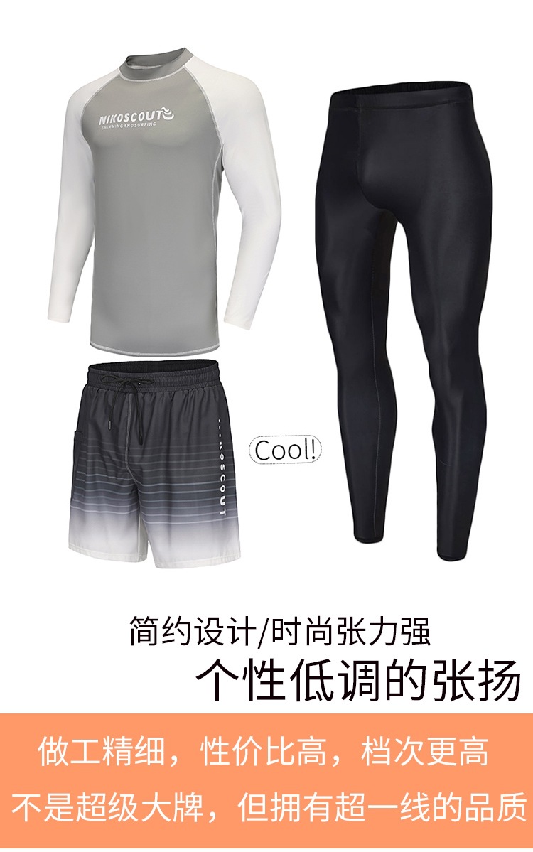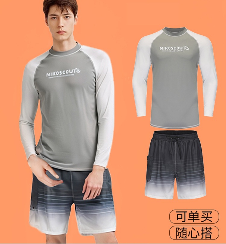 남성용 수영복 새로운 느슨한 스타일 속건성 자외선 차단 서핑 비치 바지 남성용 하이 엔드 긴팔 스플릿 소년 수영복
