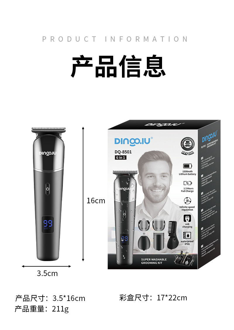 전기 이발기 5-in-1 디지털 디스플레이 세척 가능 자동 전기 이발기 디지털 디스플레이 충전식 오일 헤드 조각 범용 전기 이발기스토어 가기