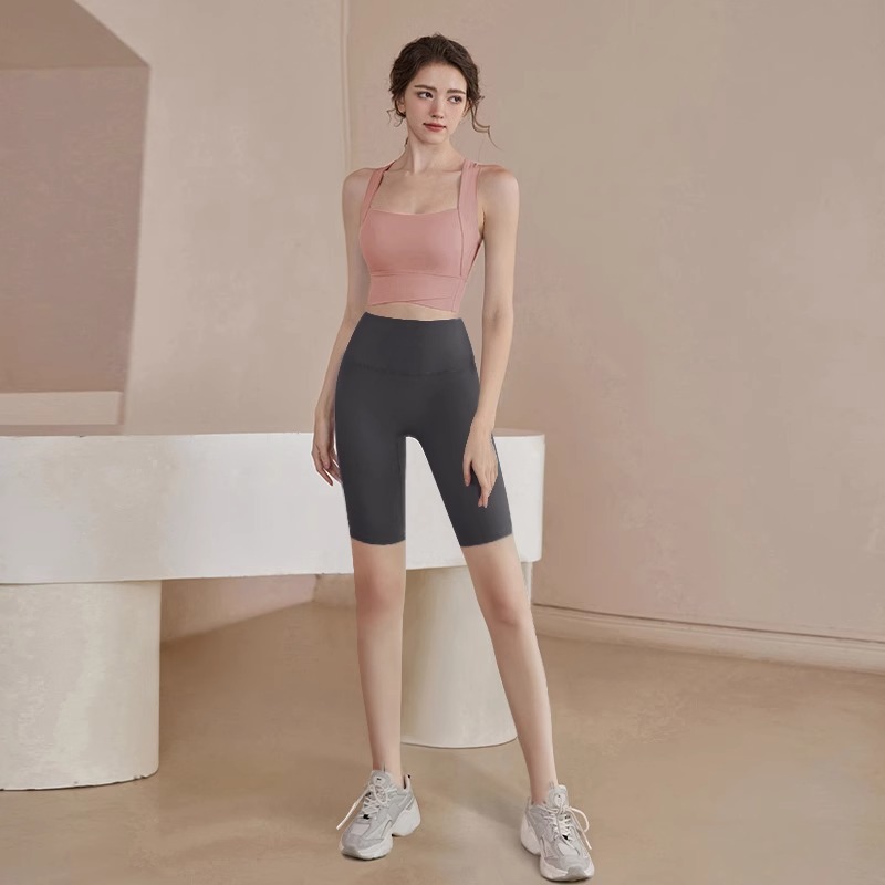 • 한여름 핑크 브라 + 그레이 스포츠 반바지
