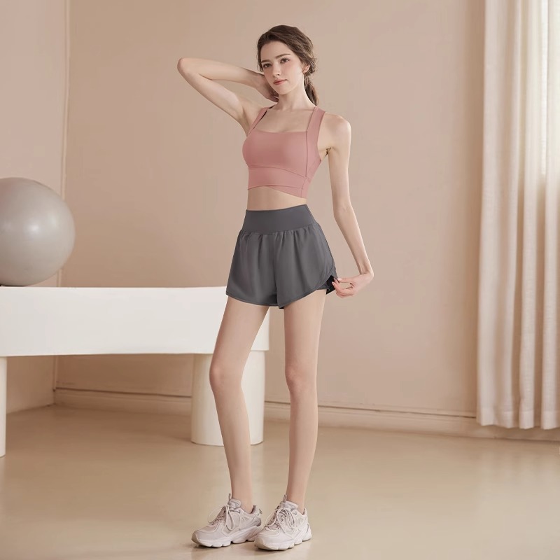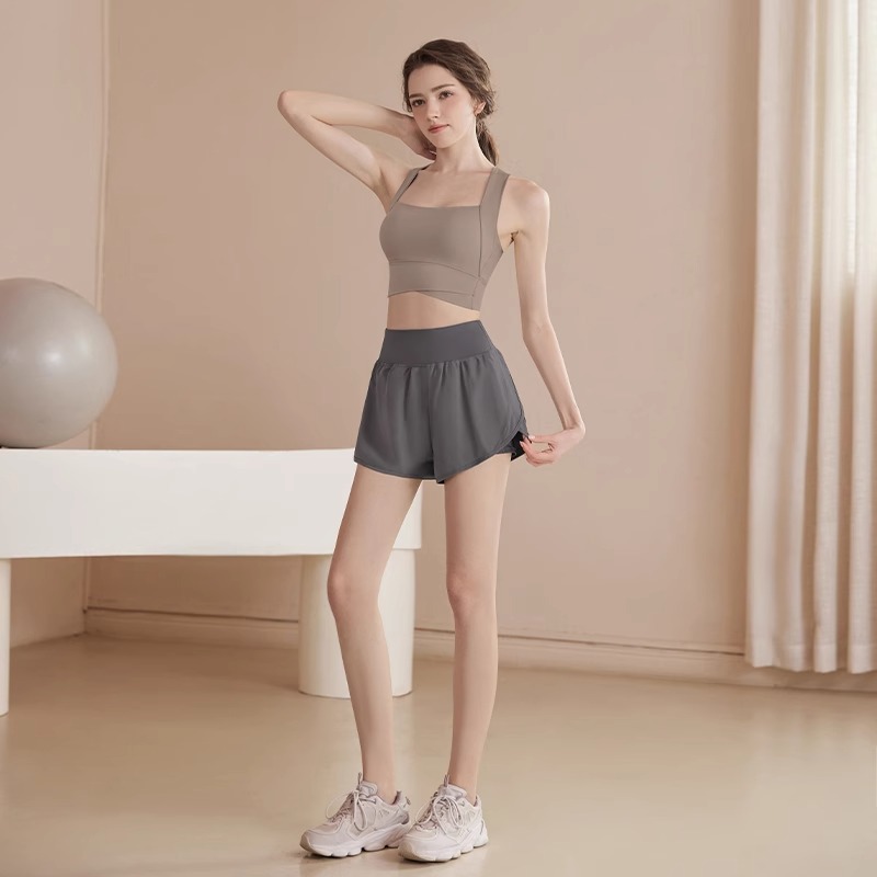 • 갈색 브라 + 회색 스포츠 반바지