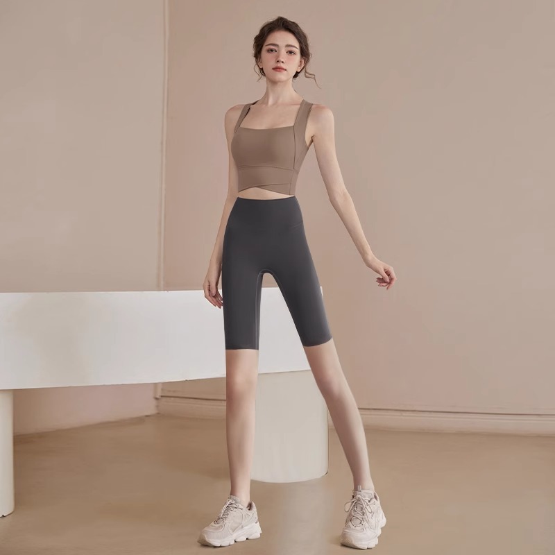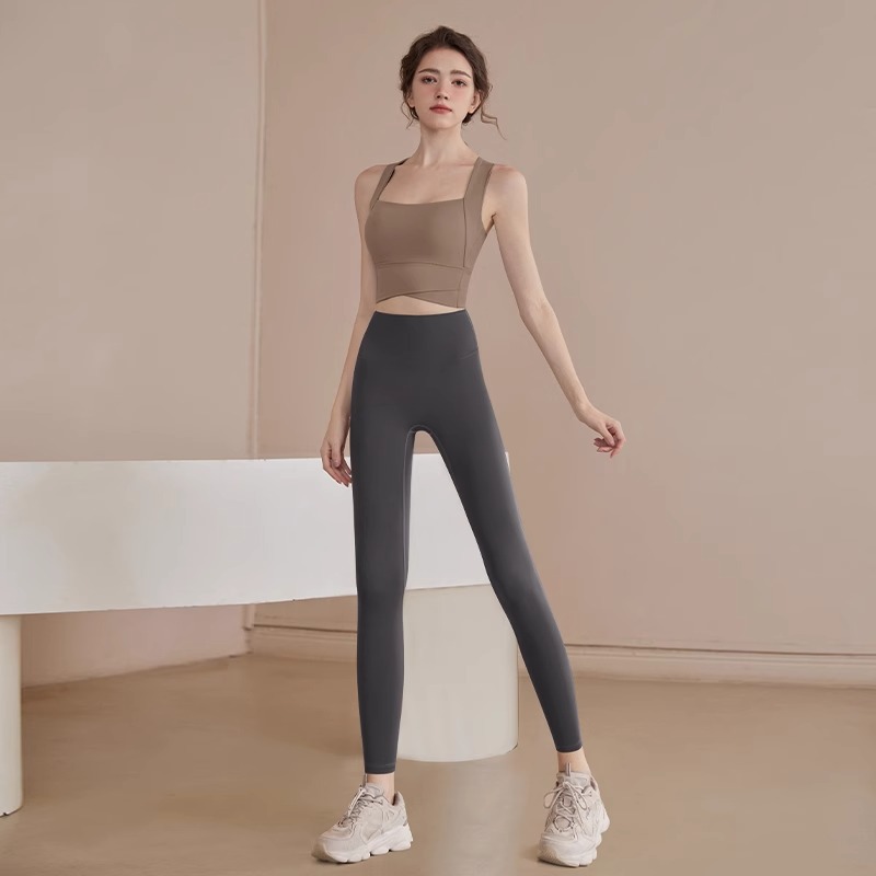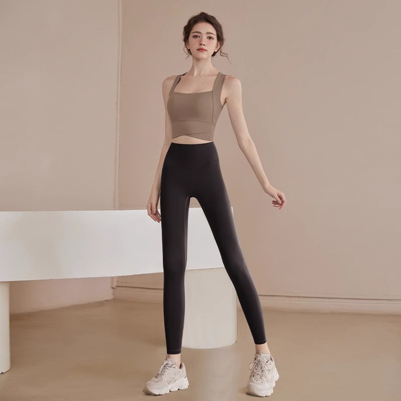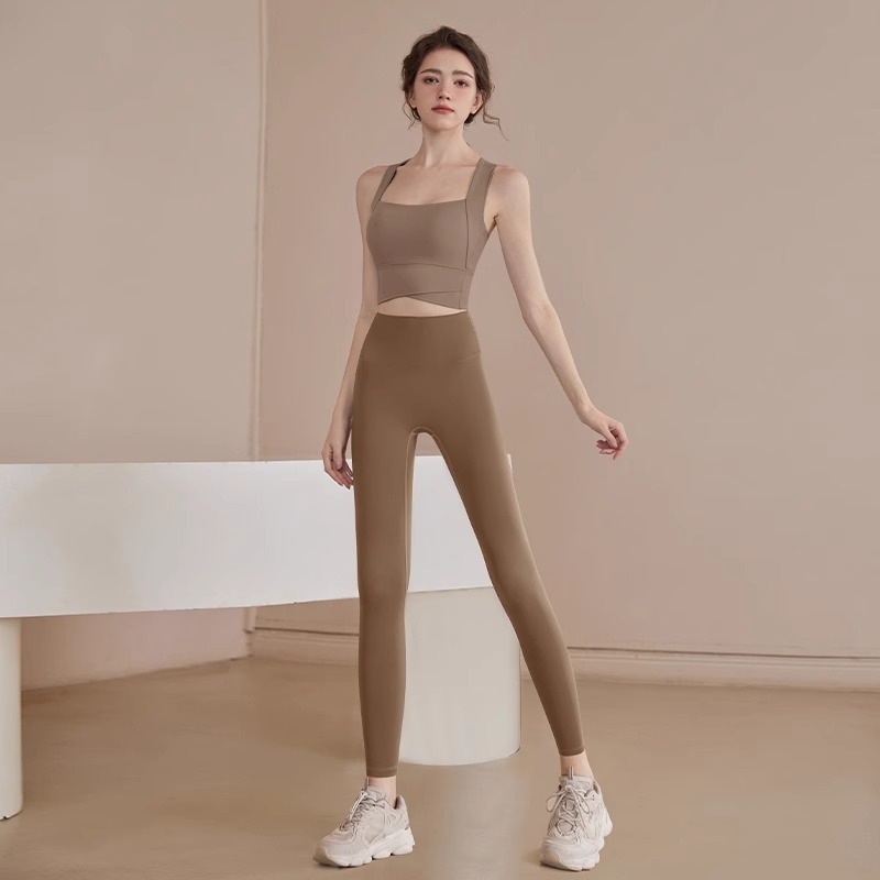 • 갈색 브라 + 회색 요가 반바지