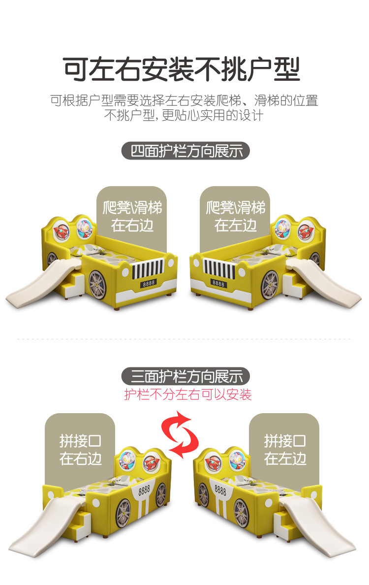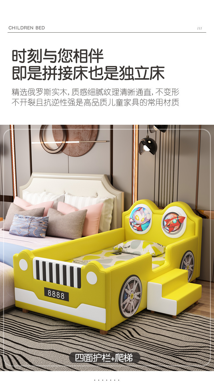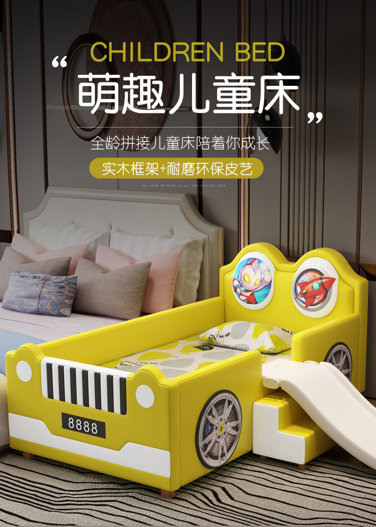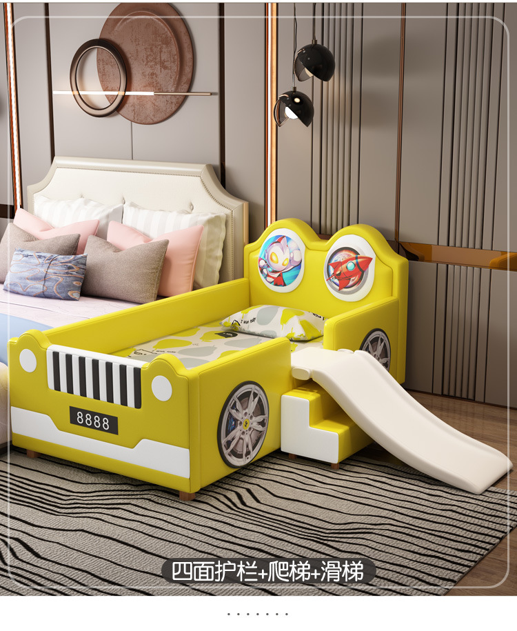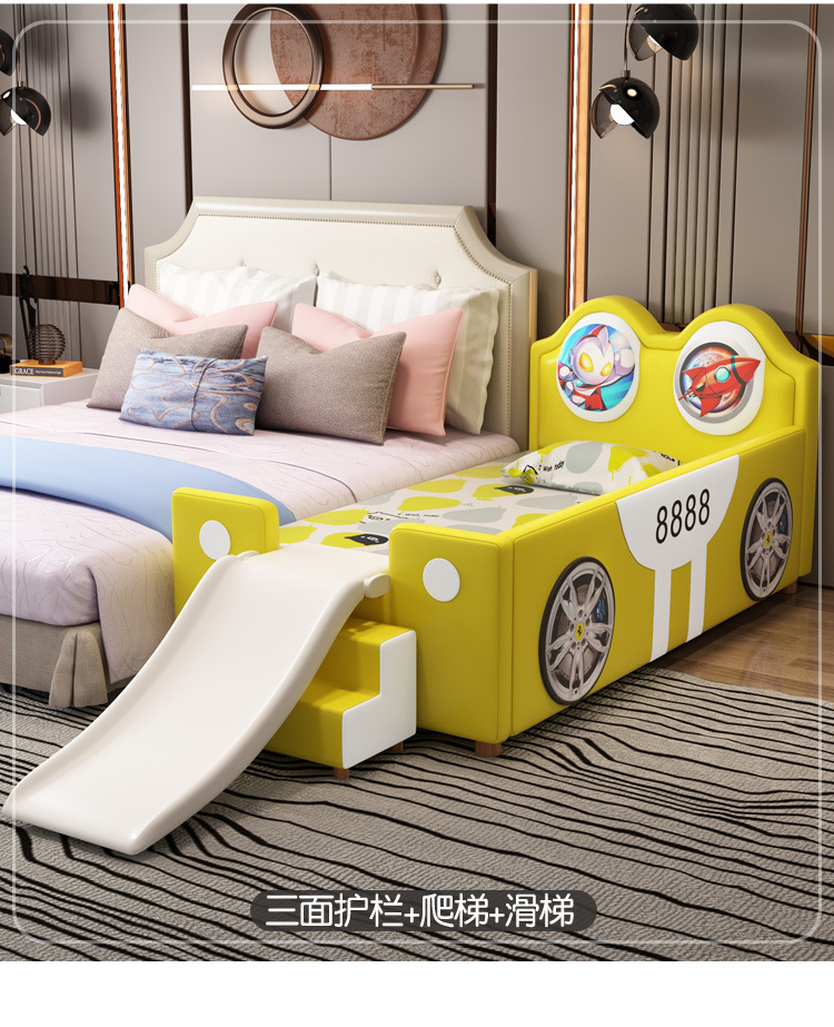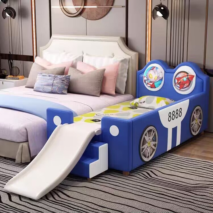 침대 슬라이드가 있는 소년을 위한 크리에이티브 울트라맨 자동차 접합 침대, 낙하 방지, 싱글 확장형 어린이용 침대 접합