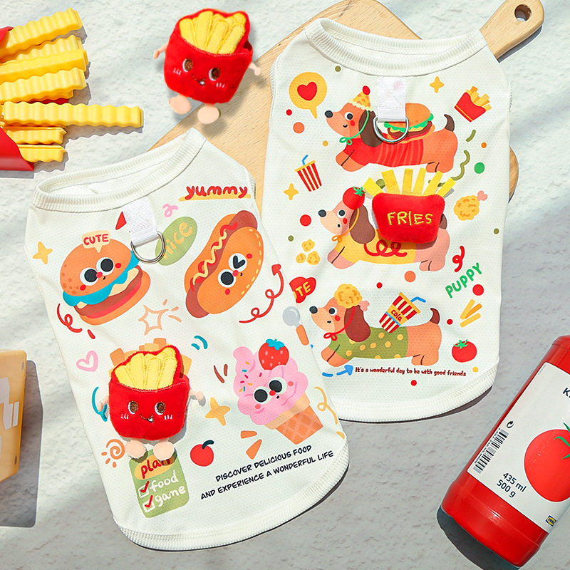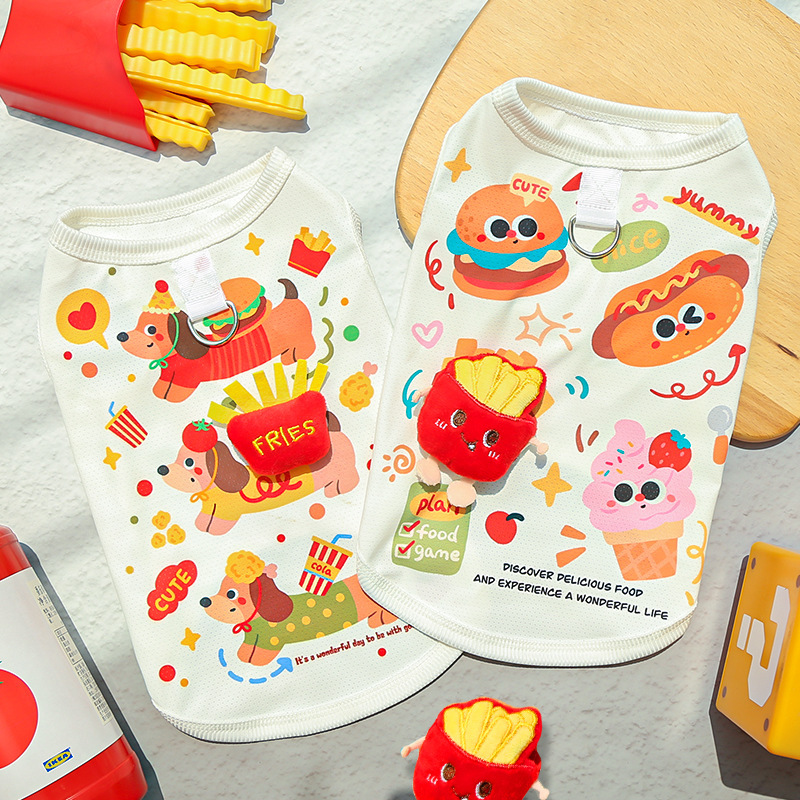원래 얼음 실크 여름 얇은 통기성 멋진 옷 애완견 애완견 옷 고양이 의류 용품 귀여운 카드스토어 가기