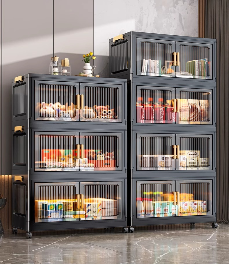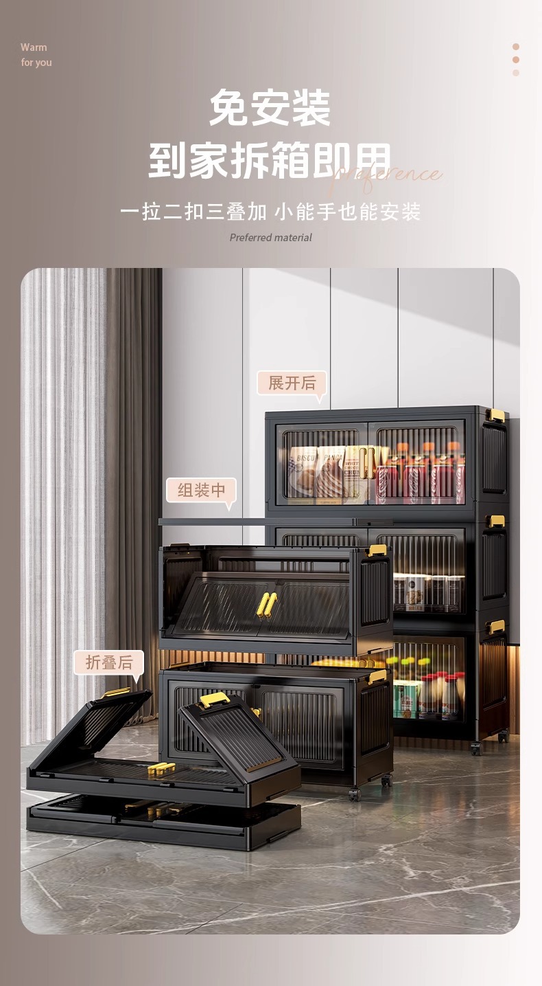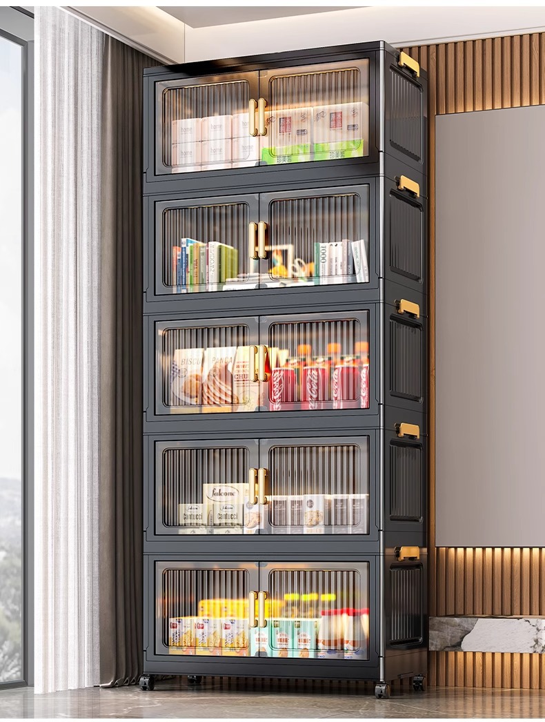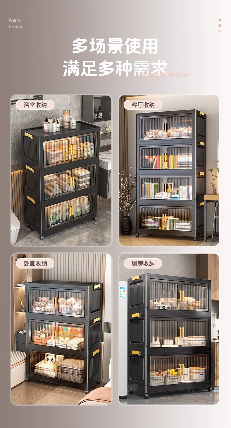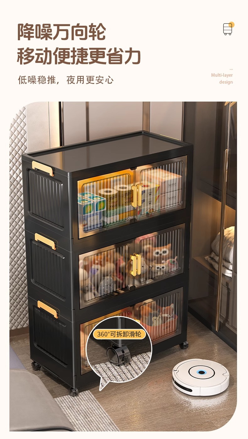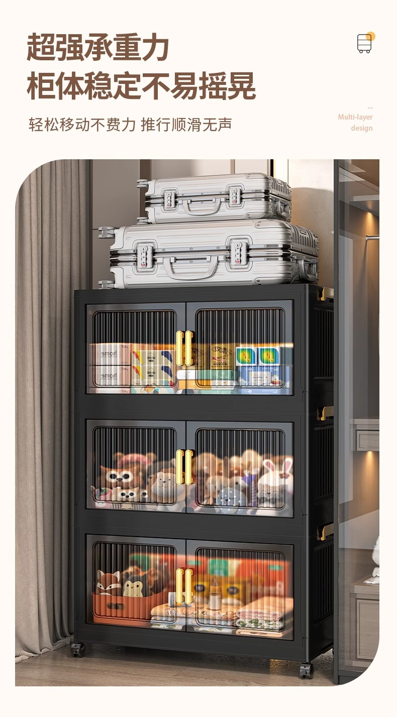 검은 접이식 보관 캐비닛 다층 보관 캐비닛 가정용 아기 옷장 설치가 필요없는 아기 옷 플라스틱 보관스토어 가기