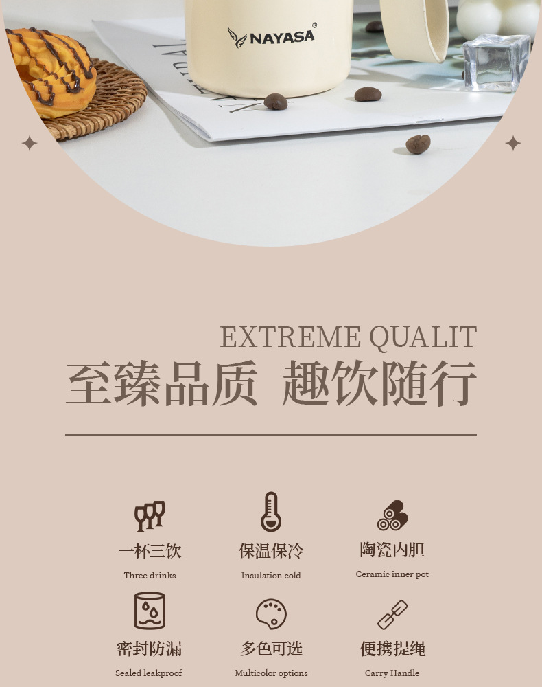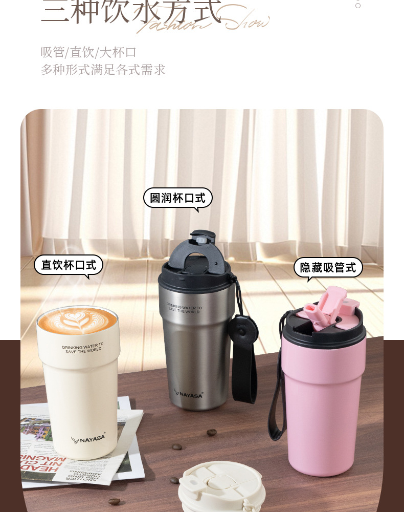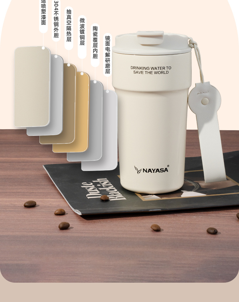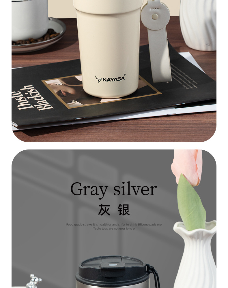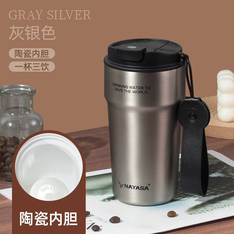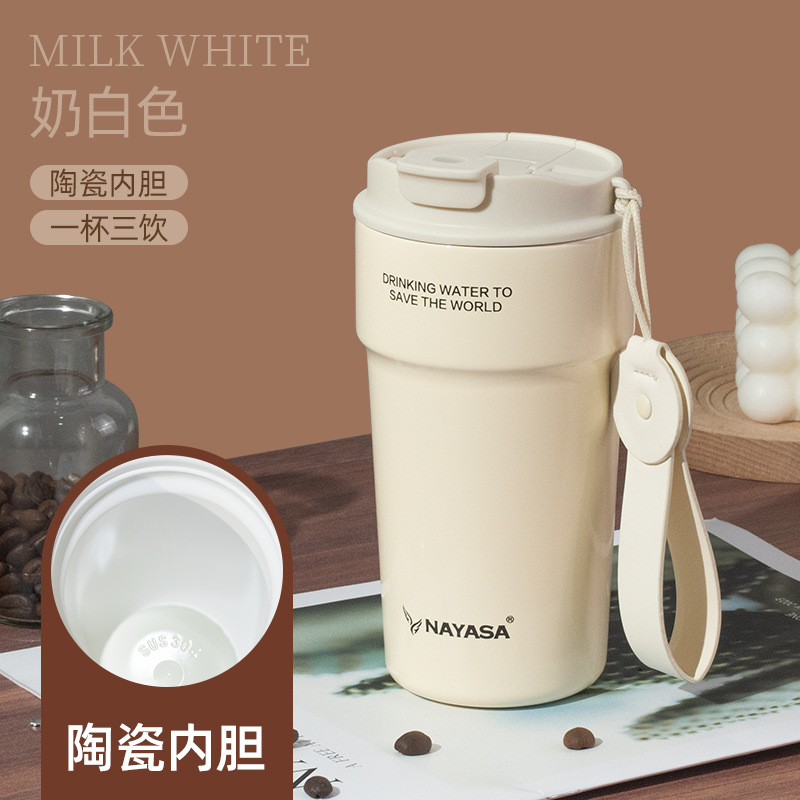 커피컵 세라믹 내부 코팅 보온병 휴대용 남성용 빨대 포함 이중 음료 보냉컵스토어 가기