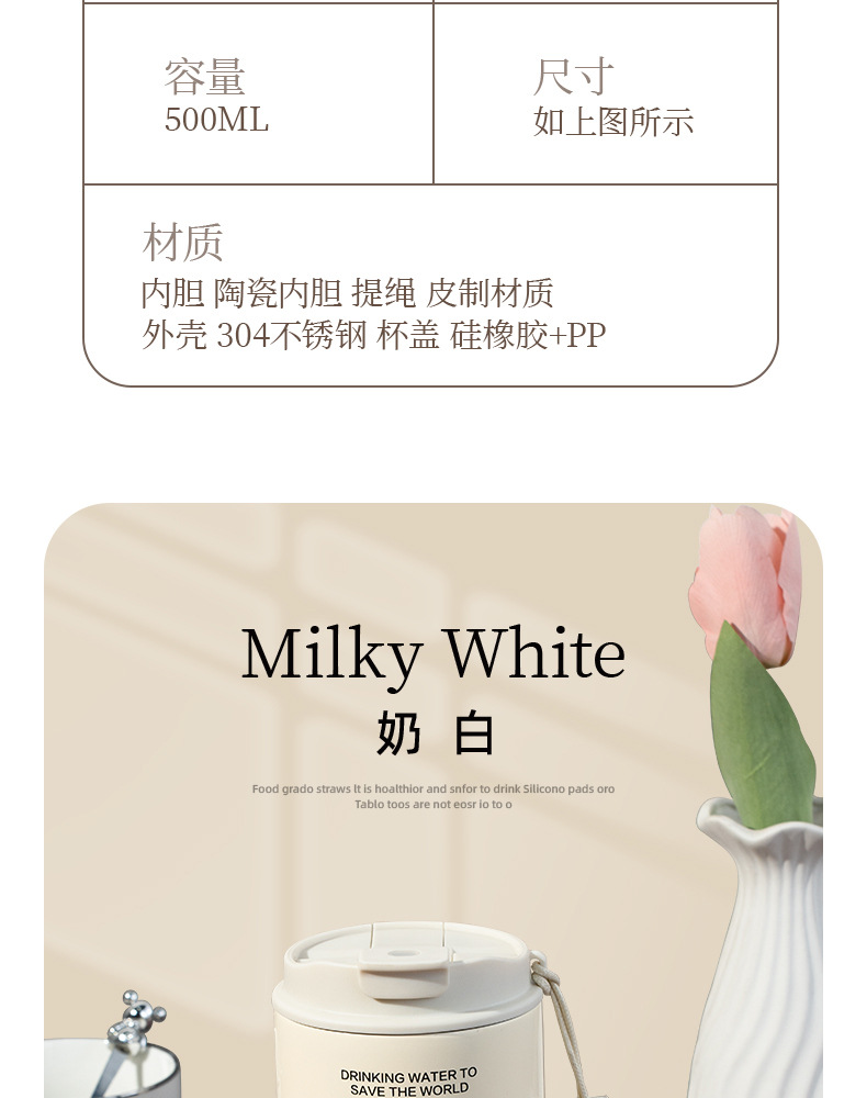 커피컵 세라믹 내부 코팅 보온병 휴대용 남성용 빨대 포함 이중 음료 보냉컵