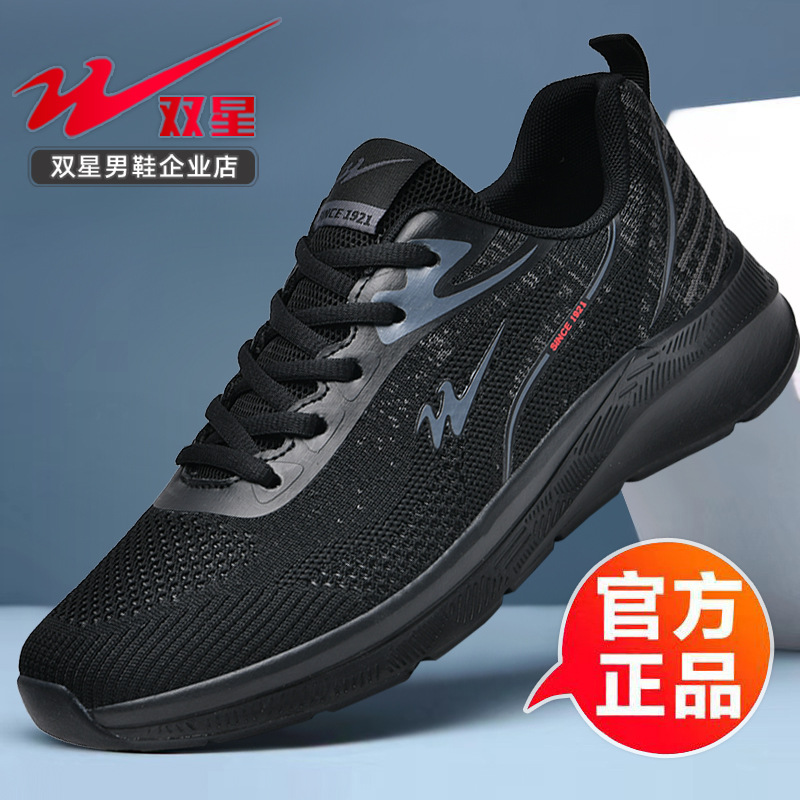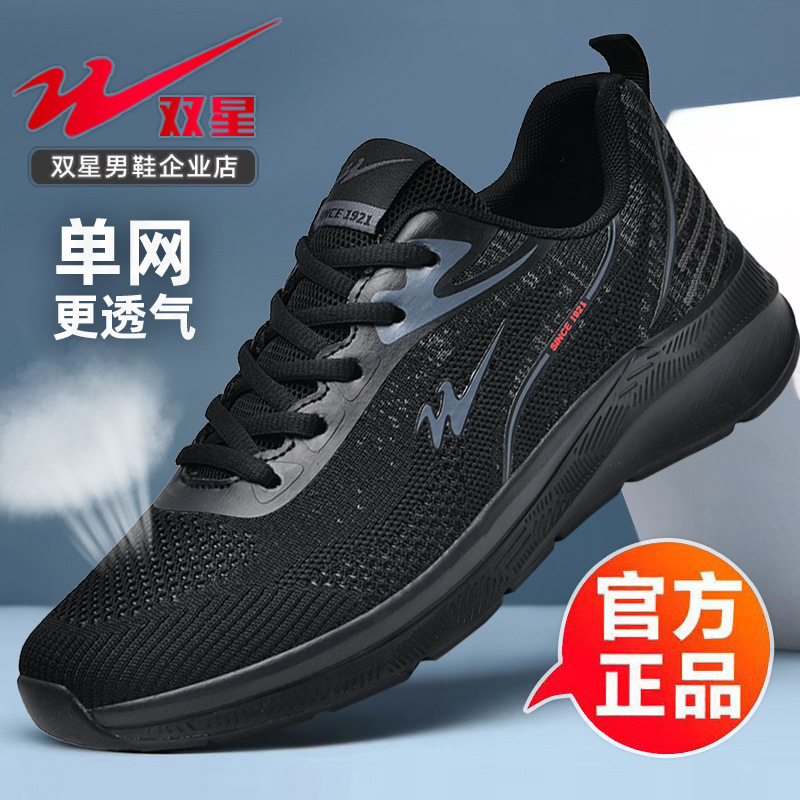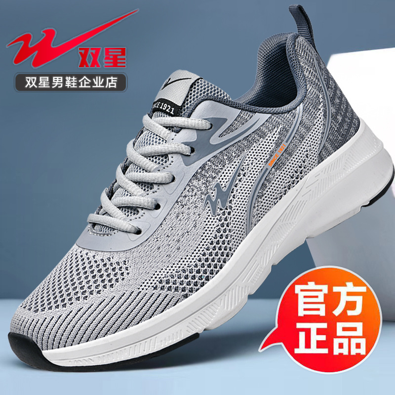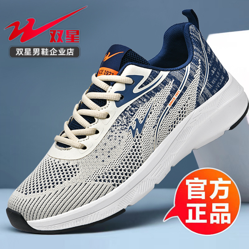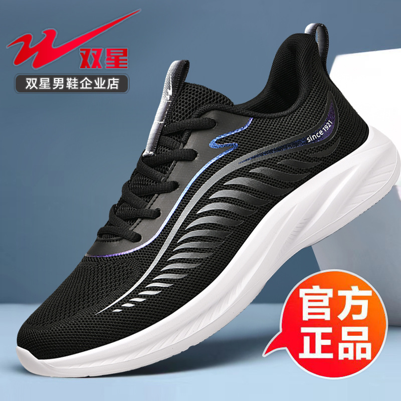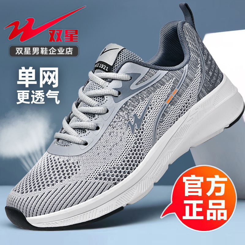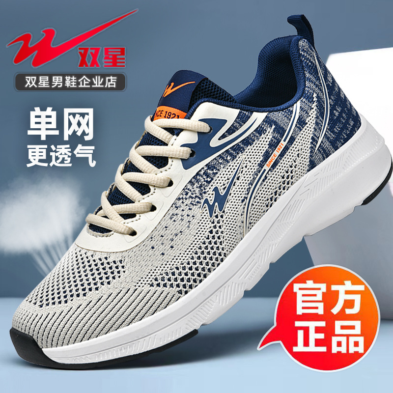 2025 더블 스타 신발 봄과 가을 스포츠 신발 남성 메쉬 통기성 다목적 캐주얼 신발 경량 남성 소프트 솔리드 운동화스토어 가기
