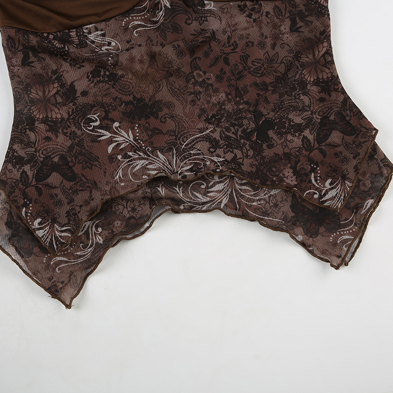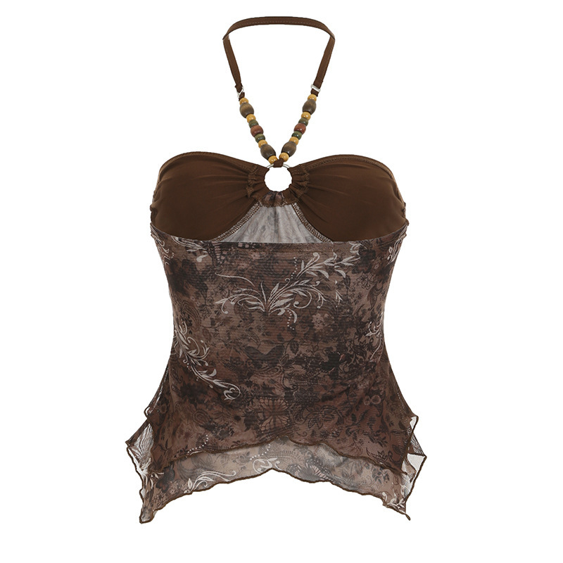 메일라드 복고풍 스타일 비즈 홀터넥 슬링 불규칙한 밑단 메쉬 스플 라이스 조끼 핫 소녀 스타일 신상품 여성 의류스토어 가기