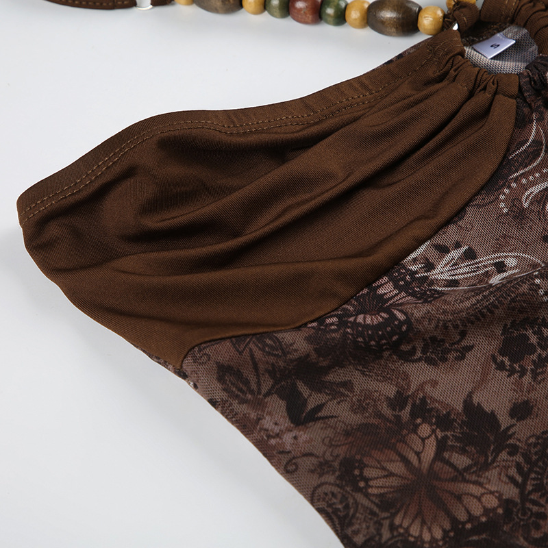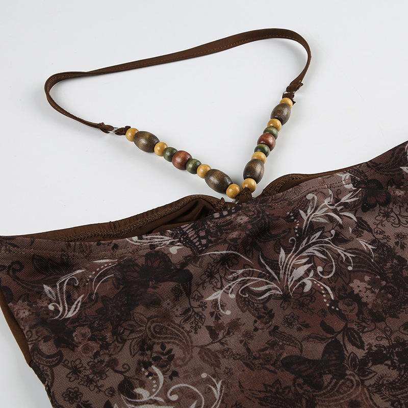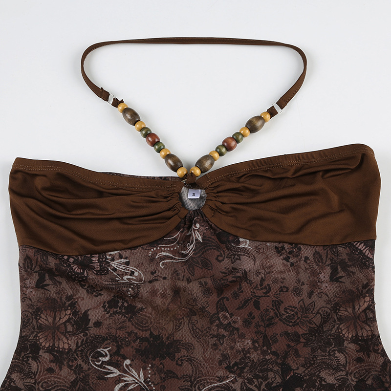 메일라드 복고풍 스타일 비즈 홀터넥 슬링 불규칙한 밑단 메쉬 스플 라이스 조끼 핫 소녀 스타일 신상품 여성 의류