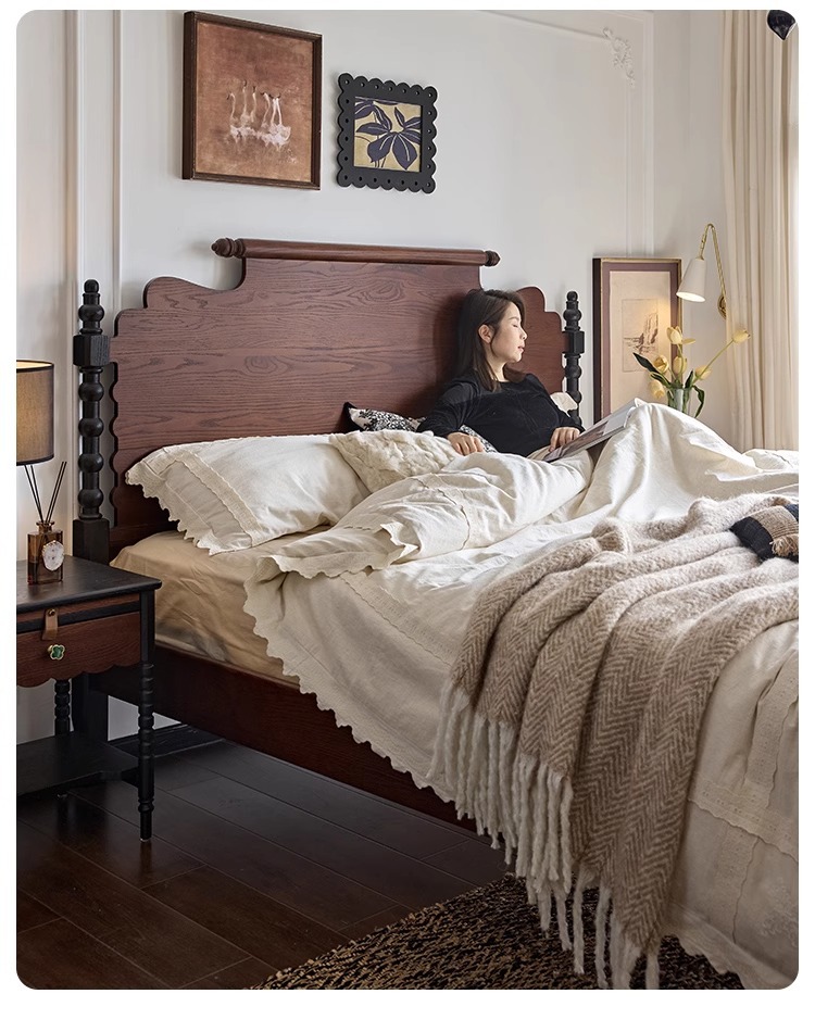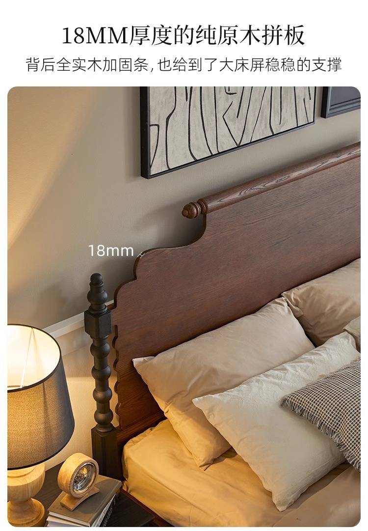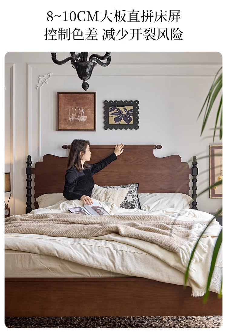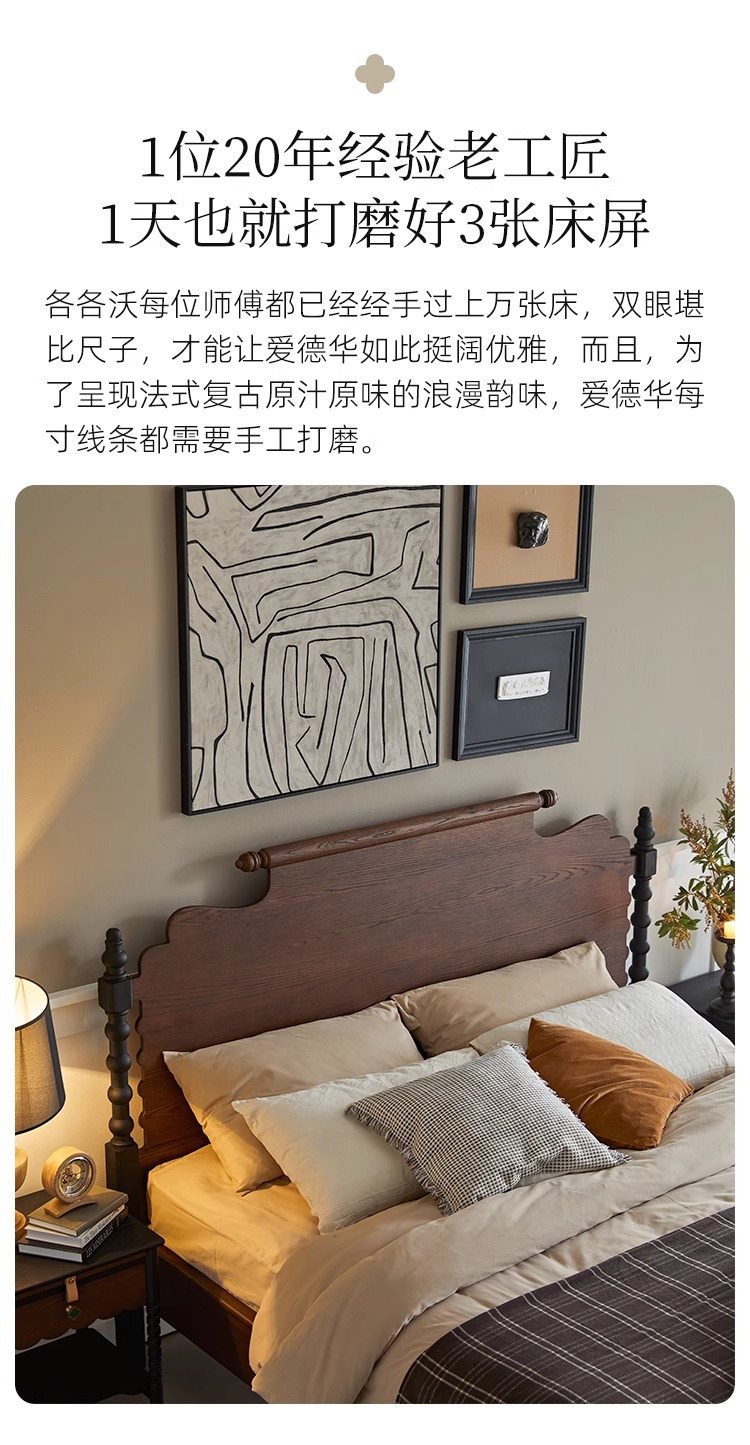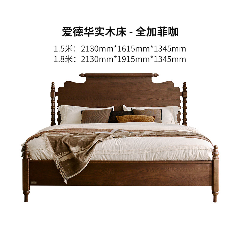 프랑스 복고풍 에드워드 침대, 중세 침대, 미국식 소형 아파트 더블 1.8m 마스터 침실 단단한 물푸레나무 가구스토어 가기
