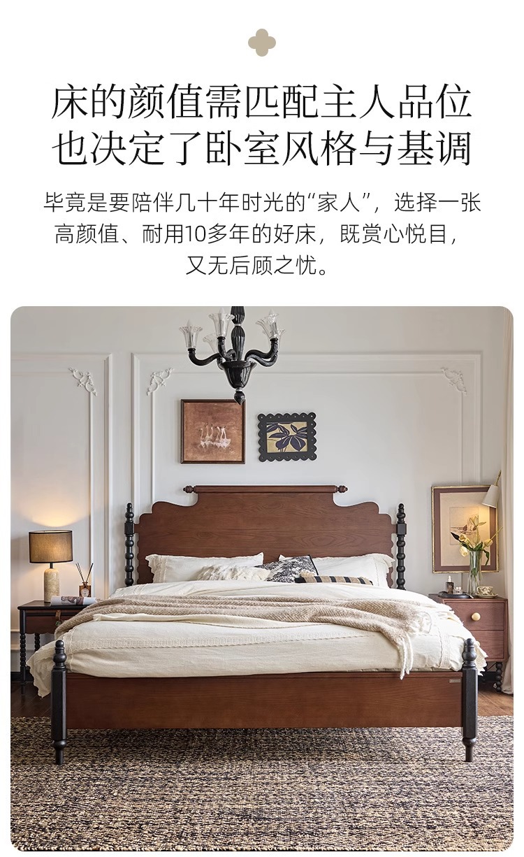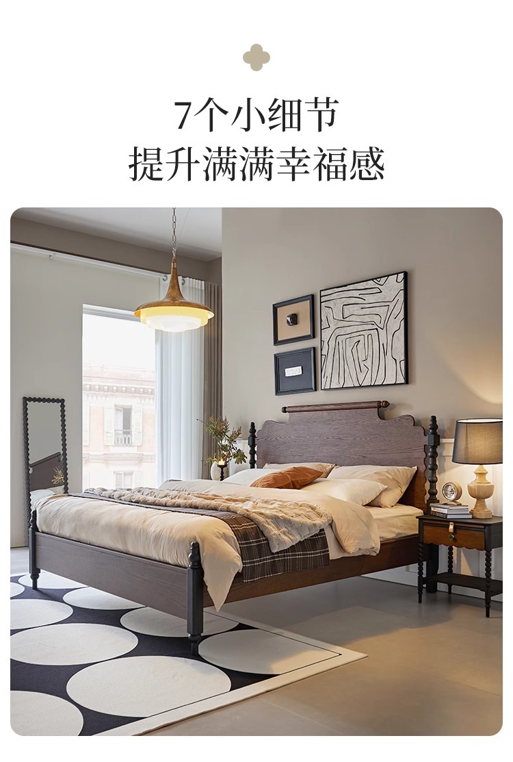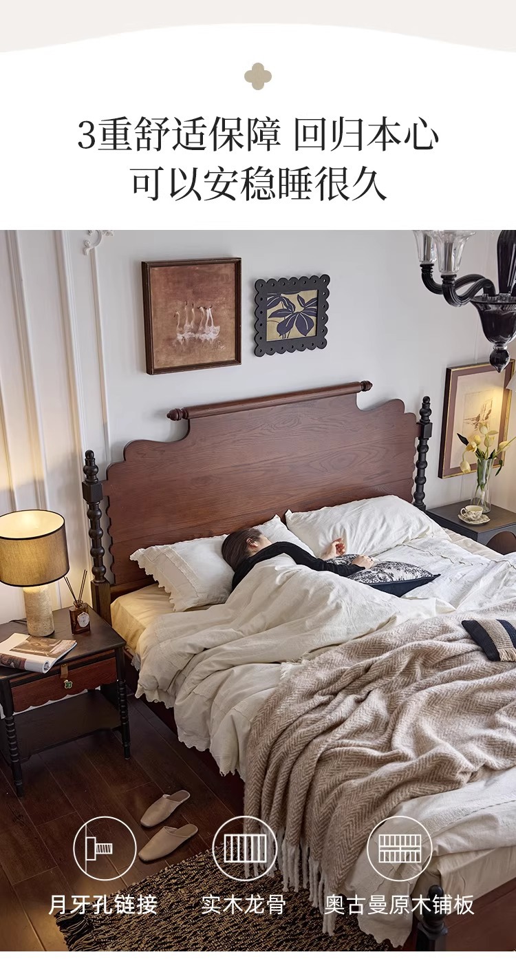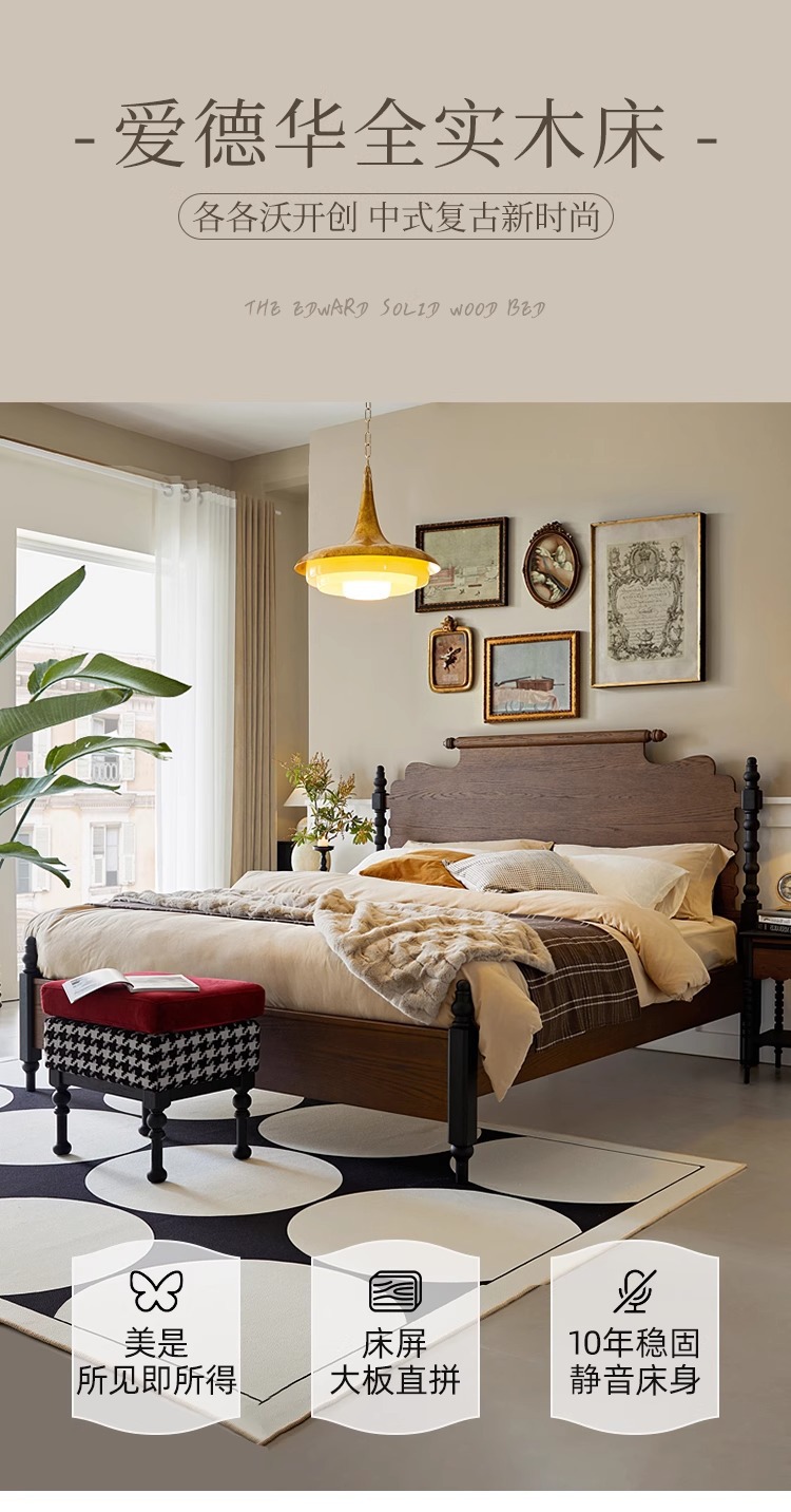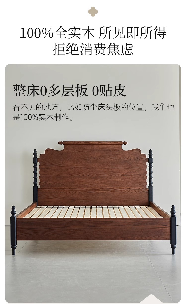 프랑스 복고풍 에드워드 침대, 중세 침대, 미국식 소형 아파트 더블 1.8m 마스터 침실 단단한 물푸레나무 가구스토어 가기
