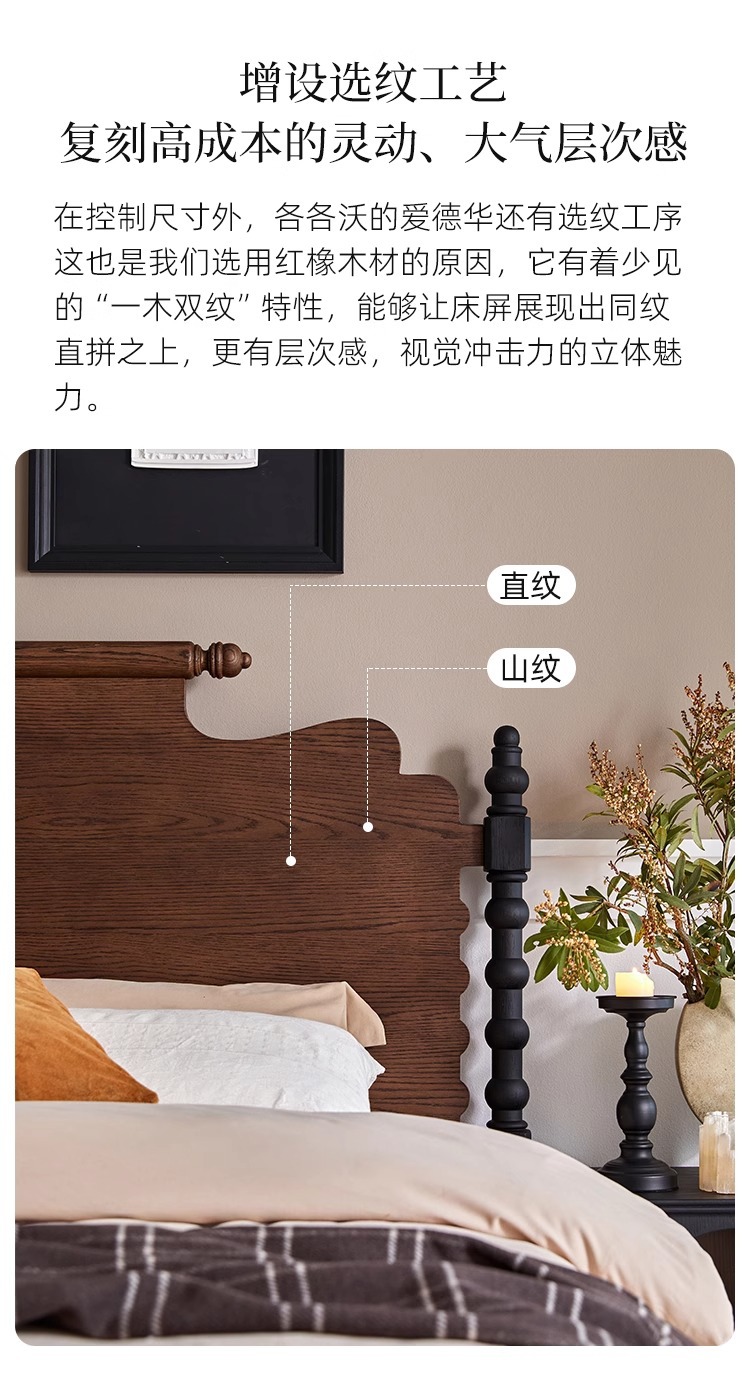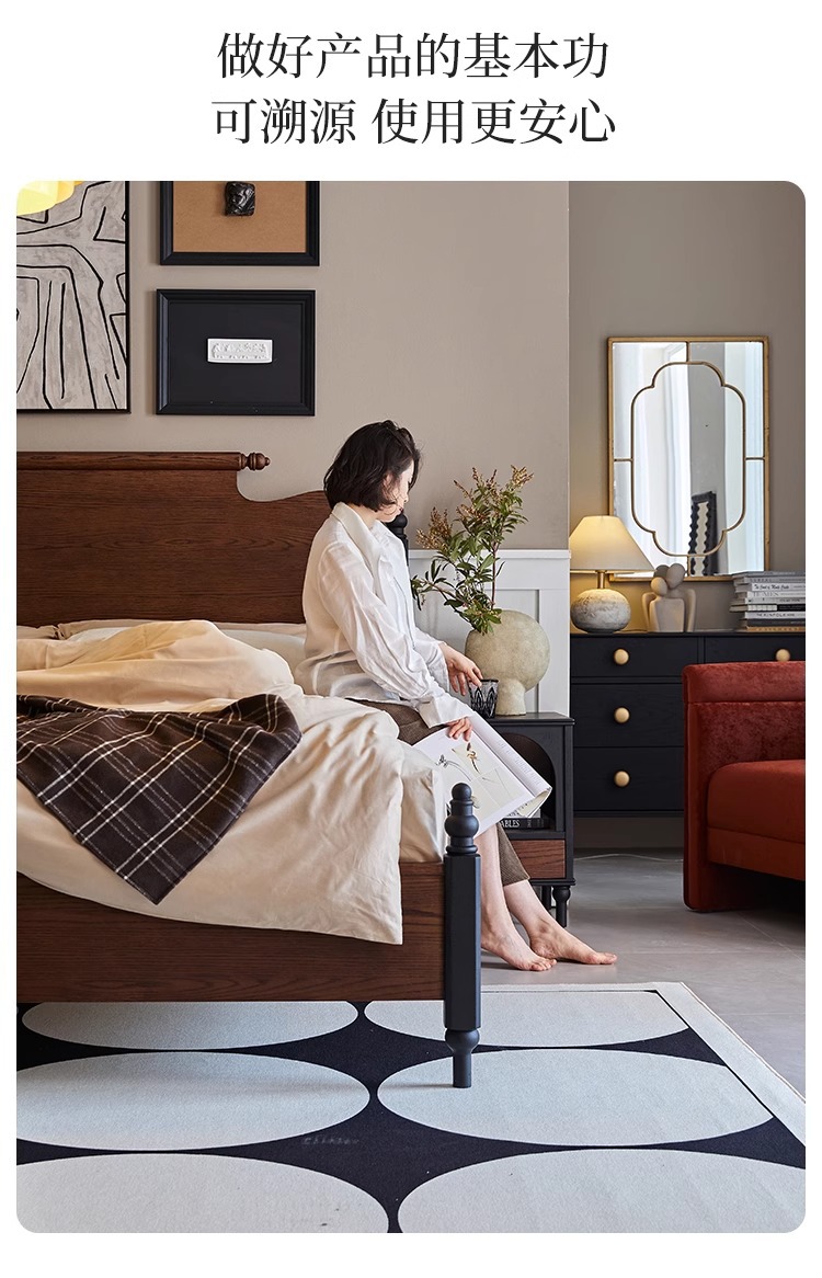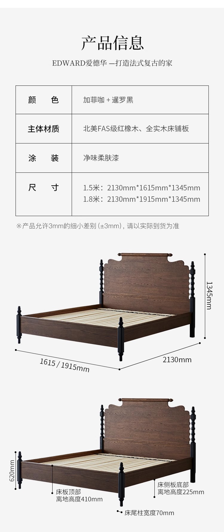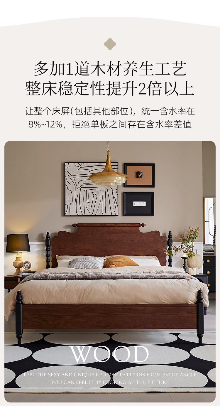프랑스 복고풍 에드워드 침대, 중세 침대, 미국식 소형 아파트 더블 1.8m 마스터 침실 단단한 물푸레나무 가구스토어 가기
