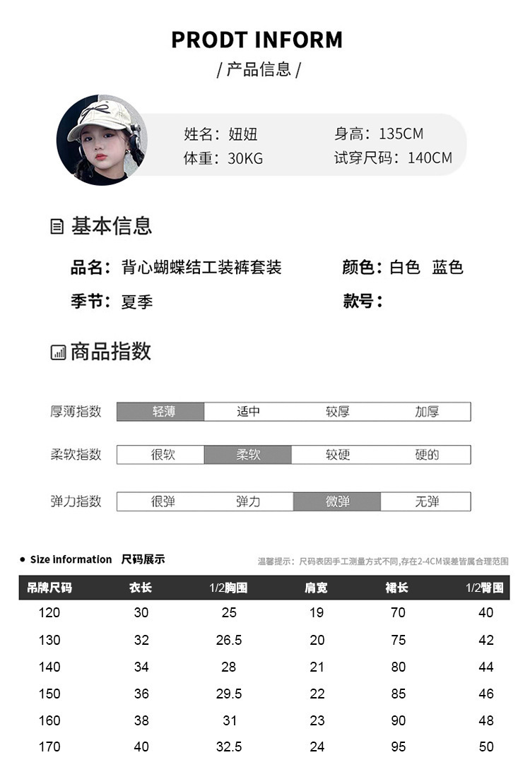 여자 작업복 정장 여름 2024 새로운 중대형 어린이 패션 조끼 나비 넥타이 캐주얼 바지스토어 가기