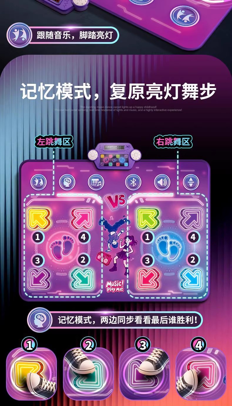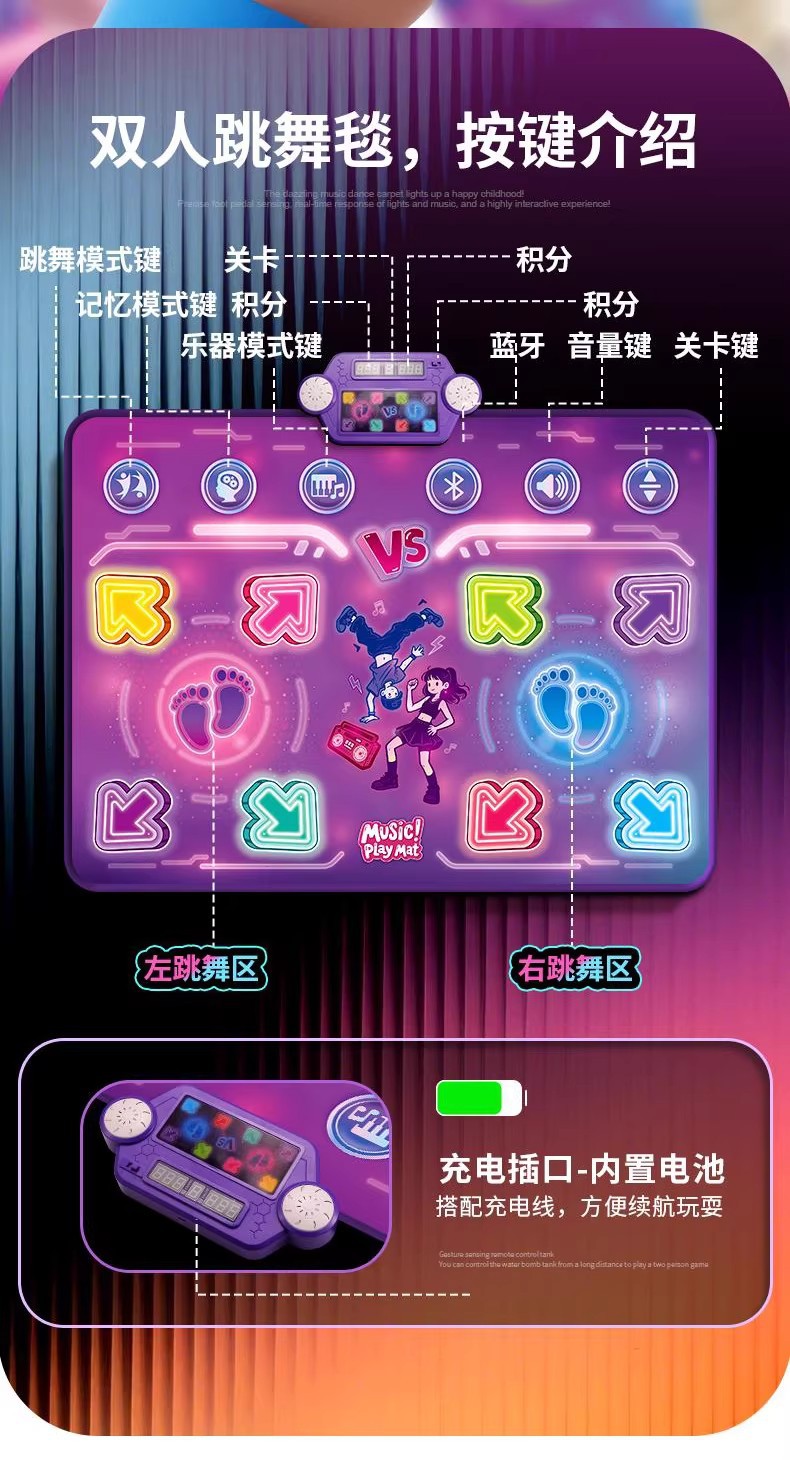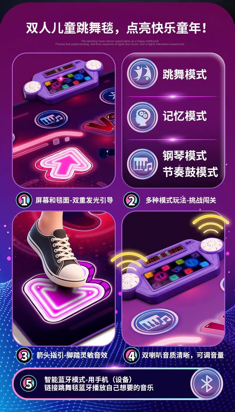 2인용 PK 댄스 매트, 음악 블루투스 운동 감각 훈련 장치, 피트니스 키 성장 게임, 점프 매트, 어린이 장난감스토어 가기