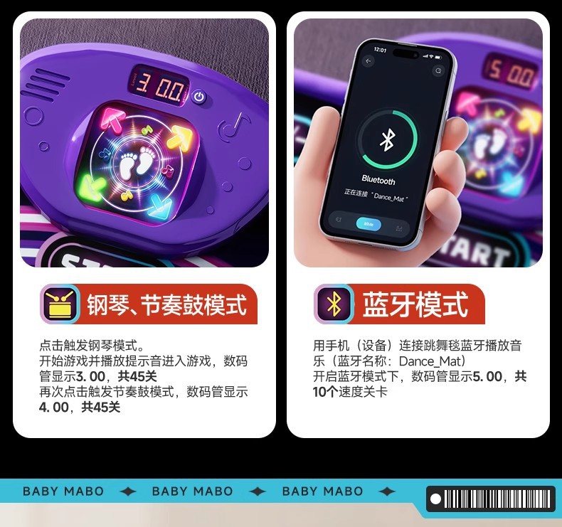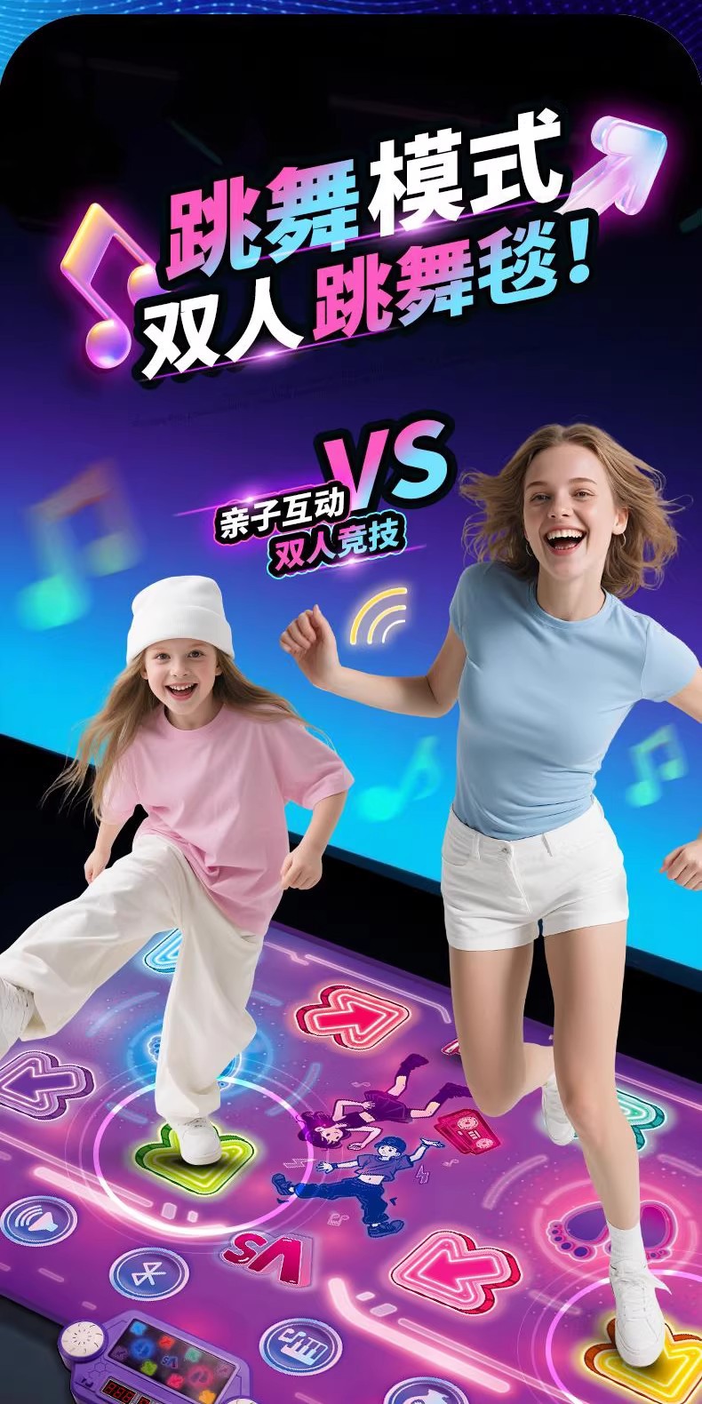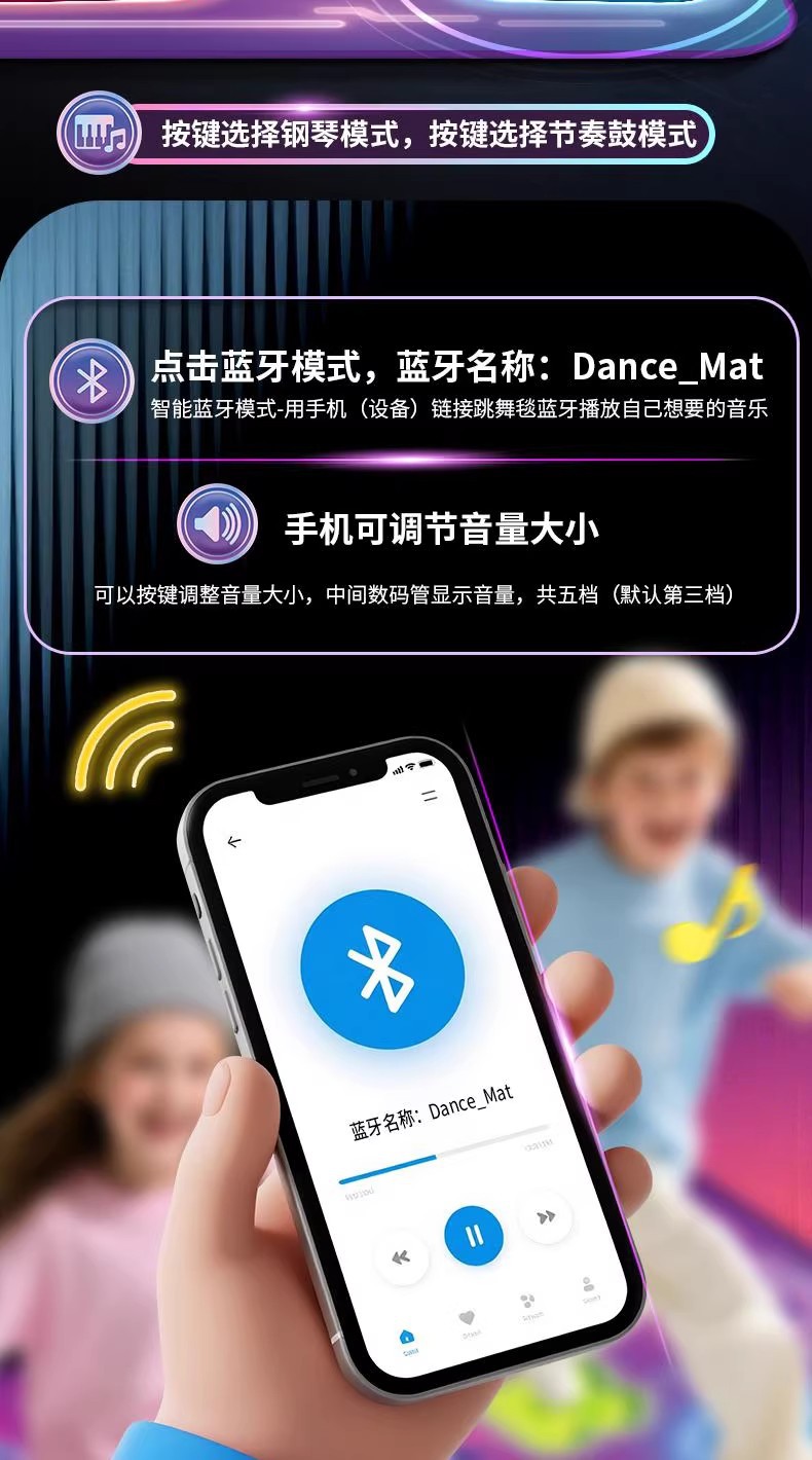 2인용 PK 댄스 매트, 음악 블루투스 운동 감각 훈련 장치, 피트니스 키 성장 게임, 점프 매트, 어린이 장난감스토어 가기