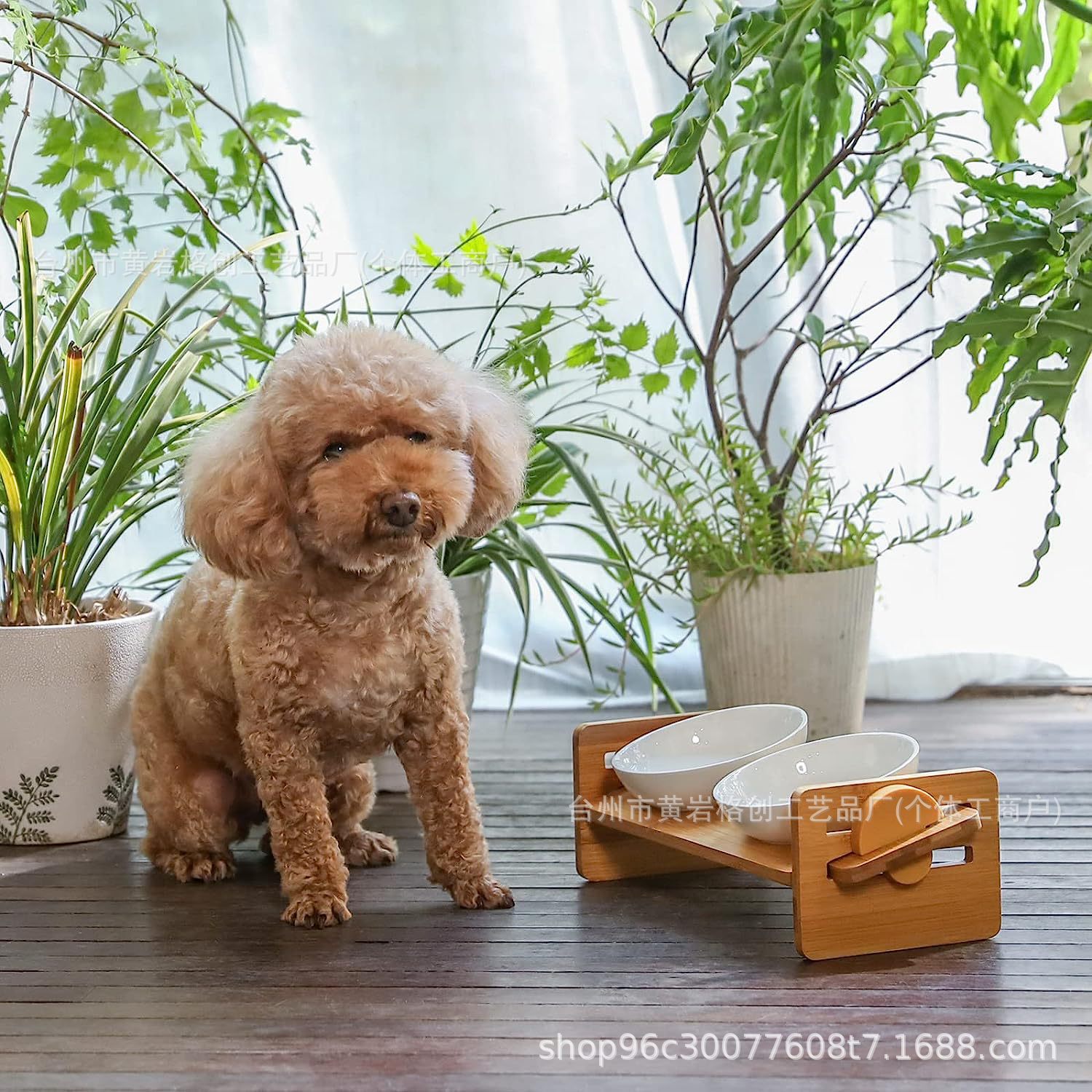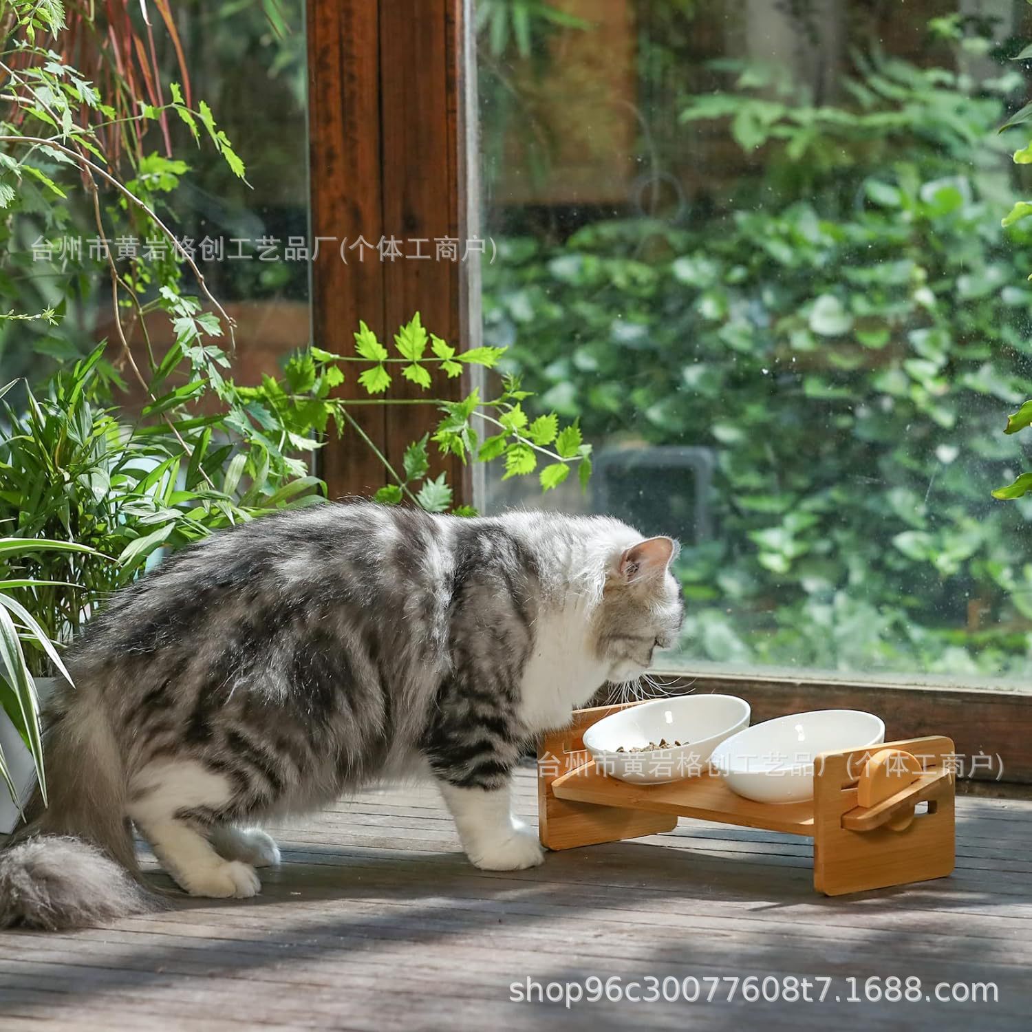 국경을 넘는 새로운 단단한 나무 애완 동물 피더 고양이와 개 나무 더블 밥 그릇 식탁 높이 조절 식품 랙스토어 가기