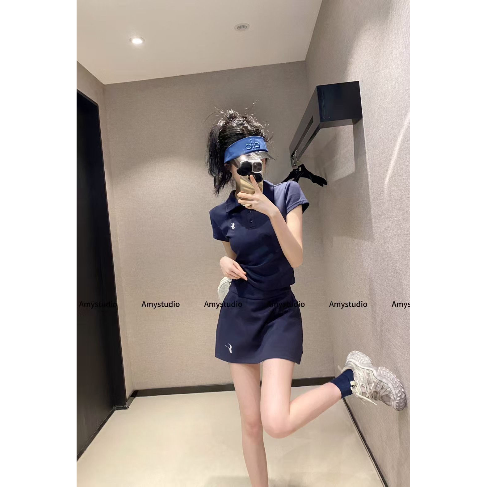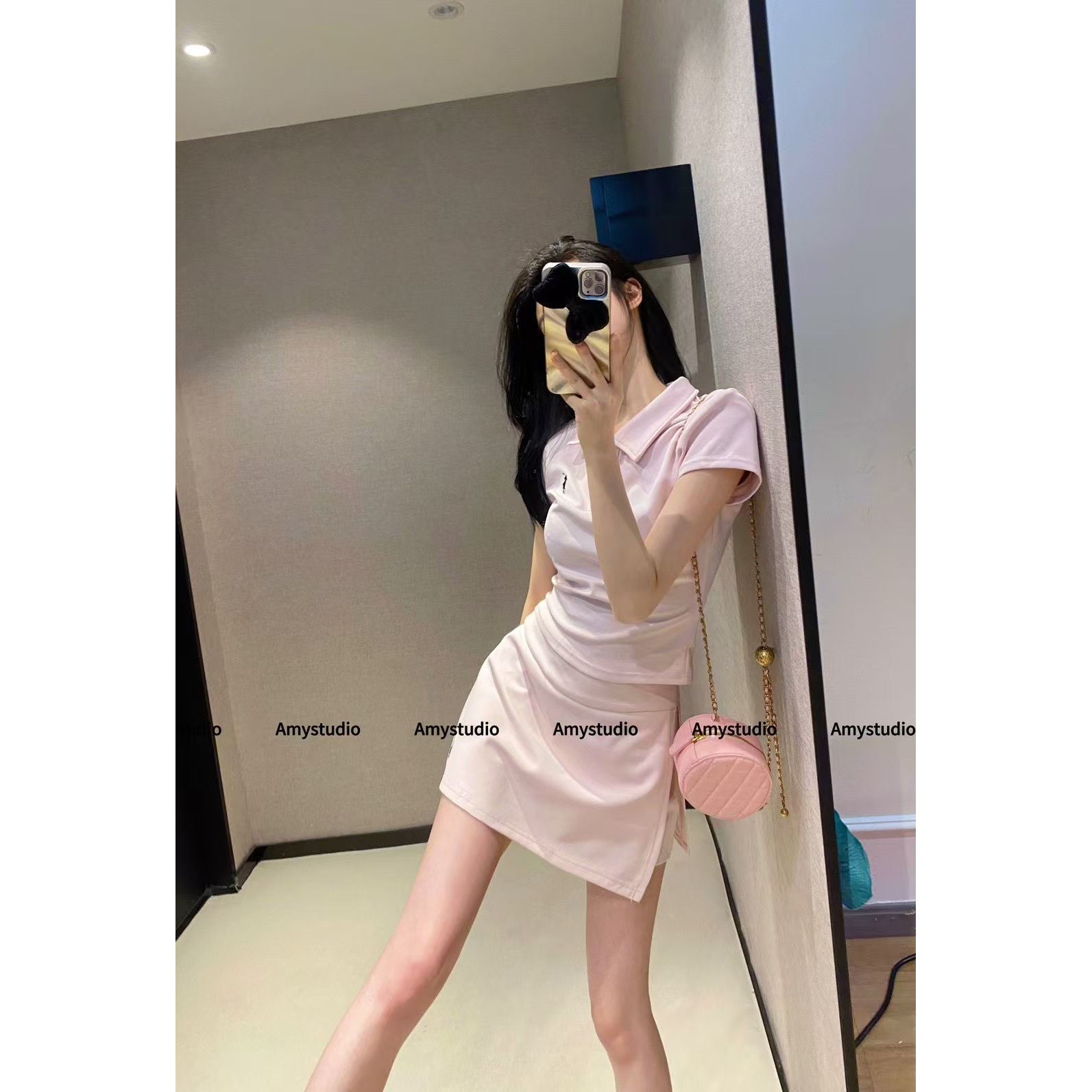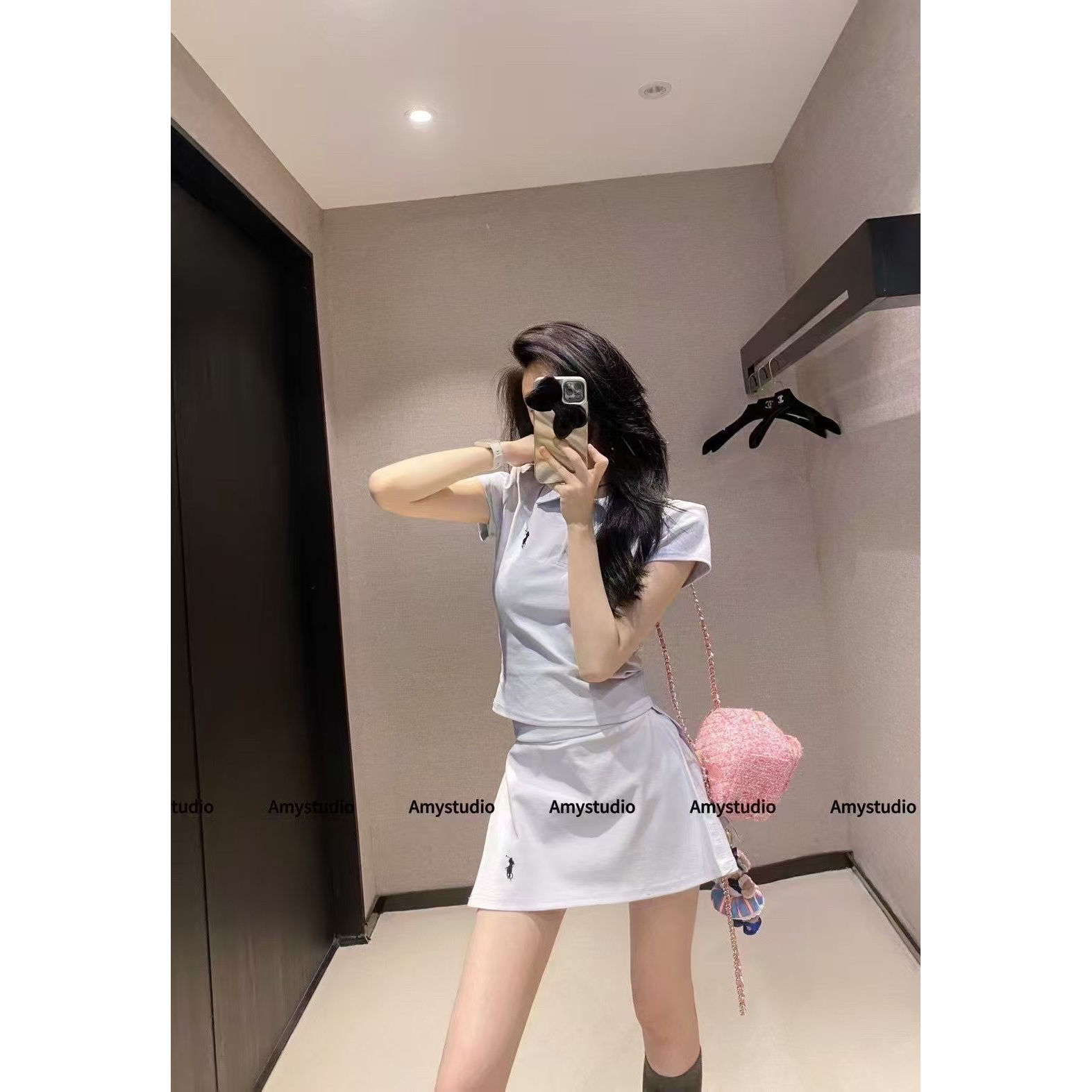여성을위한 한국 캐주얼 스포츠 정장 2025 새로운 여름 간단한 폴로 셔츠 반팔 스커트 슈퍼 핫 투피스 세트스토어 가기