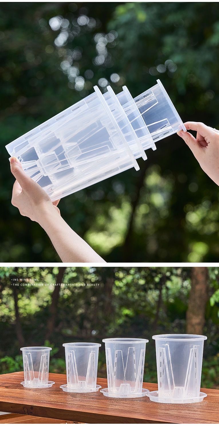 난초꽃 투명한 청산 뿌리 조절 화분 두껍고 통기성이 뛰어난 중공 새 난초 화분 간단하고 고급스러운 심기 바구니