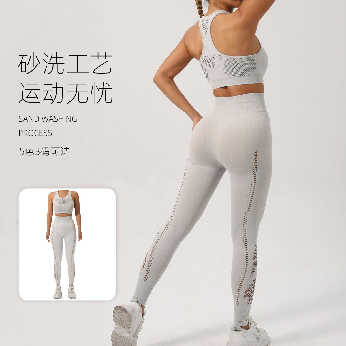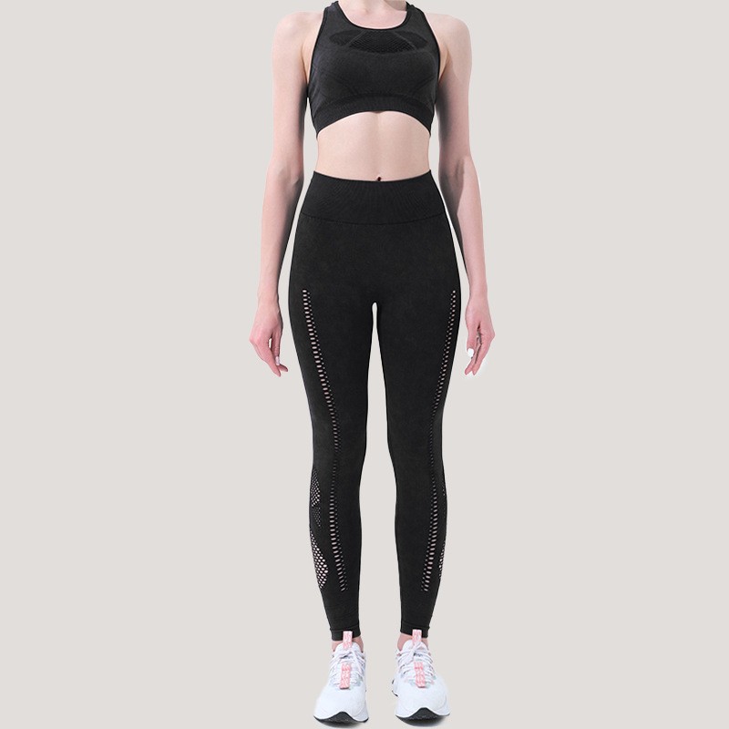 Yujia 뜨거운 판매 모래 세척 원활한 니트 요가 슈트 세트 고급 스크럽 요가 슈트 여름 여성 요가 슈트