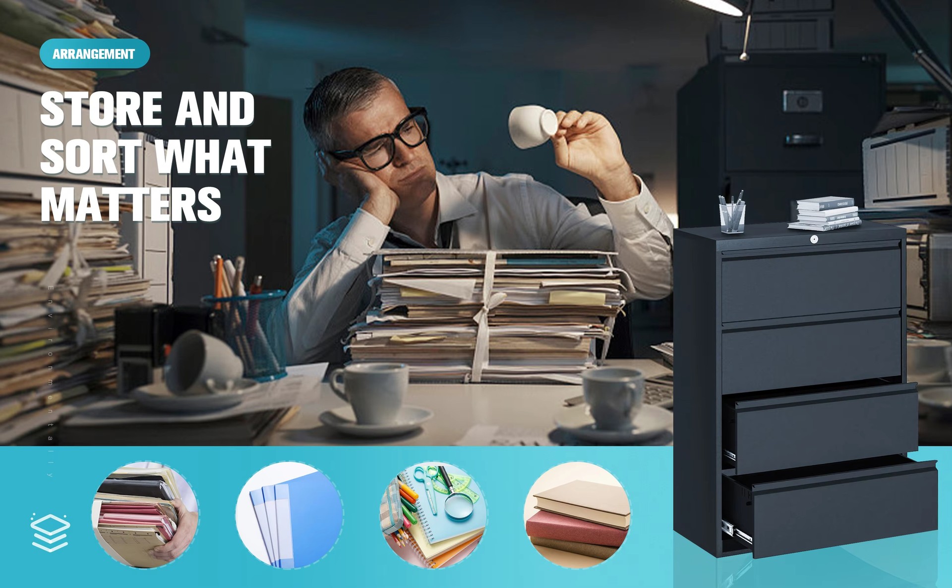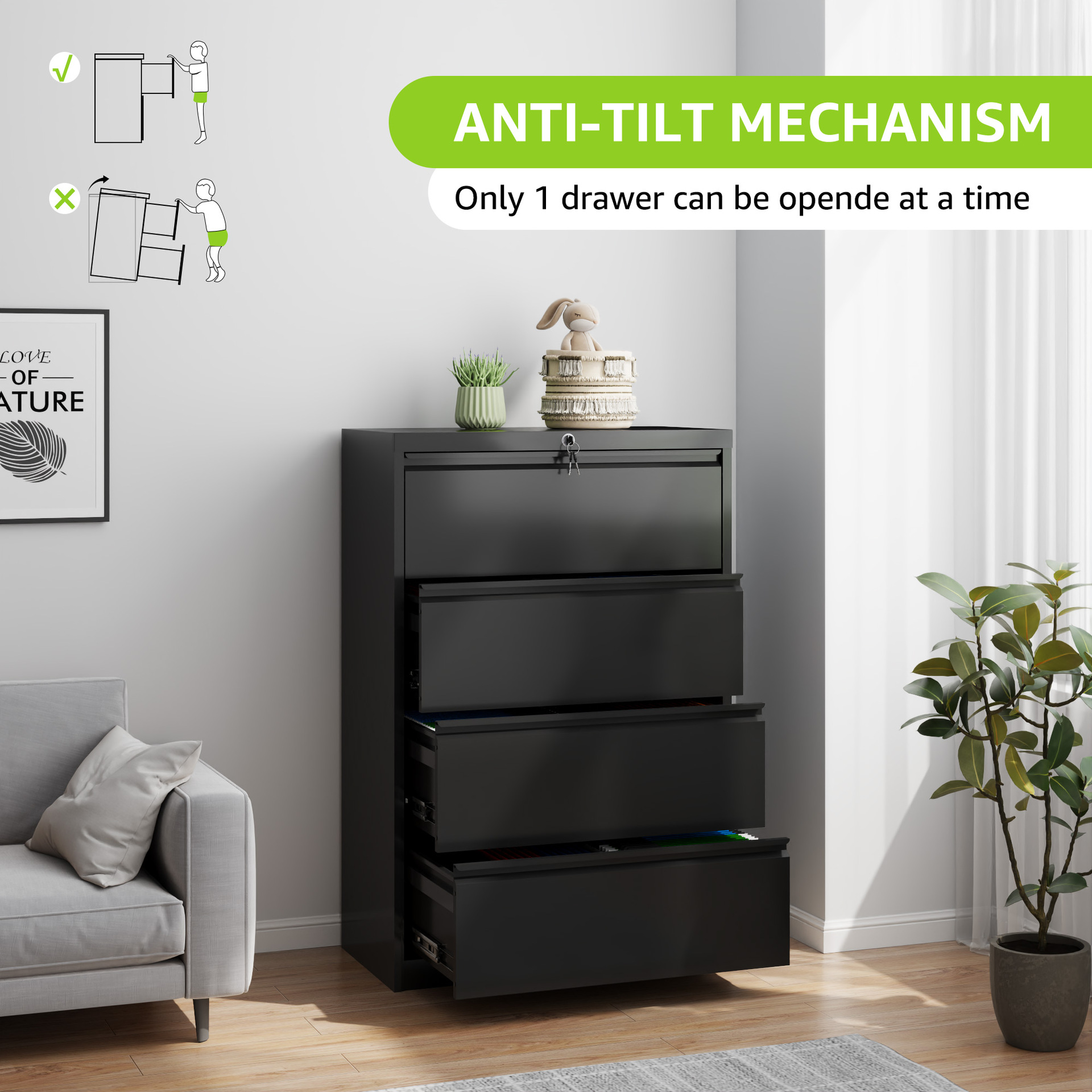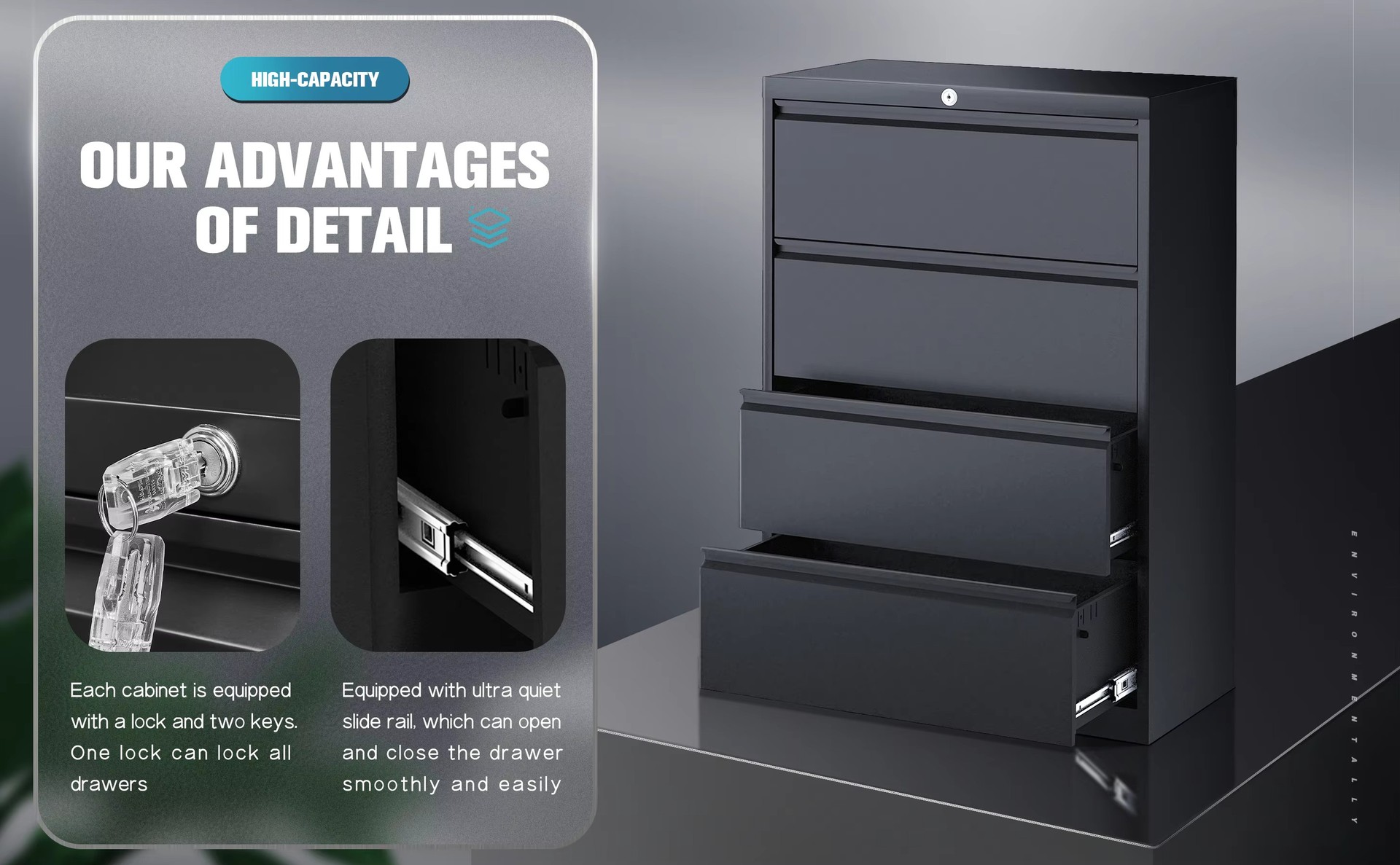 잠금 장치가 있는 강철 4단 서랍 바닥 카드 상자 파일 캐비닛 사무실 데이터 저장 침실 보관 서랍 캐비닛 방습 및 방진