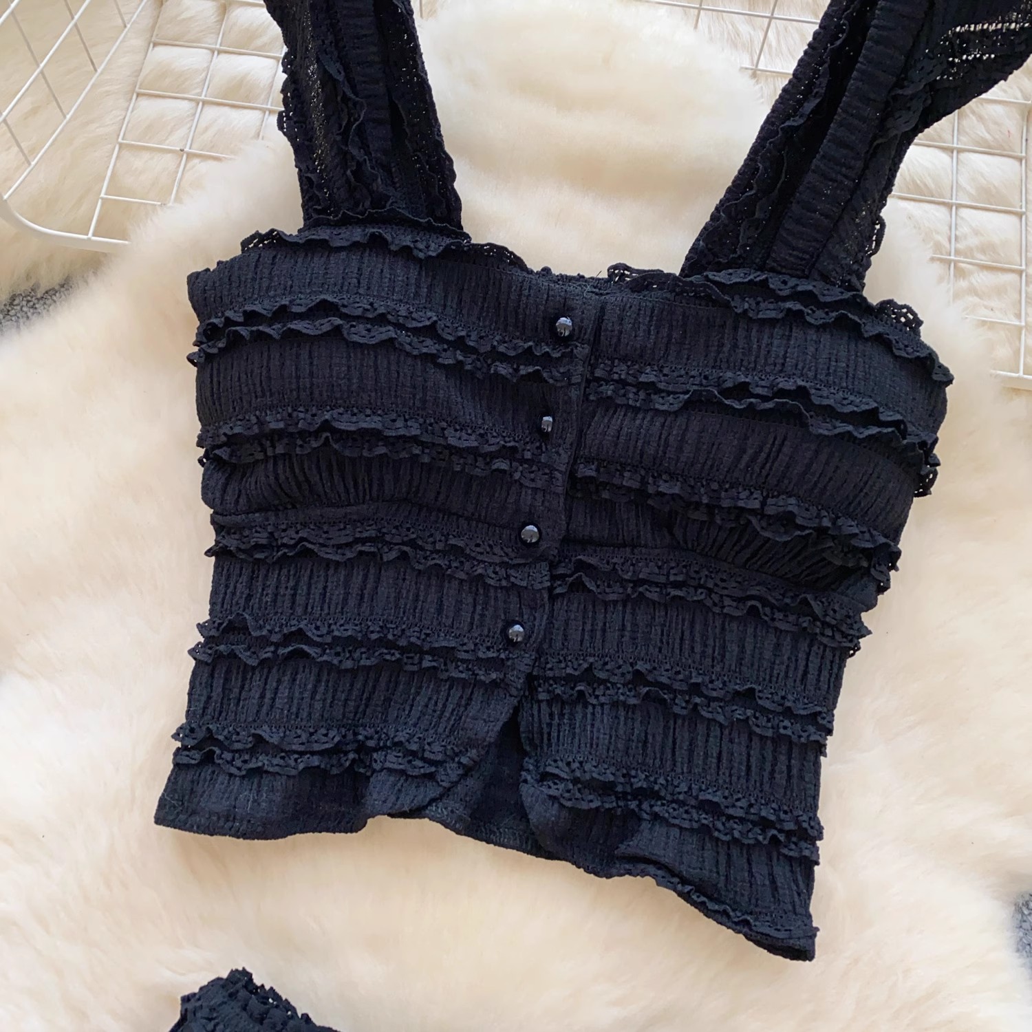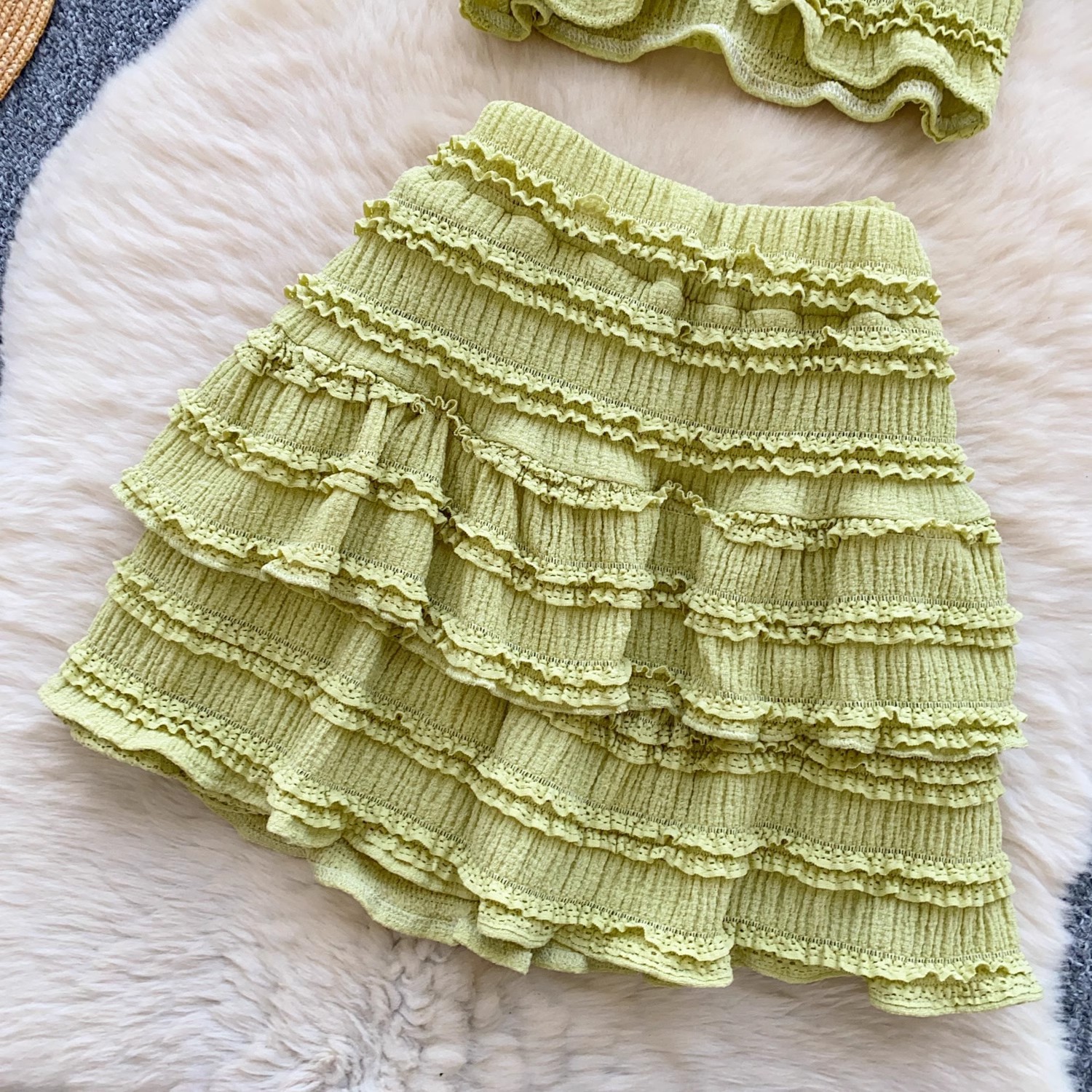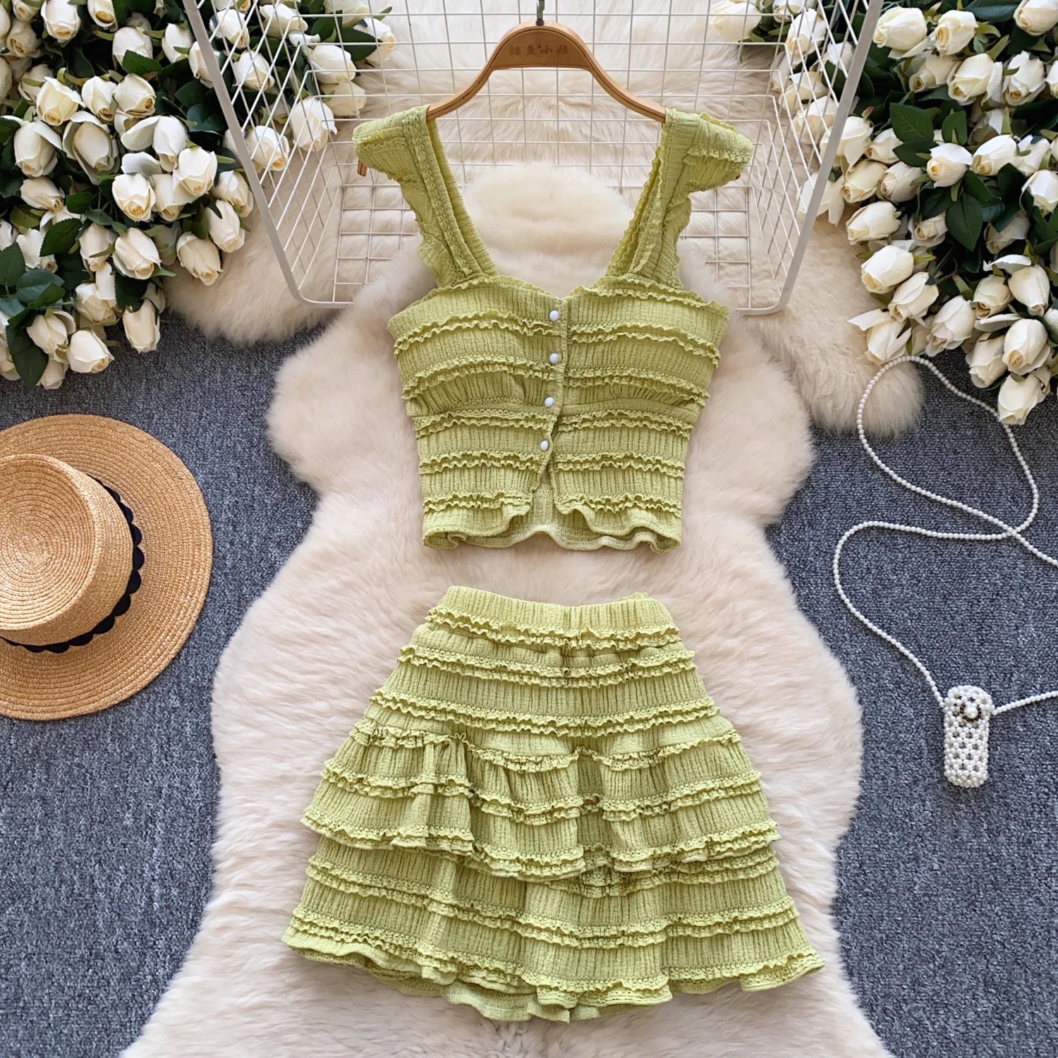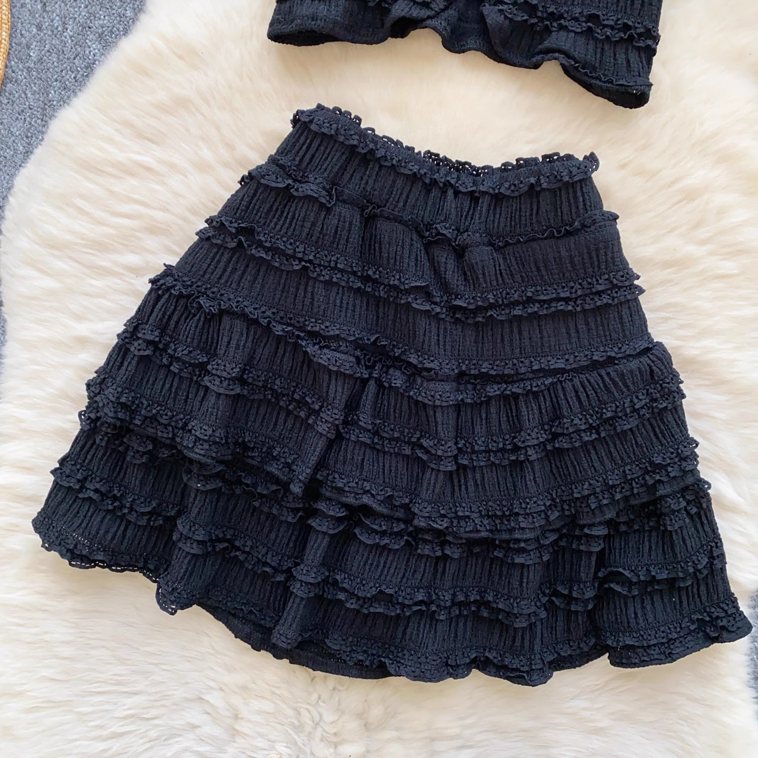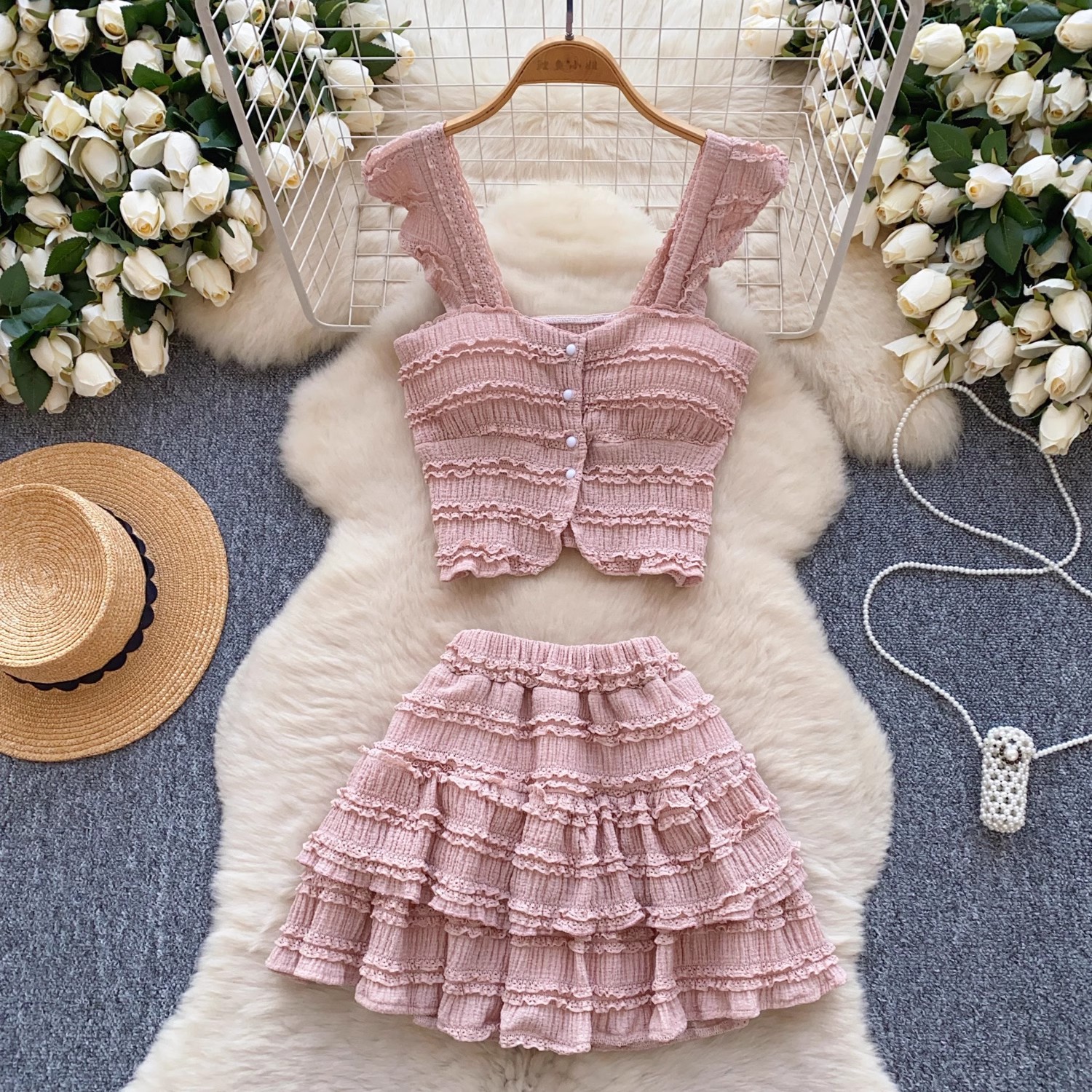 유럽과 미국의 핫걸 스타일 작은 귀 디자인 순수한 욕망 정장 여성 서스펜더 튜브 탑 + 하이 웨이스트 스커트