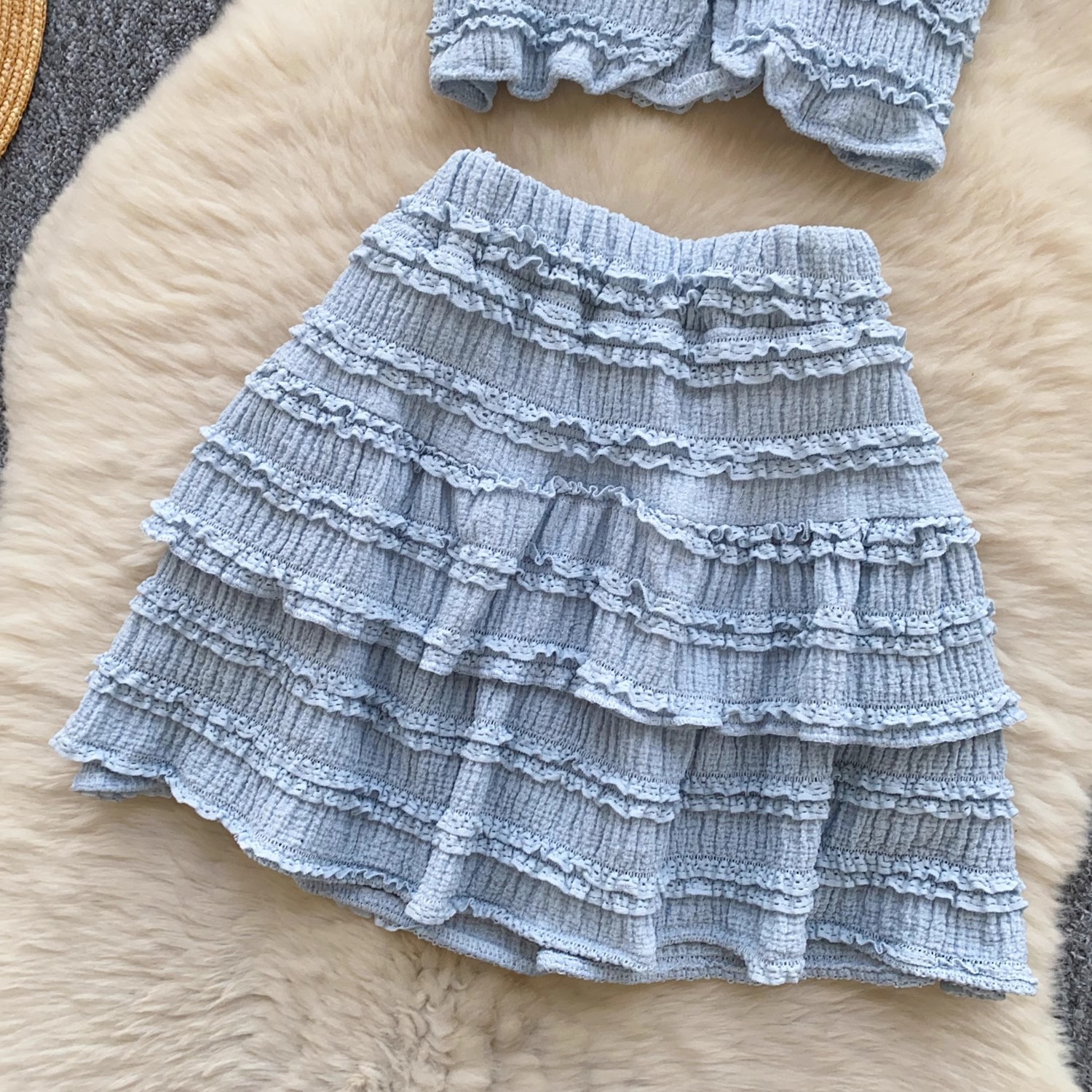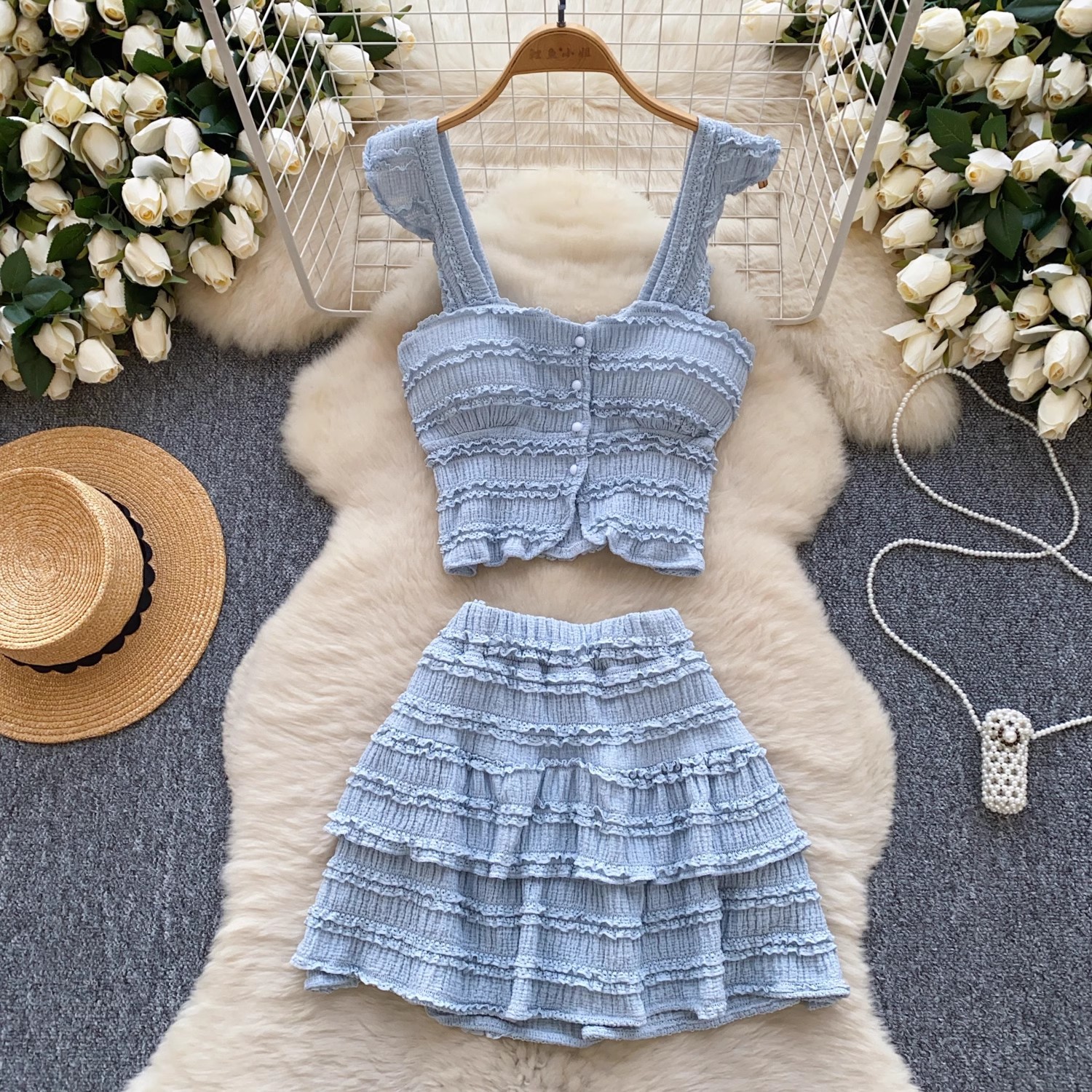 유럽과 미국의 핫걸 스타일 작은 귀 디자인 순수한 욕망 정장 여성 서스펜더 튜브 탑 + 하이 웨이스트 스커트스토어 가기
