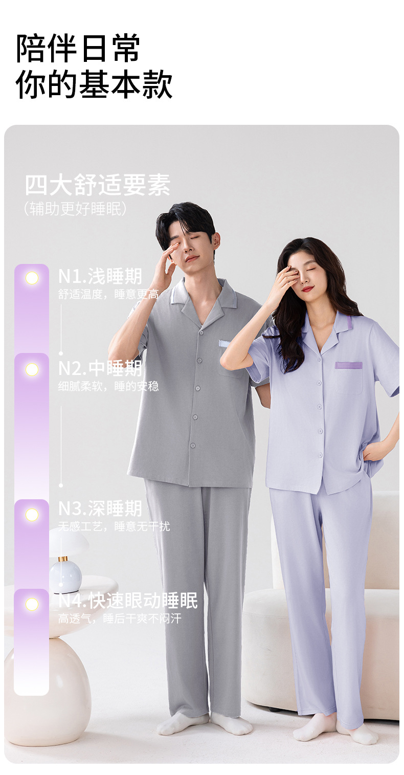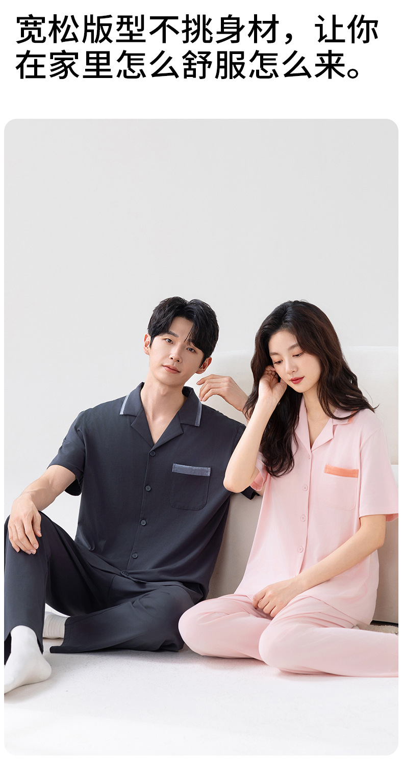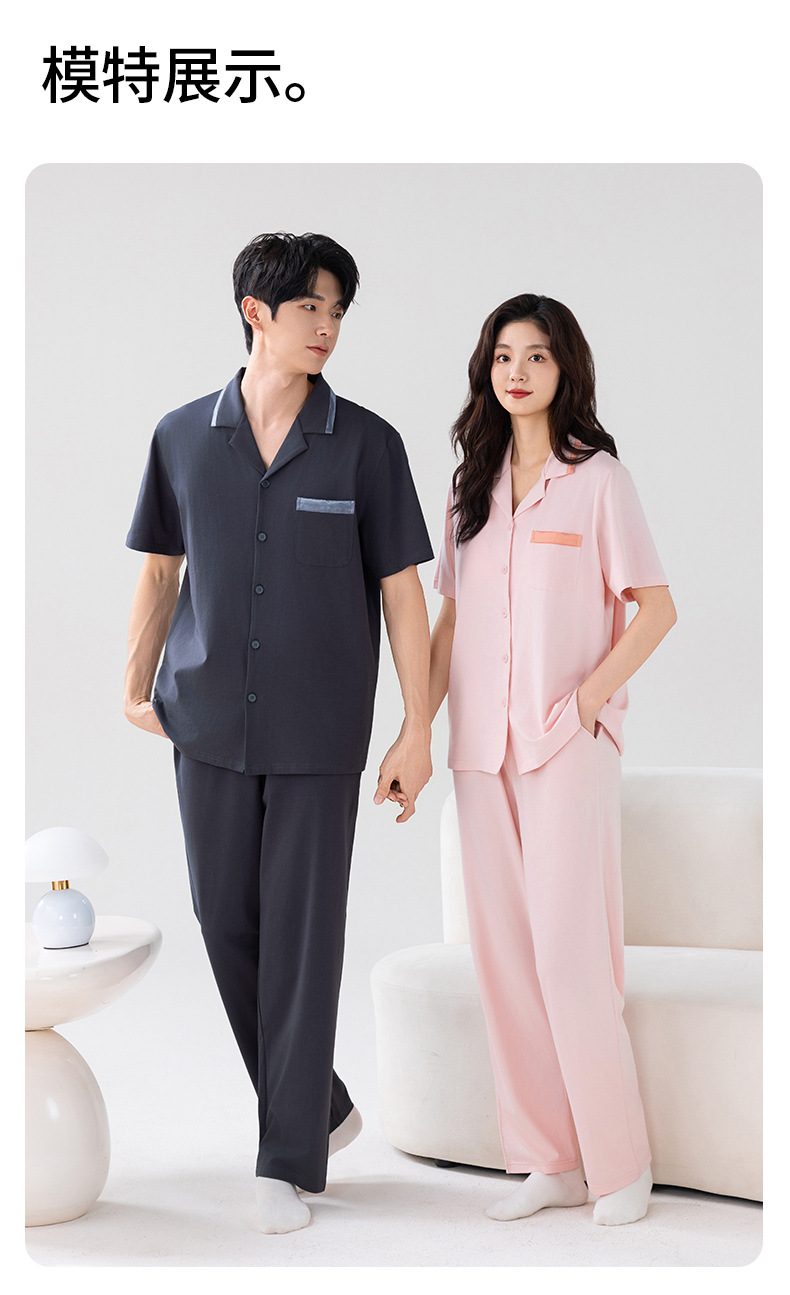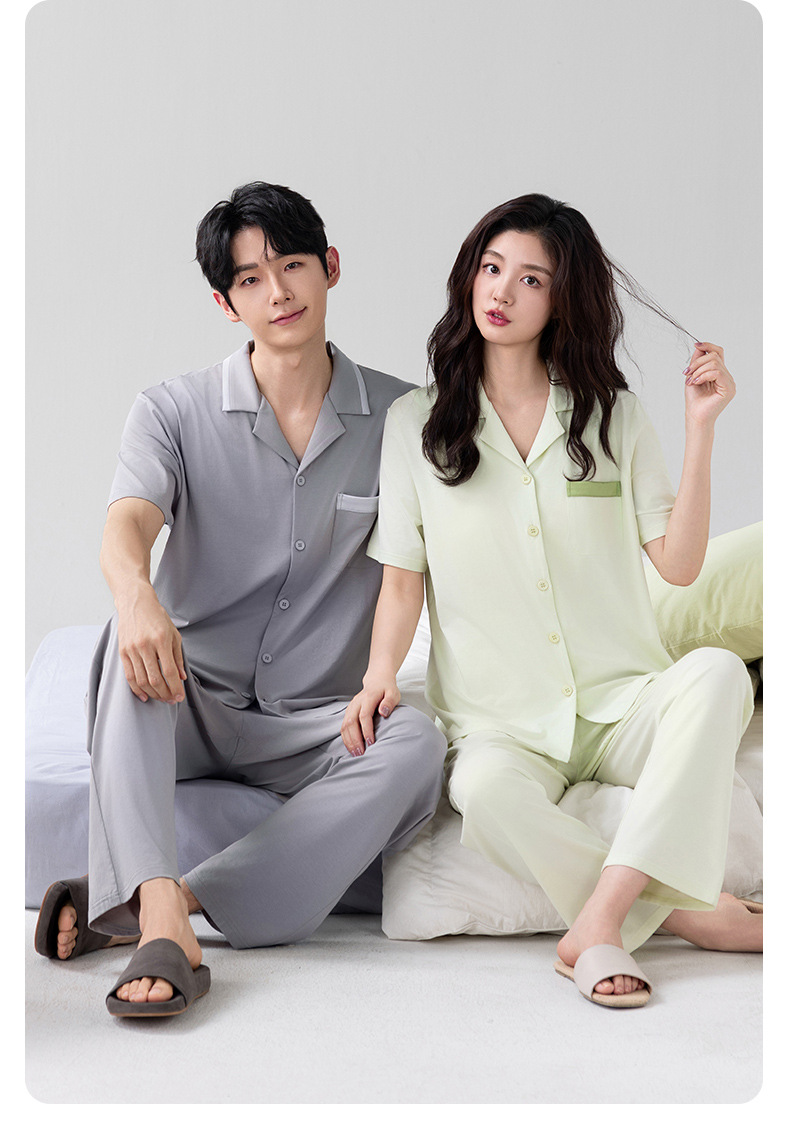 고양이 인간 커플 반팔 바지 잠옷 오픈 프론트 홈웨어 니트 코튼 파자마 세트스토어 가기