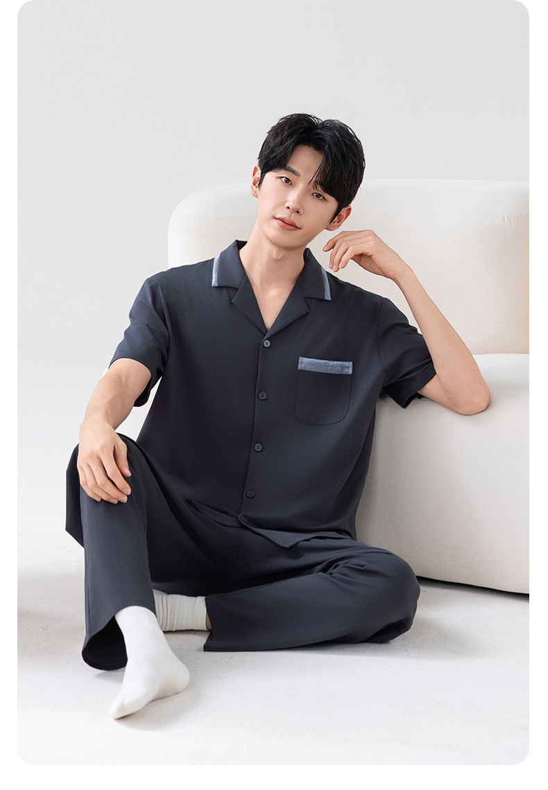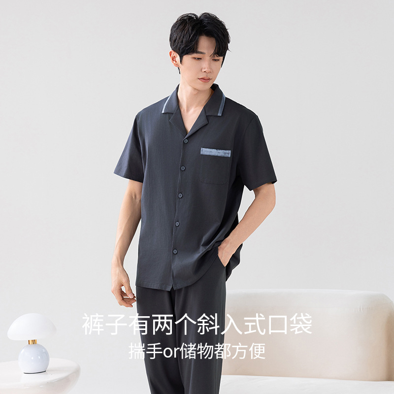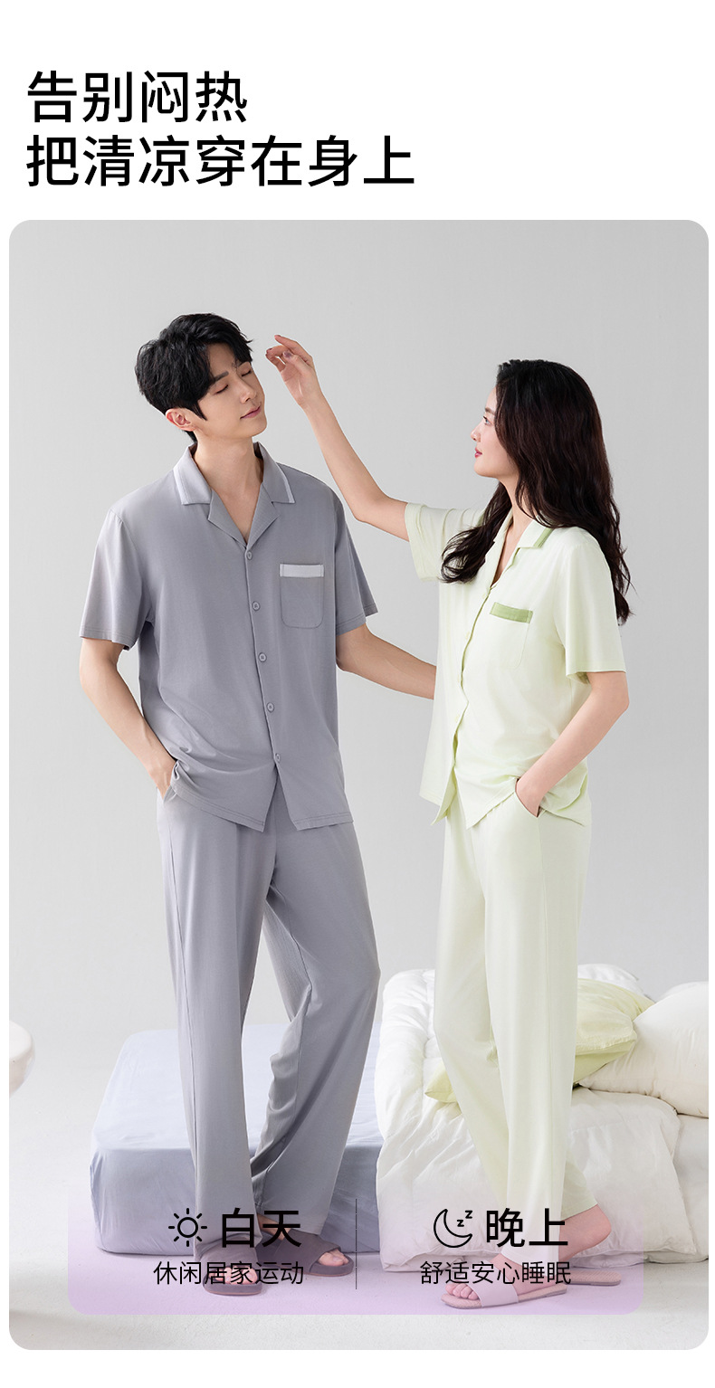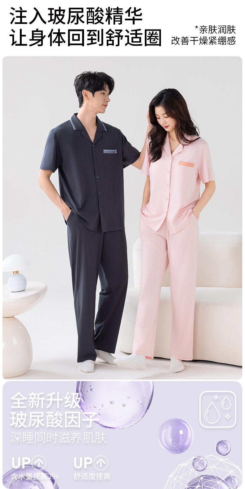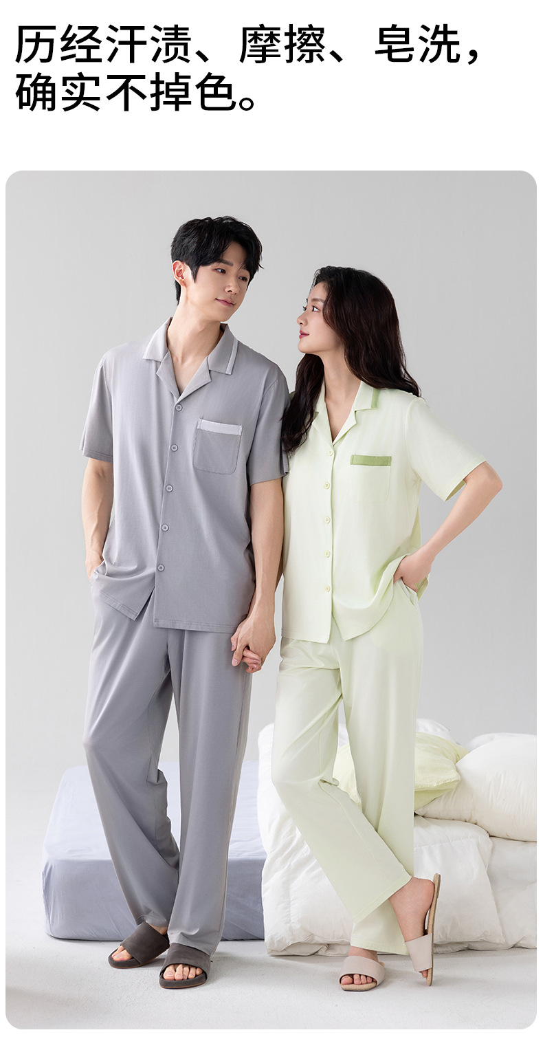 고양이 인간 커플 반팔 바지 잠옷 오픈 프론트 홈웨어 니트 코튼 파자마 세트스토어 가기