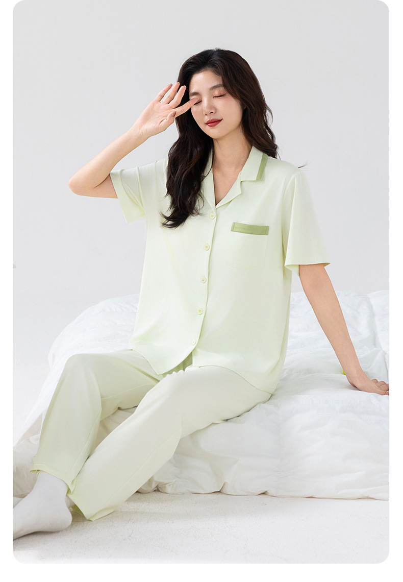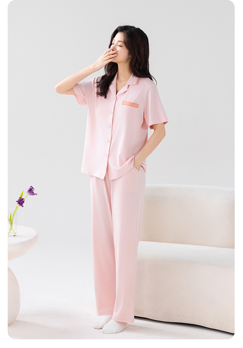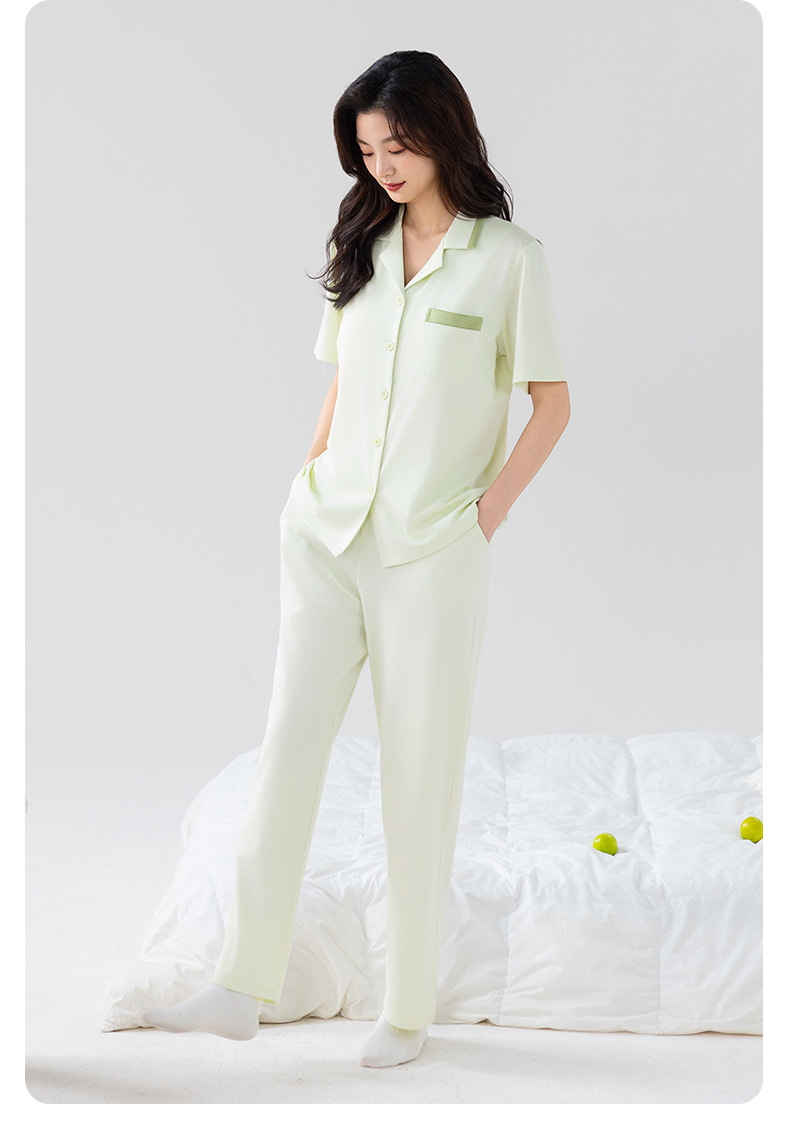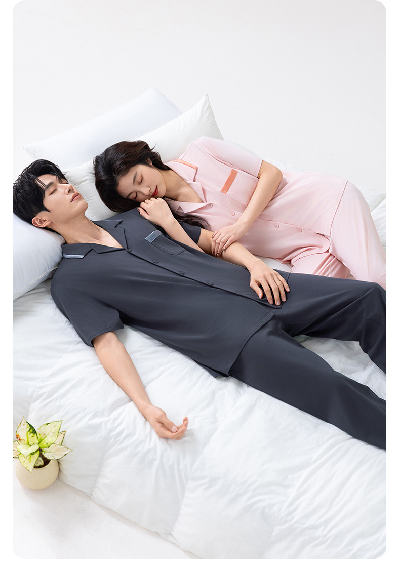 고양이 인간 커플 반팔 바지 잠옷 오픈 프론트 홈웨어 니트 코튼 파자마 세트