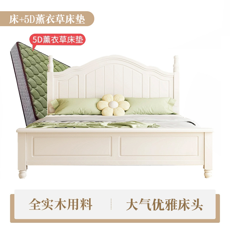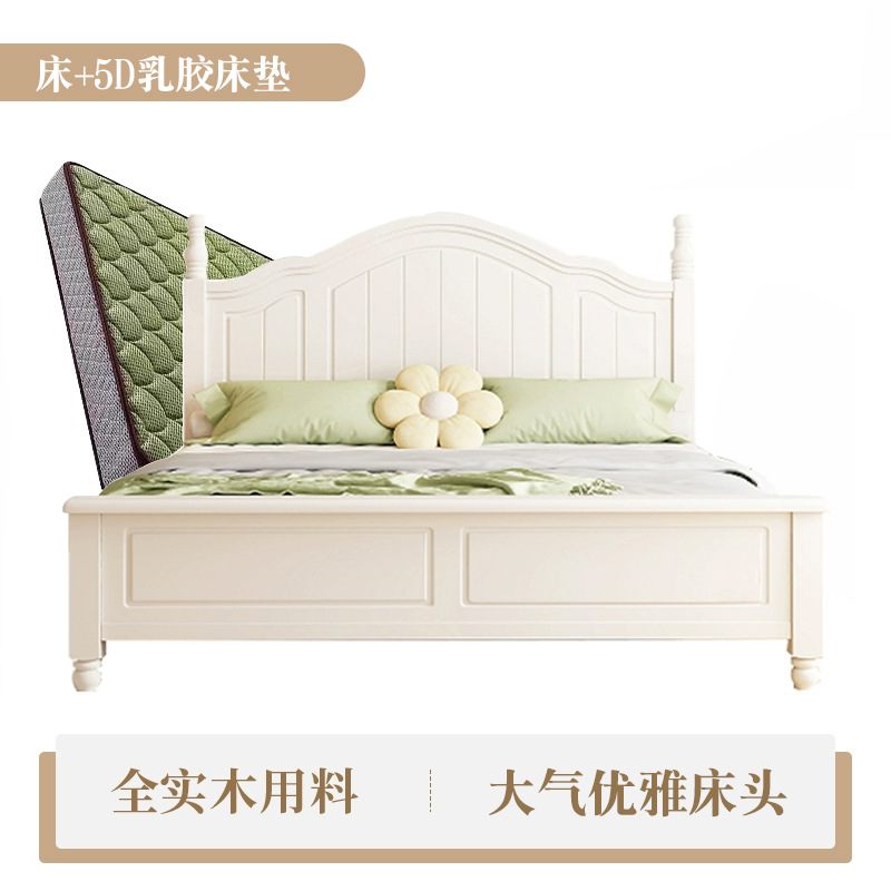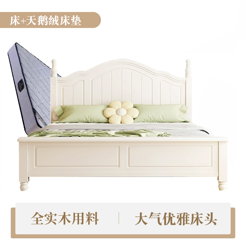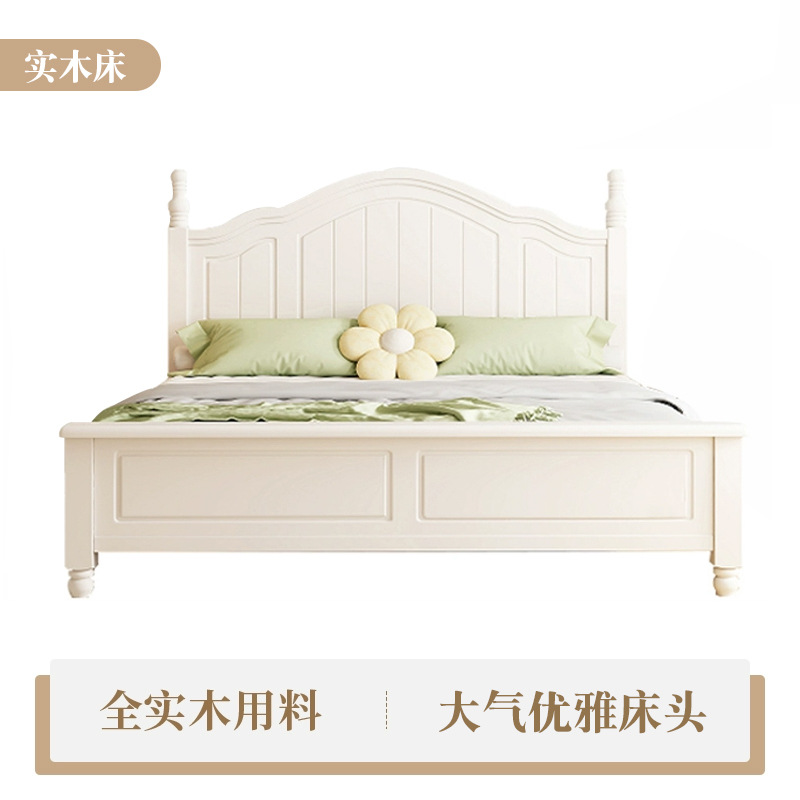 미국식 흰색 전체 단단한 나무 침대 현대적인 미니멀리스트 크림 스타일 1.8m 더블 침대1.5 마스터 침실 공주 수납 침대