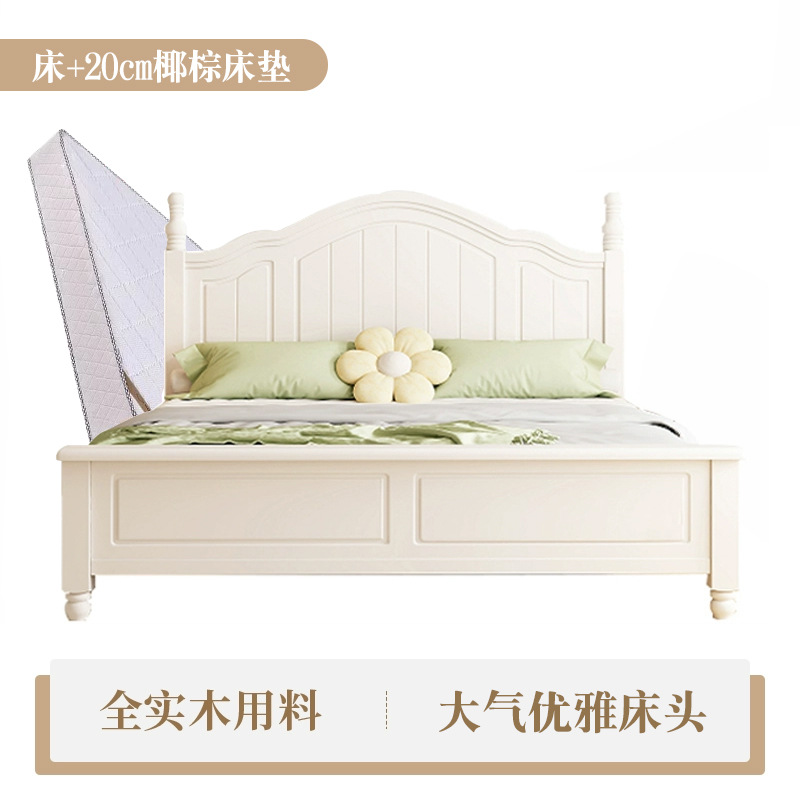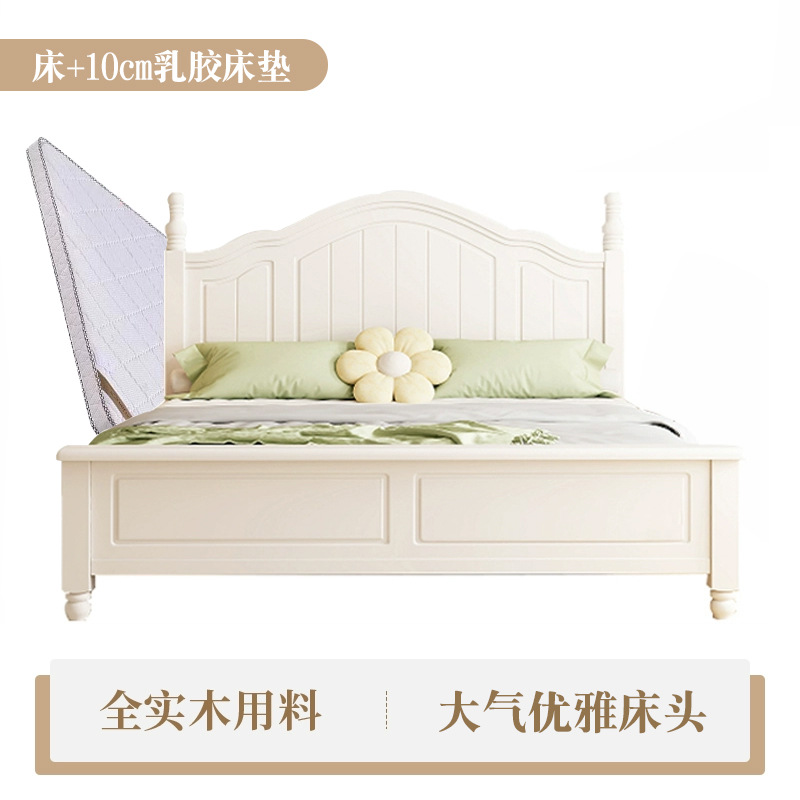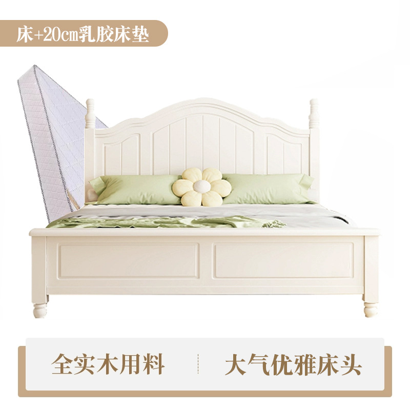 미국식 흰색 전체 단단한 나무 침대 현대적인 미니멀리스트 크림 스타일 1.8m 더블 침대1.5 마스터 침실 공주 수납 침대스토어 가기