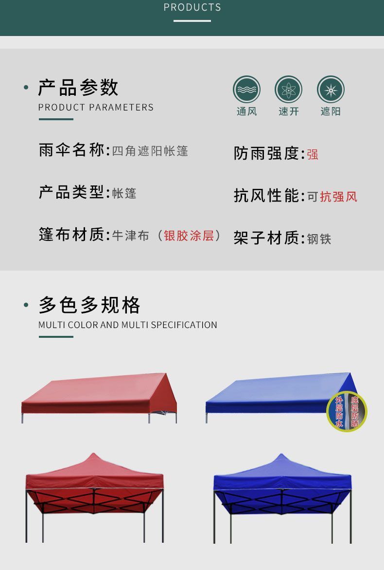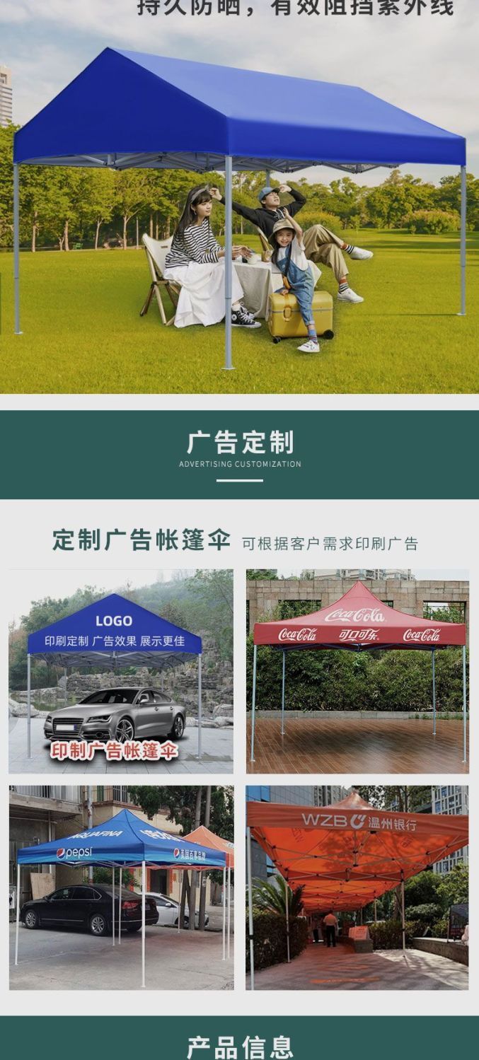 양면 배수 텐트, 대형 우산 텐트, 파라솔, 사각형 노점 텐트, 접이식 접이식 4발 우산, 야시장