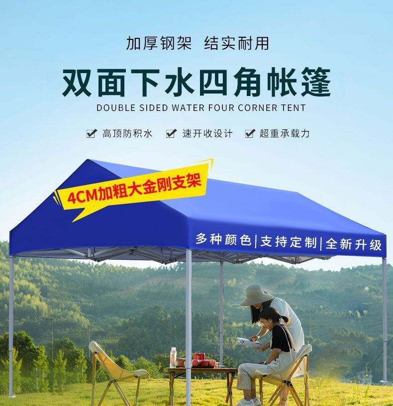 양면 배수 텐트, 대형 우산 텐트, 파라솔, 사각형 노점 텐트, 접이식 접이식 4발 우산, 야시장스토어 가기