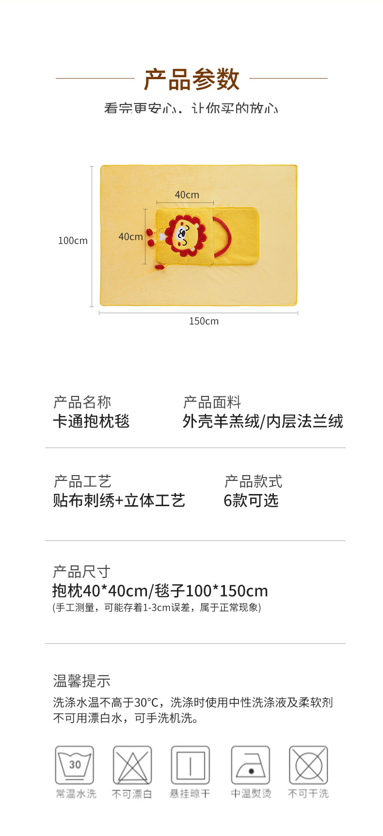 • 담요 100x150cm+베갯잇 38x38cm