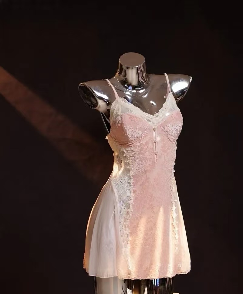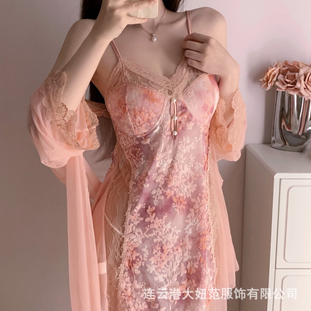 메두사 가을 겨울 신상 레이스 섹시 시스루 순수하고 고급스러운 여성용 슬립웨어 세트 (가슴 패드 포함 면 슬립웨어)스토어 가기