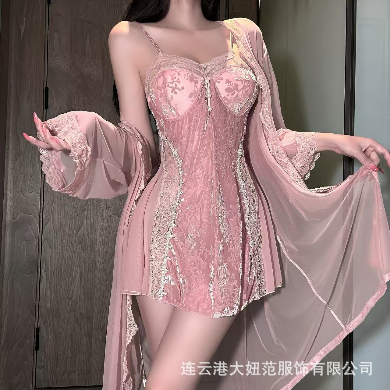 • 핑크 메쉬 레이스 가운(벨트 포함)