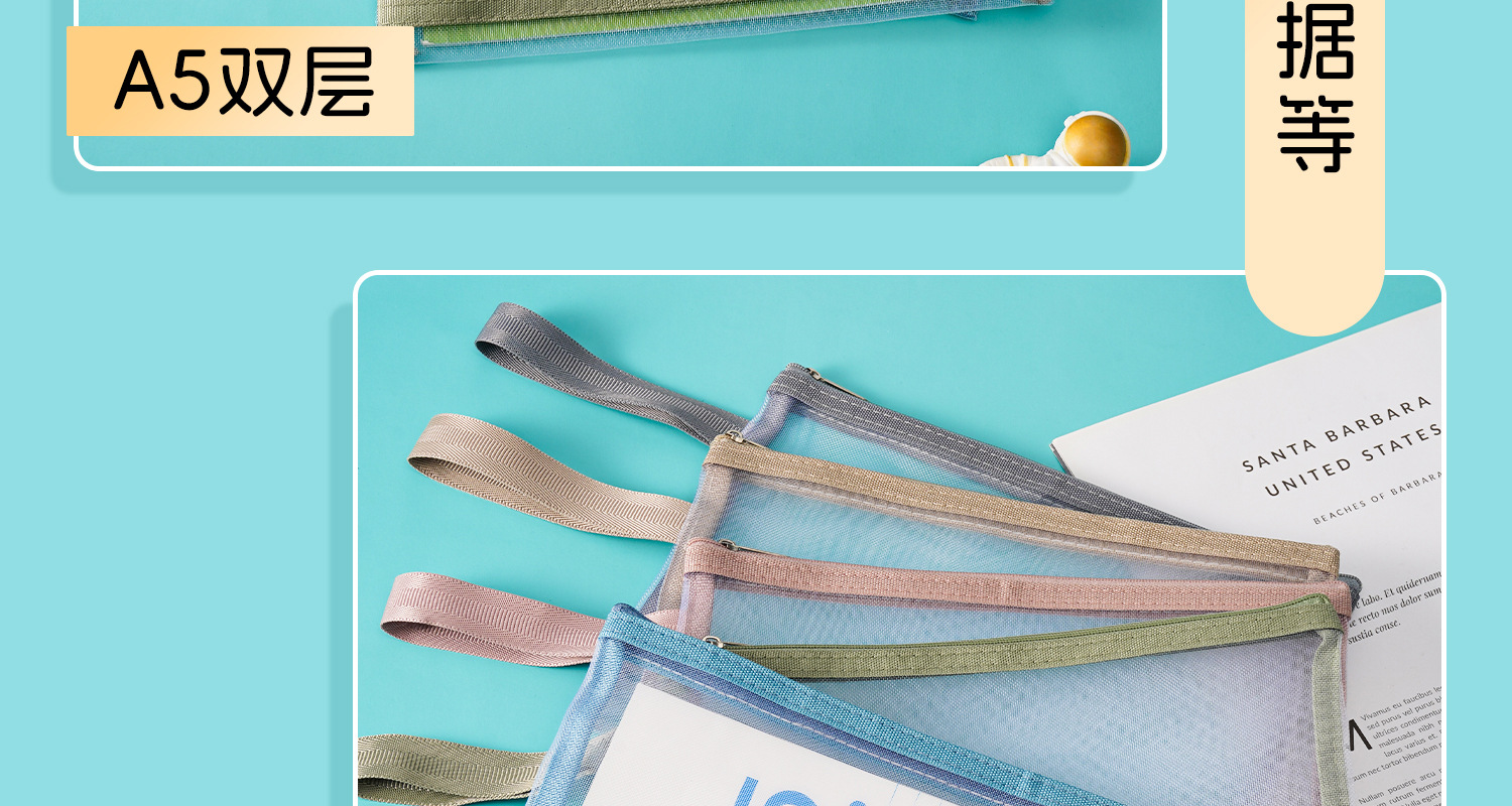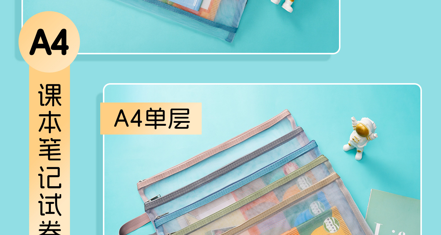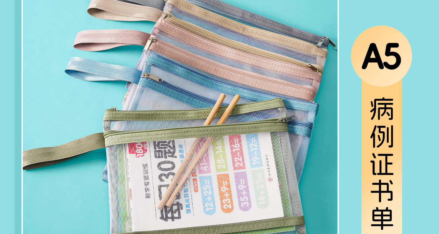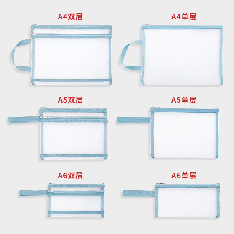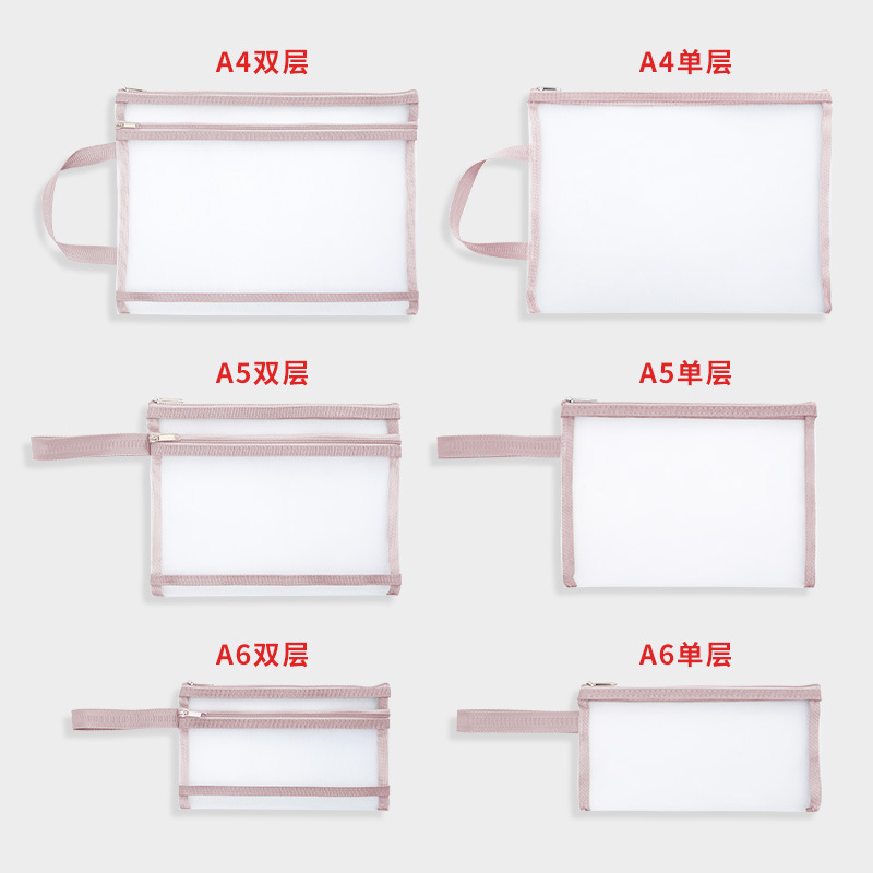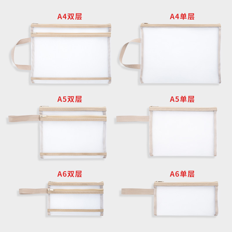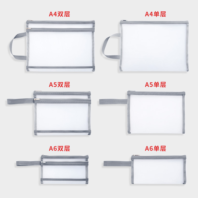 투명 메쉬 A4 더블 레이어 파일 가방 사무실 대용량 데이터 파일 보관 가방 지퍼 가방 로고 인쇄 가능스토어 가기