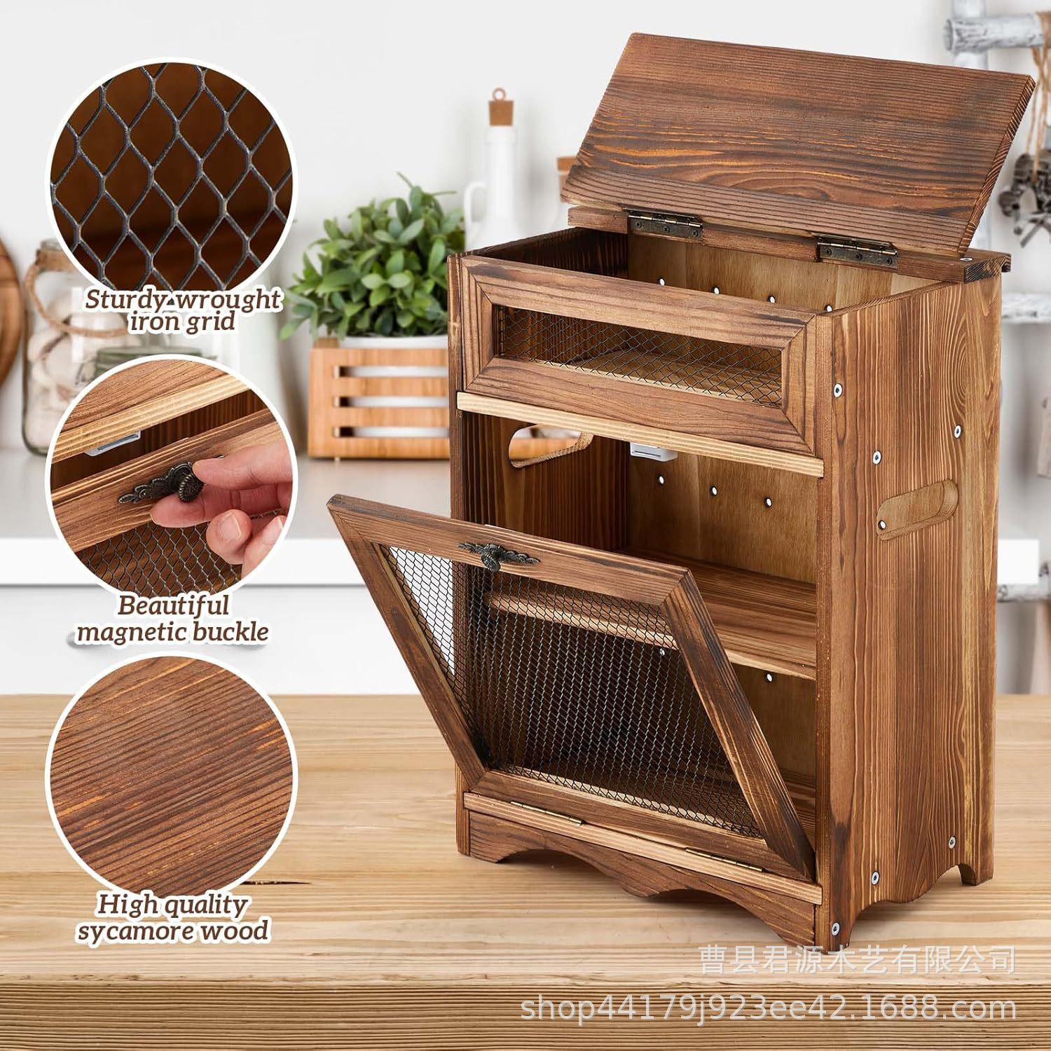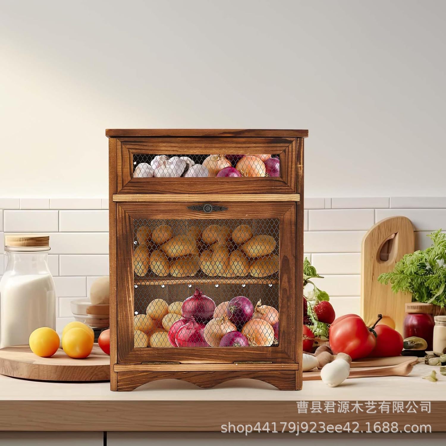 나무 주방 야채 보관 상자 양파 감자 보관 나무 캐비닛 홈 주방 조리대 보관 주최자