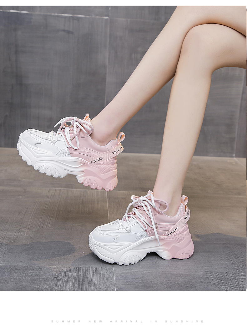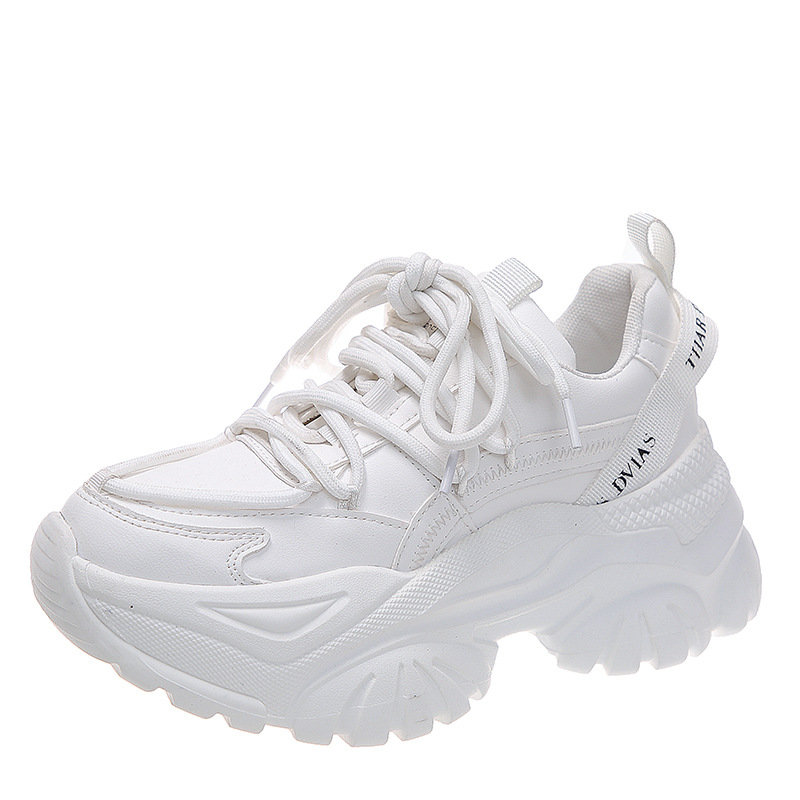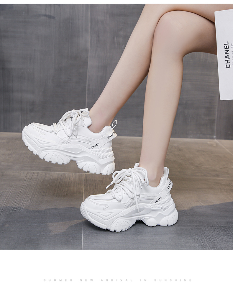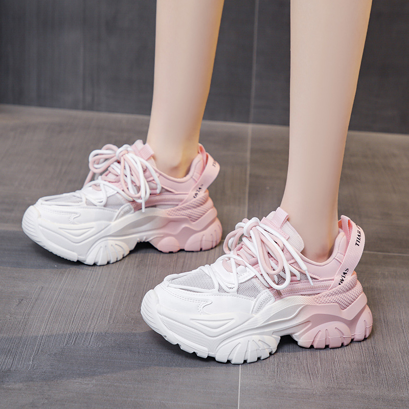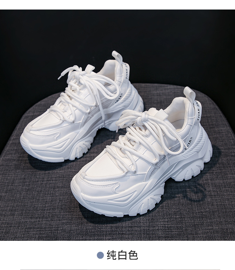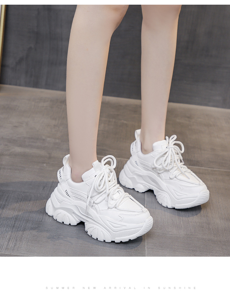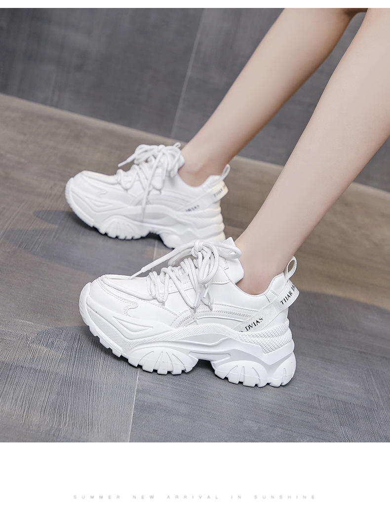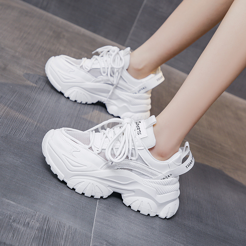 여성을위한 한국 스타일 패션 아빠 신발 2025 봄 새로운 두꺼운 밑창 작은 사람들을위한 키가 큰 흰색 여름 스포츠 및 캐주얼 신발스토어 가기