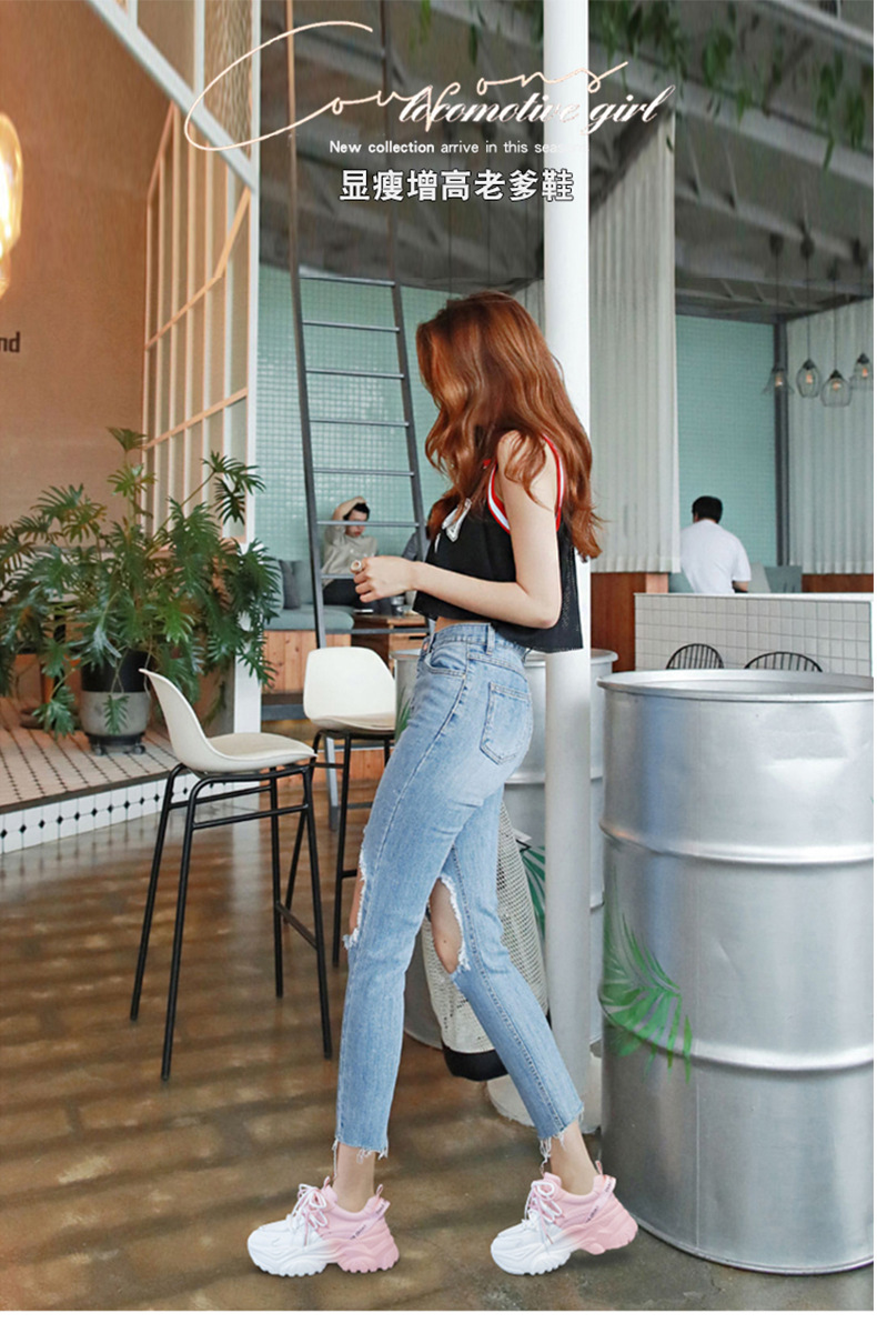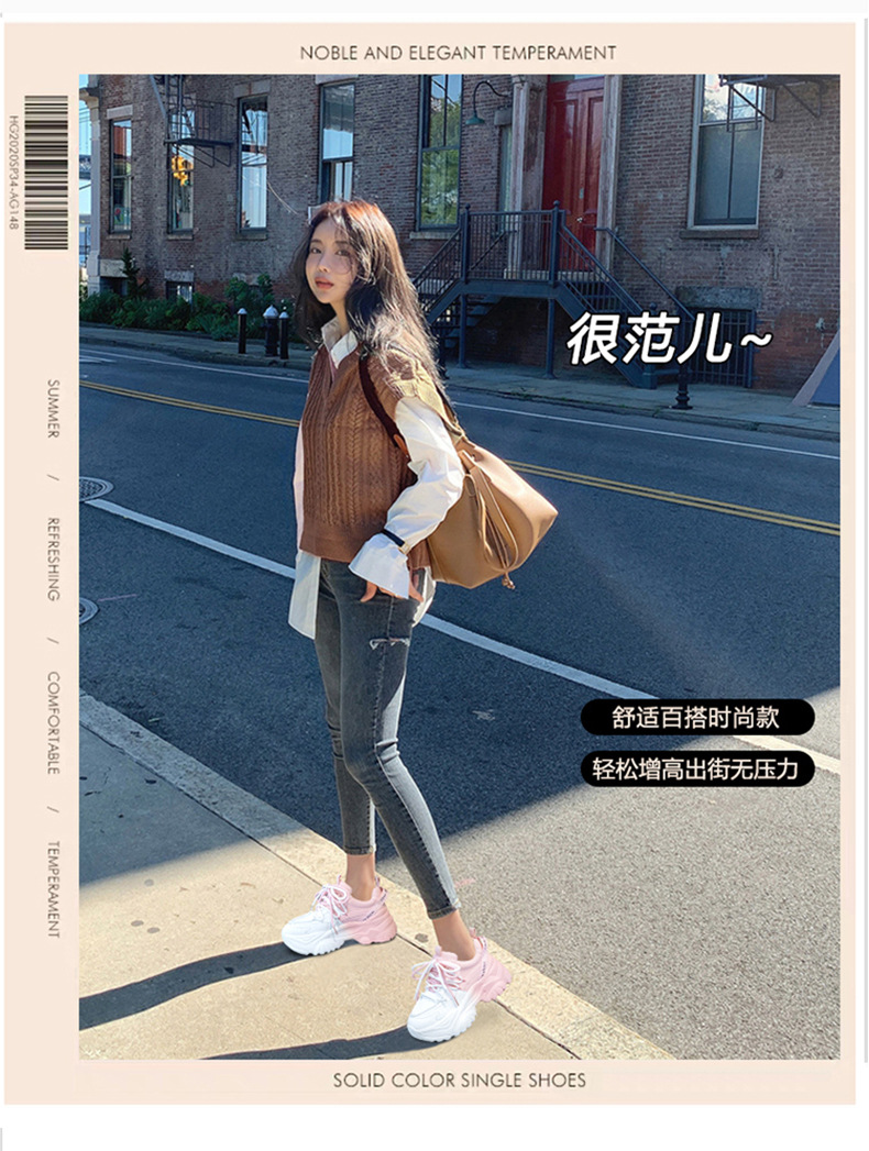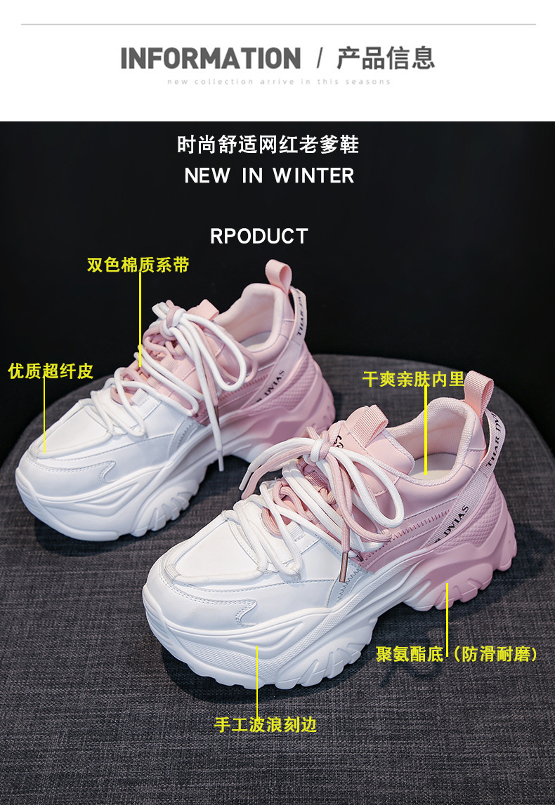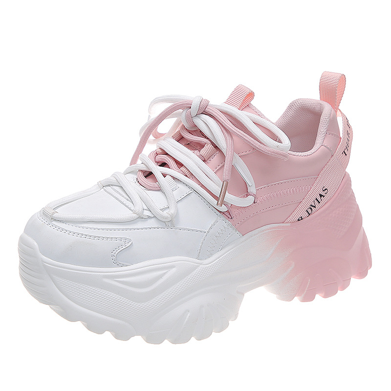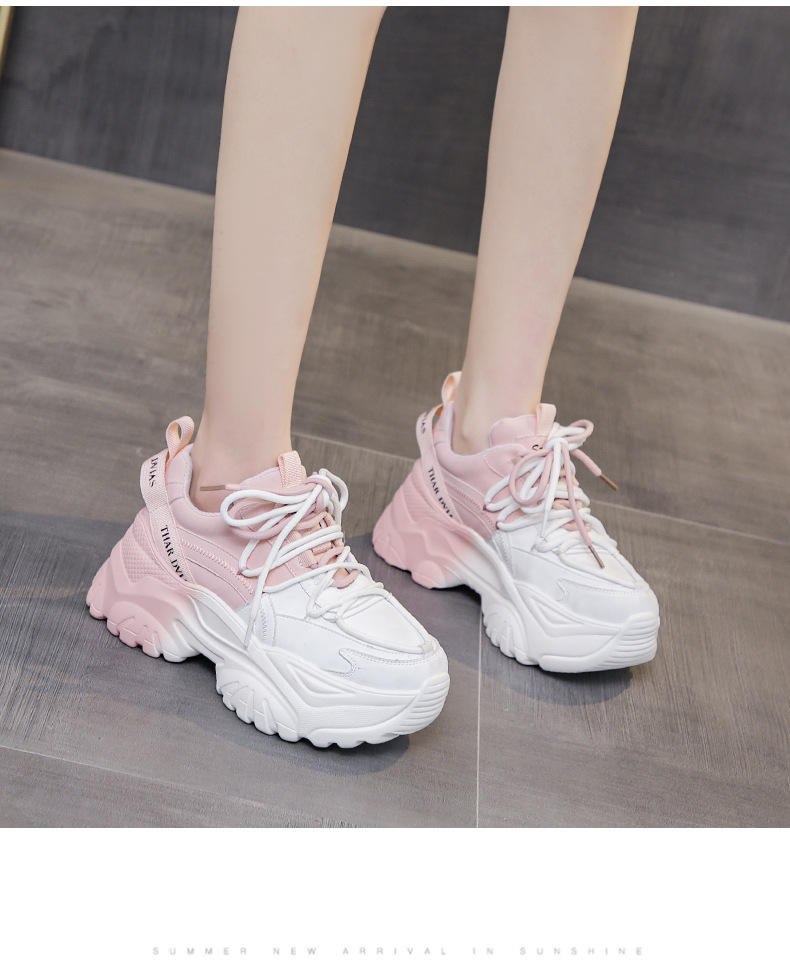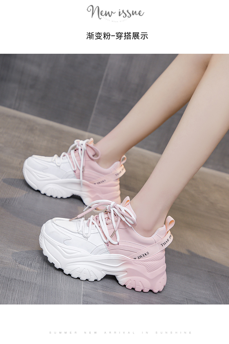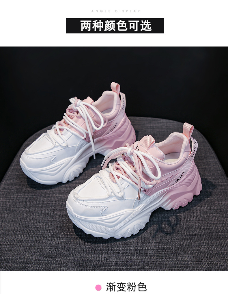 여성을위한 한국 스타일 패션 아빠 신발 2025 봄 새로운 두꺼운 밑창 작은 사람들을위한 키가 큰 흰색 여름 스포츠 및 캐주얼 신발스토어 가기