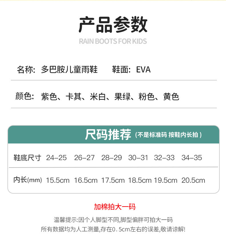 여아용 크로스보더 도파민 아동 장화, EVA 경량 미끄럼 방지 짧은 튜브, 남아용 벨벳 장화스토어 가기